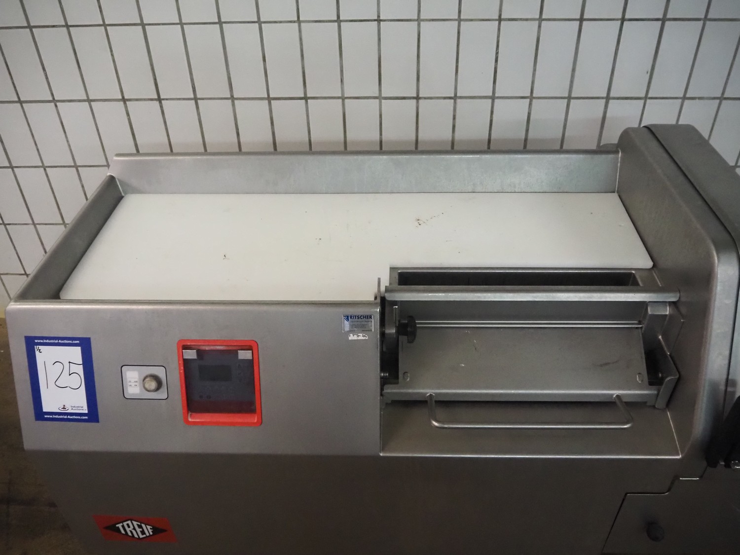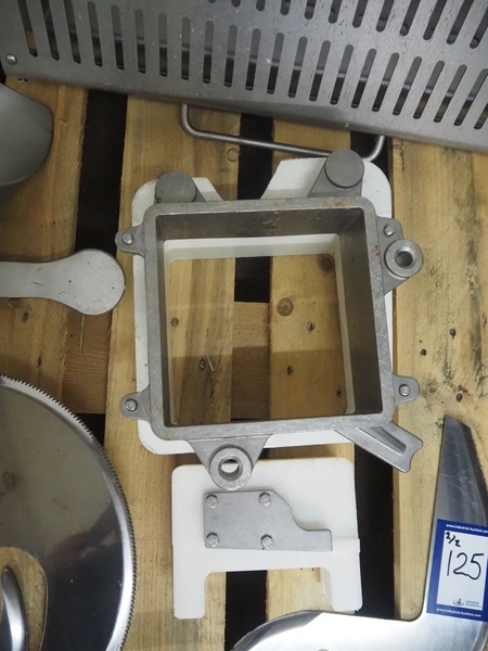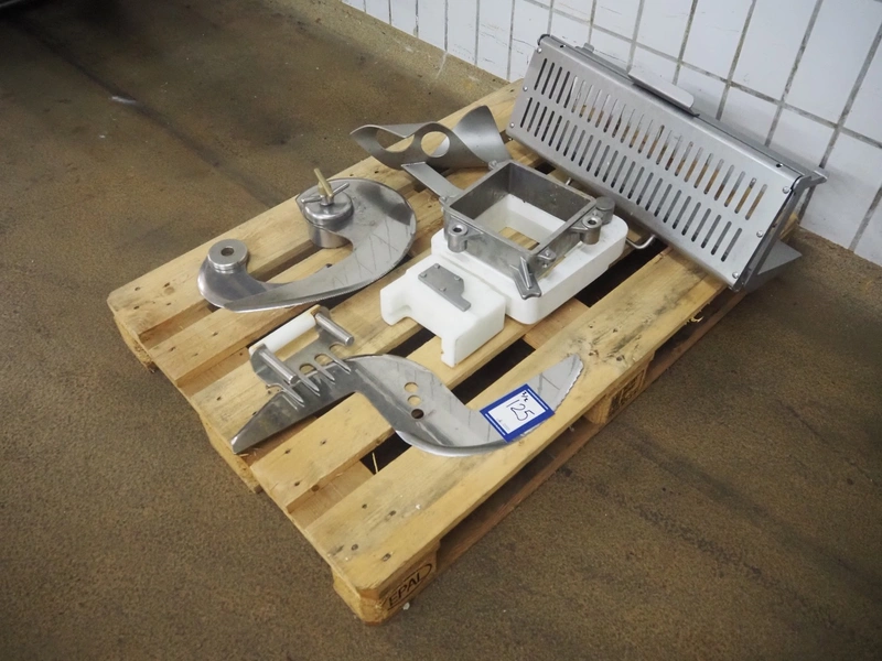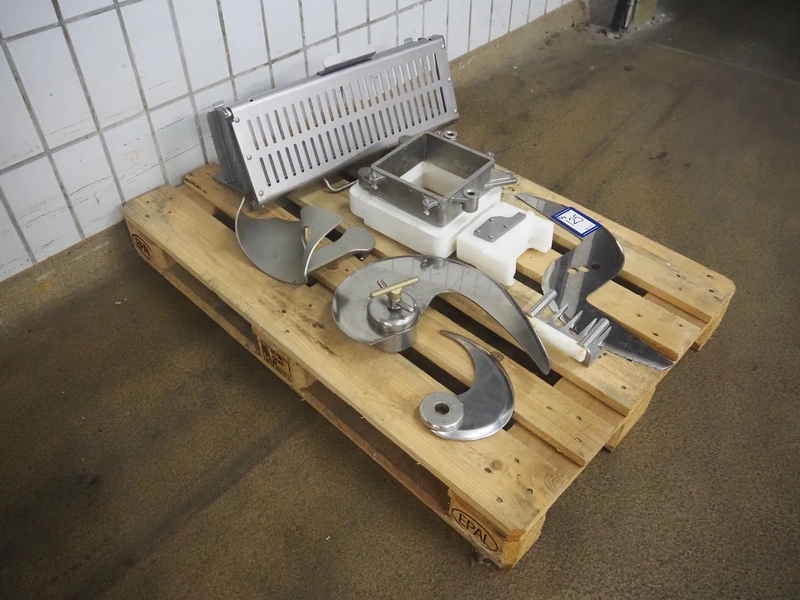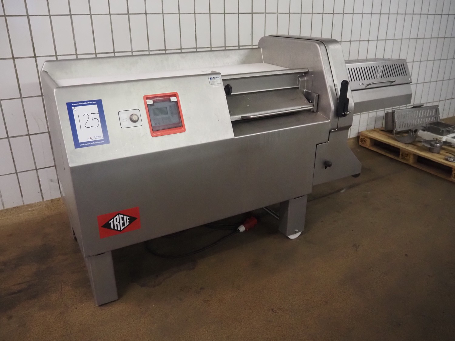 Treif Maschinenbau GmbH mobile dicer, model: HUSKY E, machine number: 471001.70021.101366, year of construction: 2006, 380/480 V, 3 Ph, 50/60 Hz, 16 A, 2 kW, weight: 389 kg, dimensions chamber: 95 mm x 95 mm, total dimensions: 2260 mm x 850 mm x 1200 mm. Including pallet with parts.