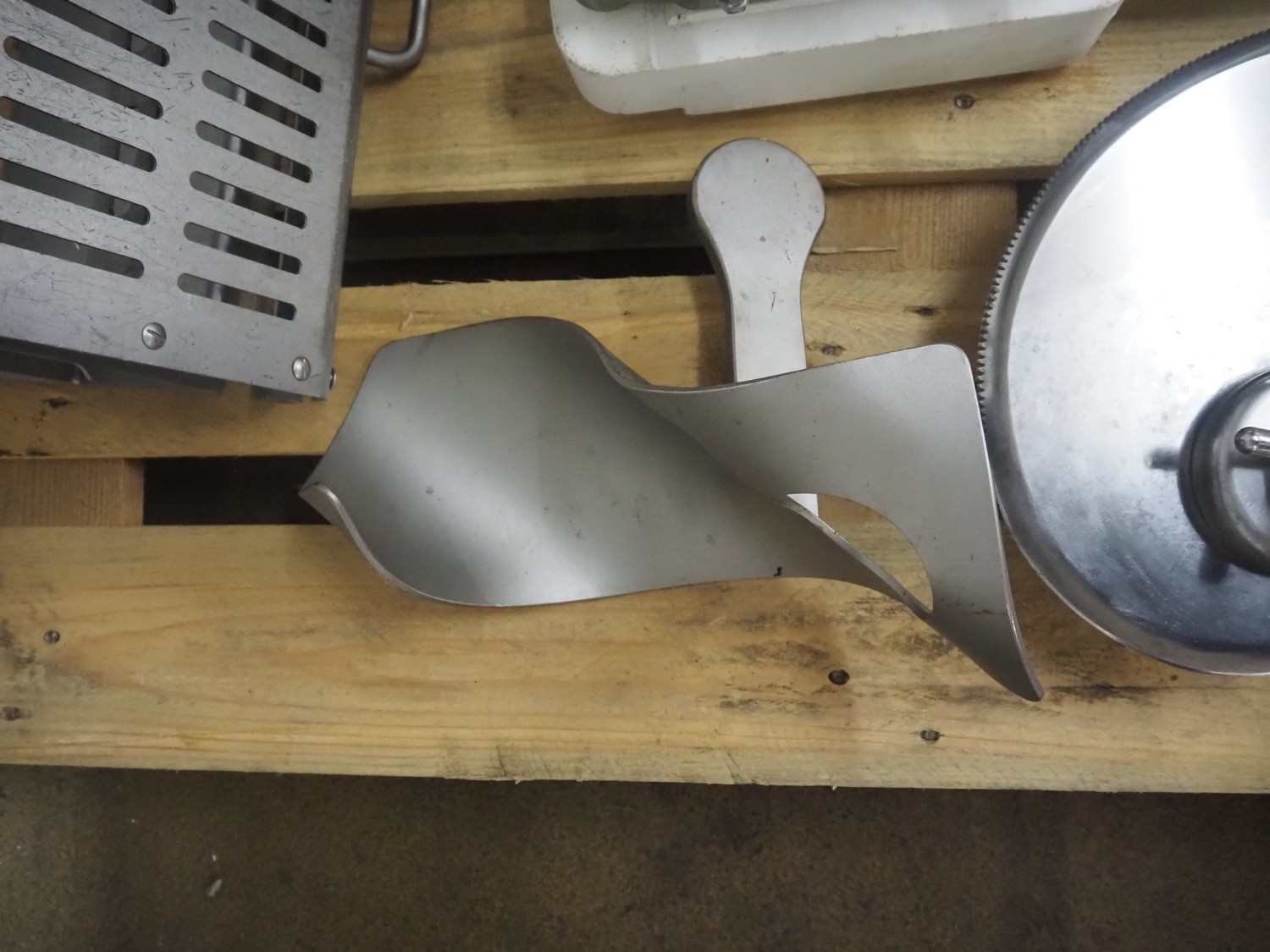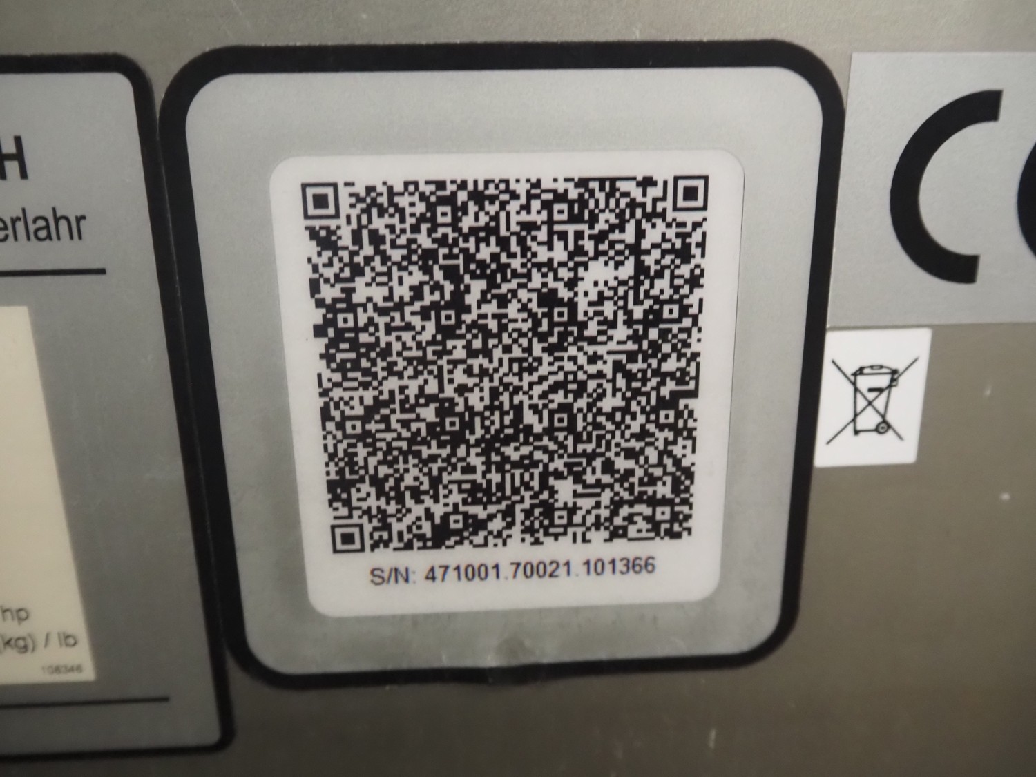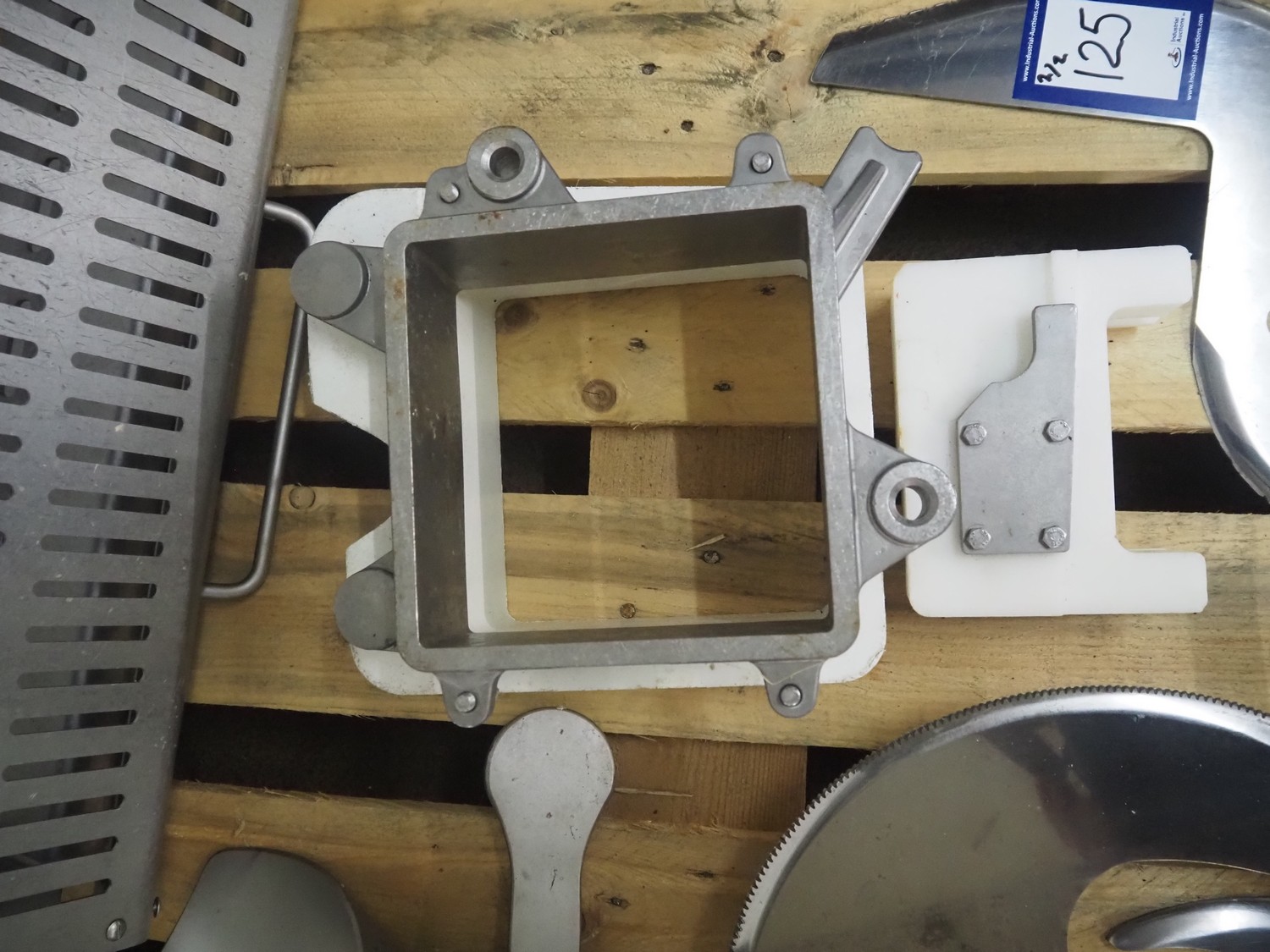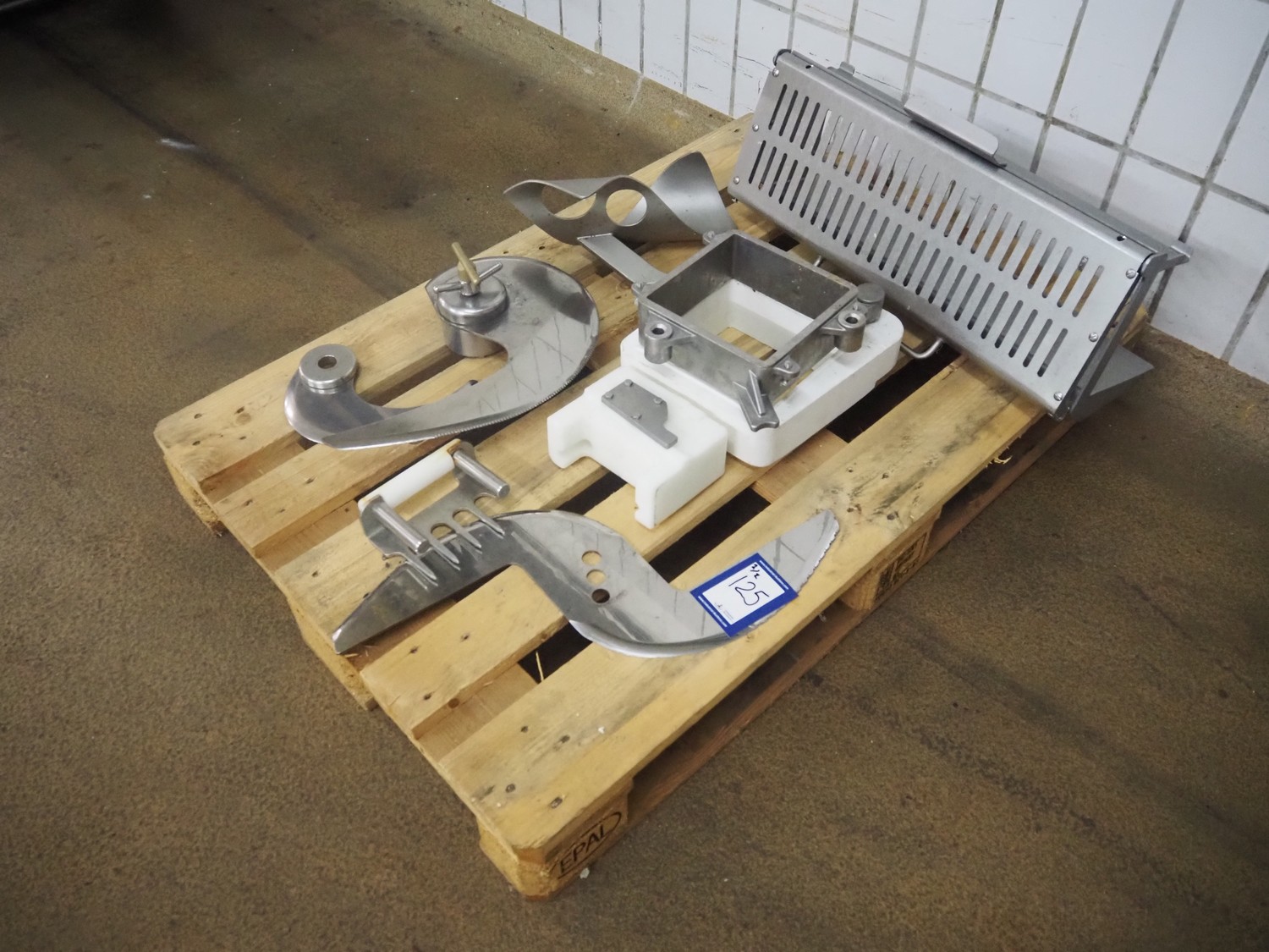 Treif Maschinenbau GmbH mobile dicer, model: HUSKY E, machine number: 471001.70021.101366, year of construction: 2006, 380/480 V, 3 Ph, 50/60 Hz, 16 A, 2 kW, weight: 389 kg, dimensions chamber: 95 mm x 95 mm, total dimensions: 2260 mm x 850 mm x 1200 mm. Including pallet with parts.