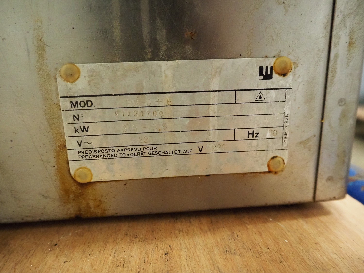 Fryer, model: FOE-6+6, number: 91121709, 220 V, 50 Hz, 3.5 kW, inside dimensions: (2x) 235 mm x 295 mm x 200 mm, total dimensions: 540 mm x 430 mm x 350 mm.