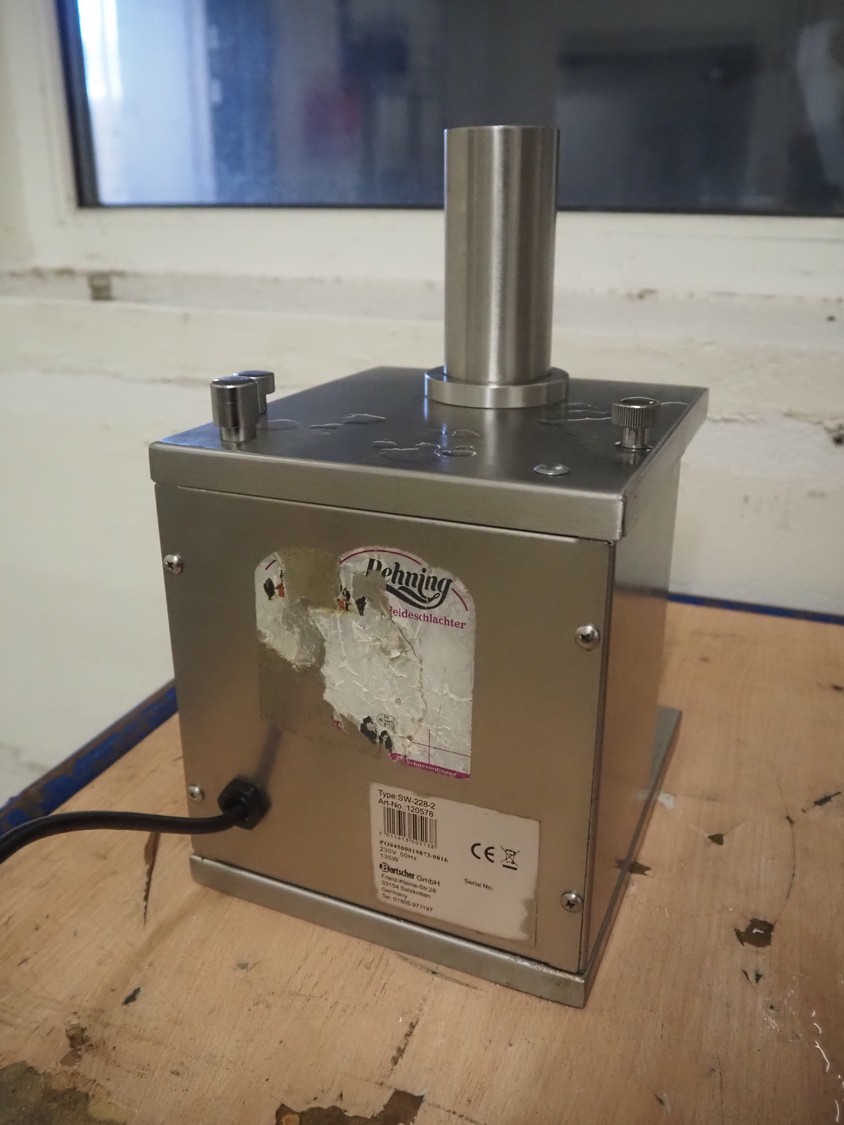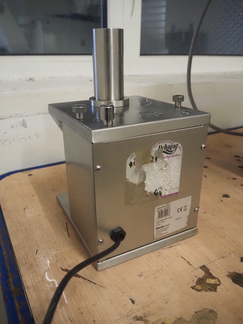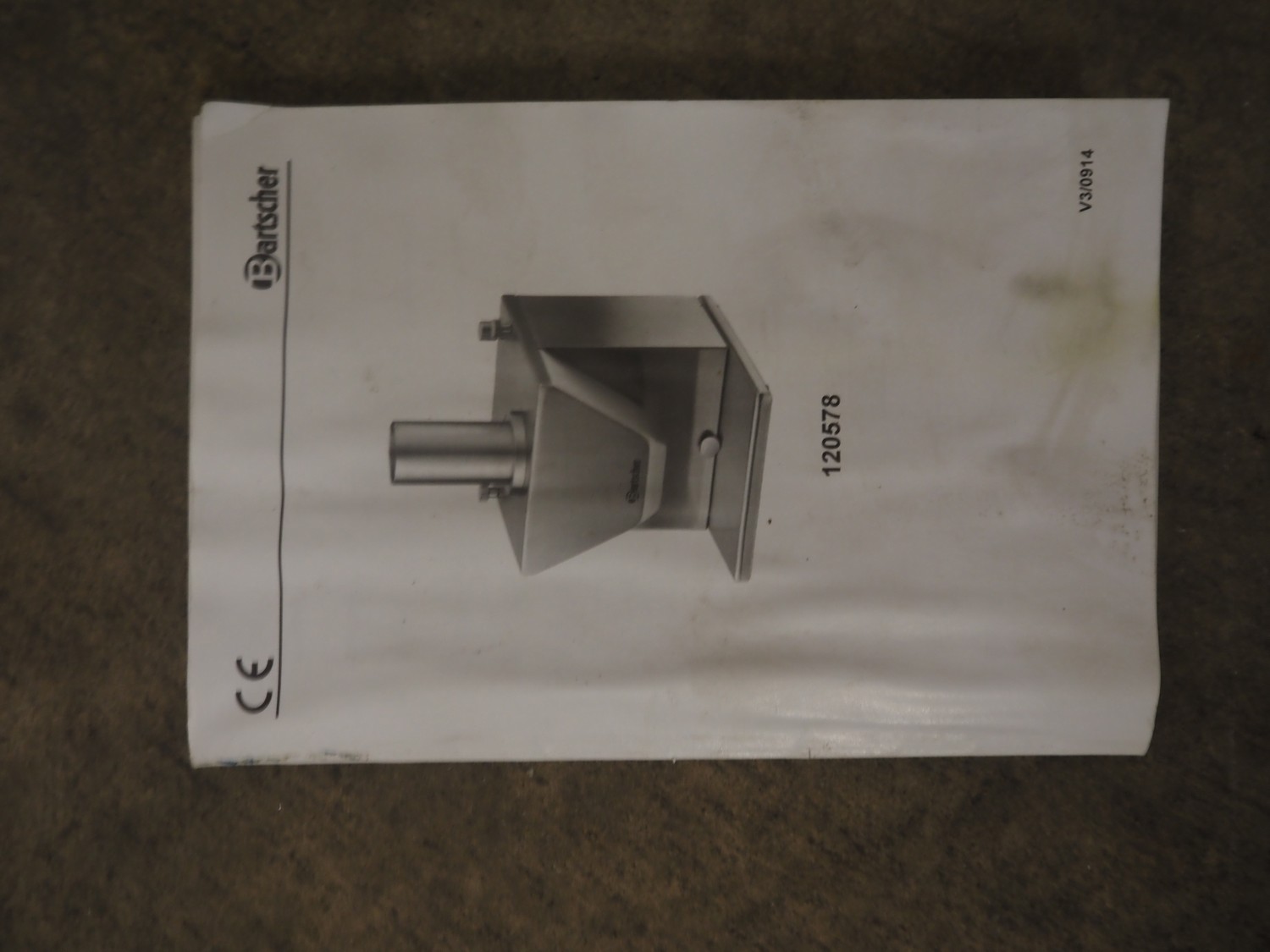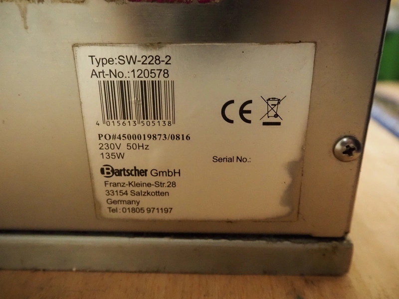 Bartscher GmbH electric sausage cutter, type: SW-228-2, 230 V, 50 Hz, 135 W, dimensions: 185 mm x 225 mm x 330 mm.