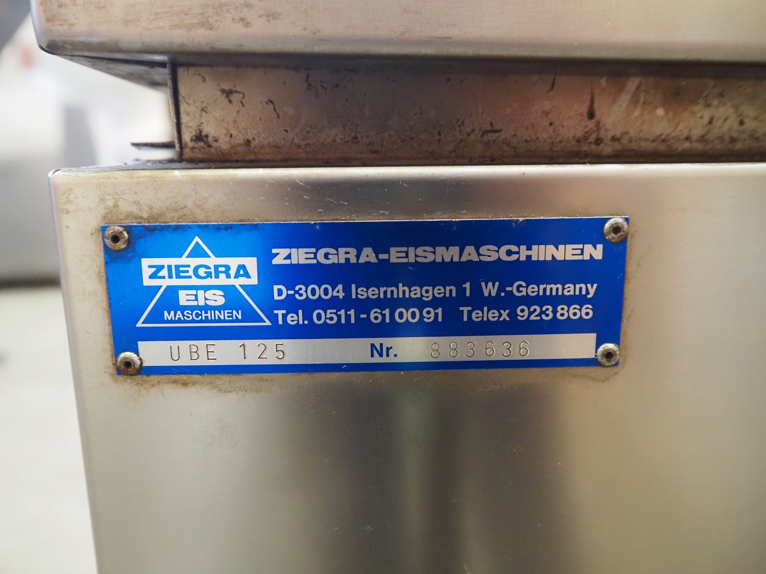 Ziegra ice machine, type: UBE 125, number: 883636, dimensions: 700 mm x 980 mm x 600 mm.