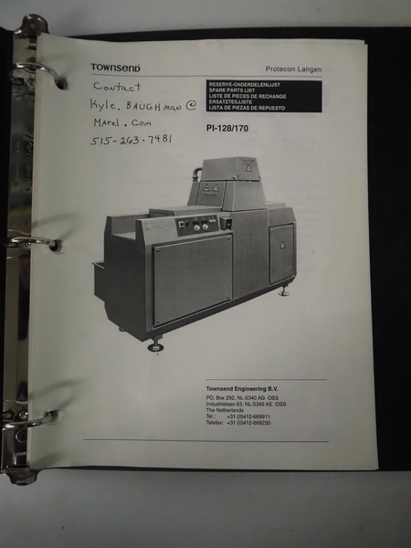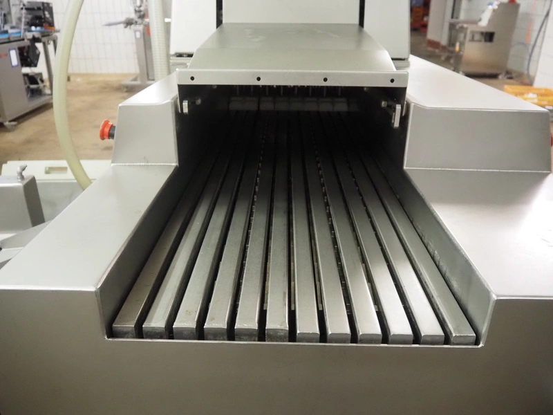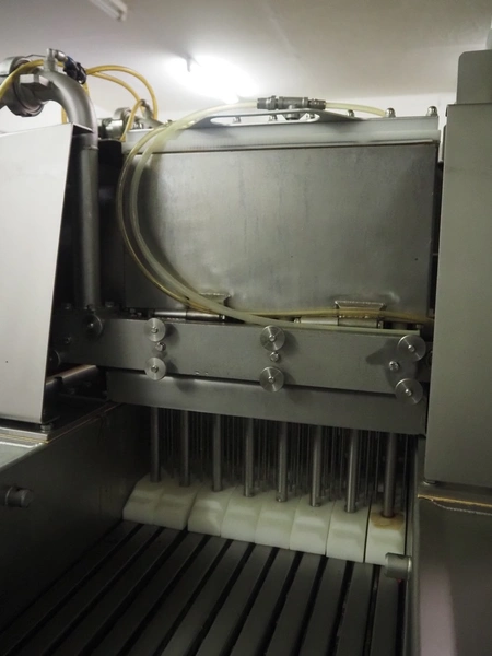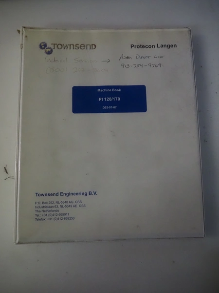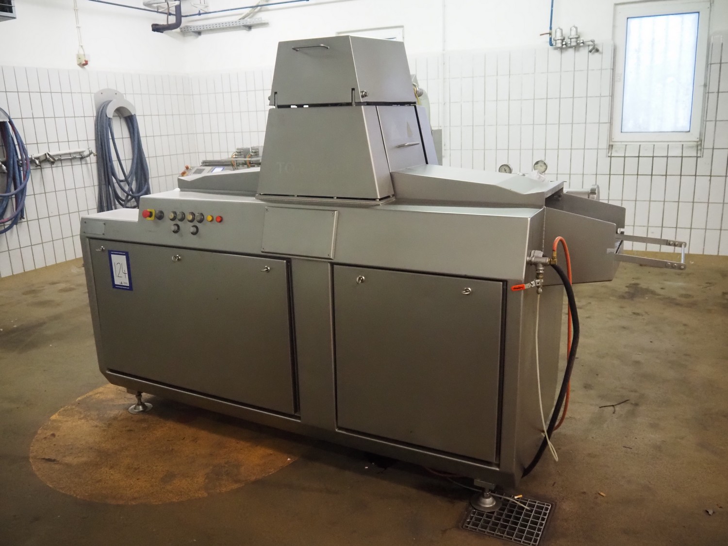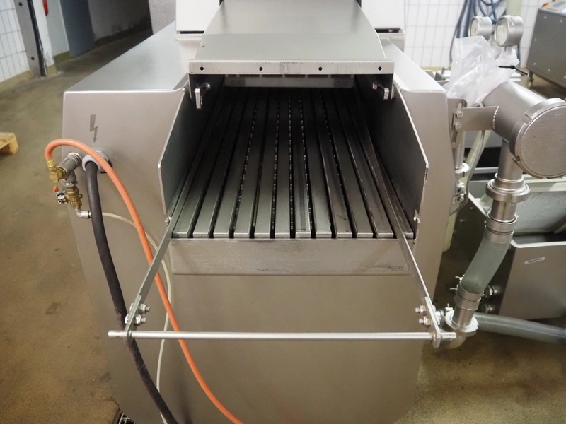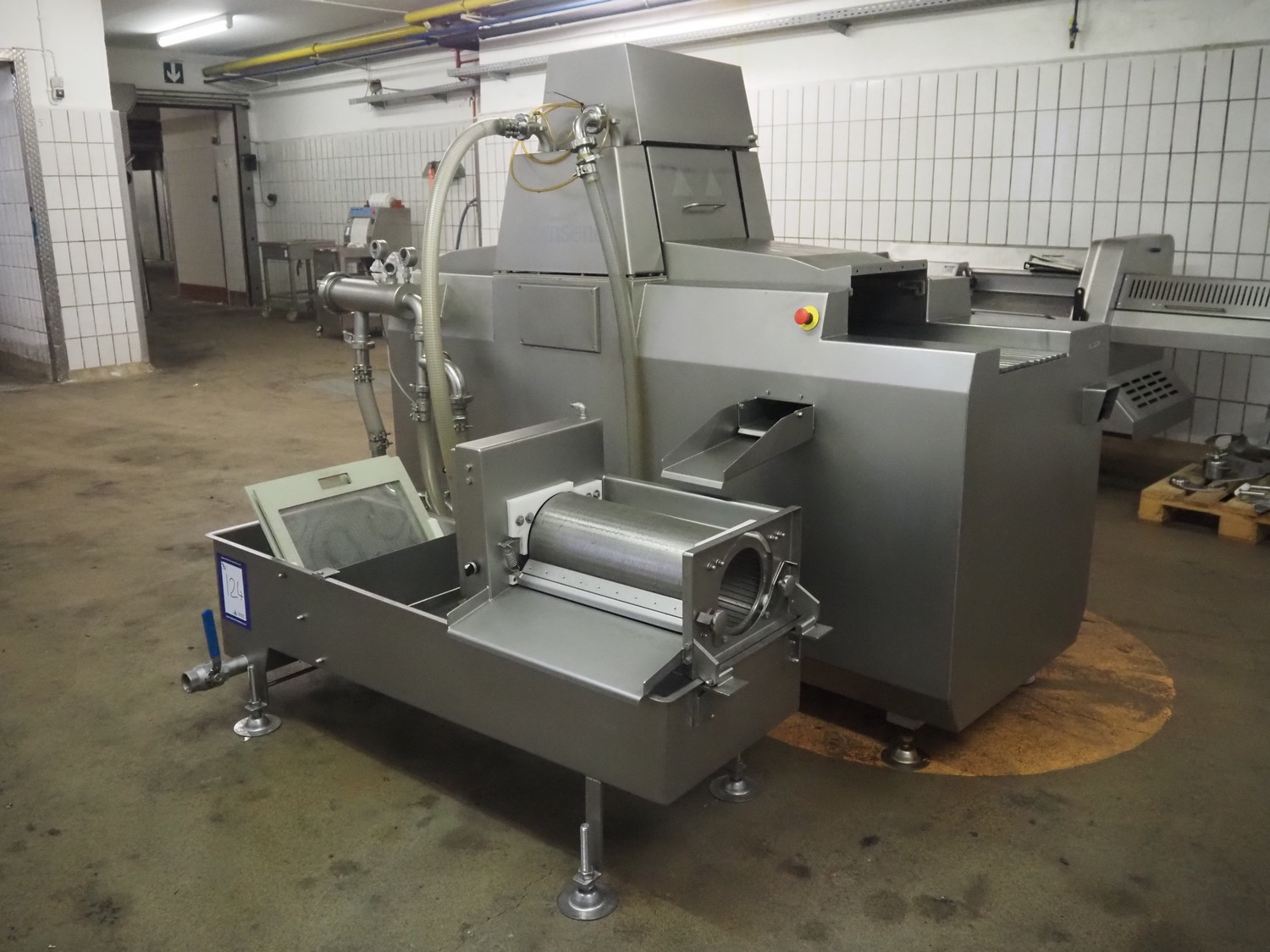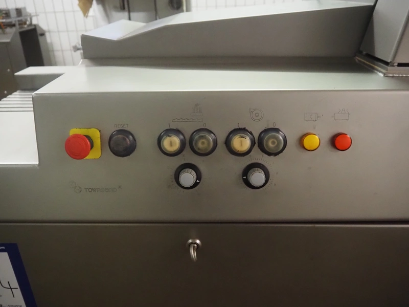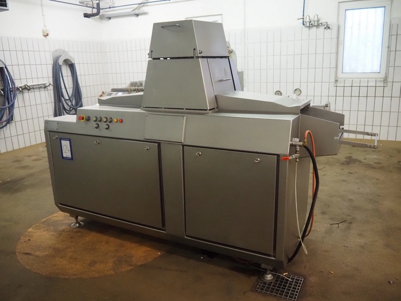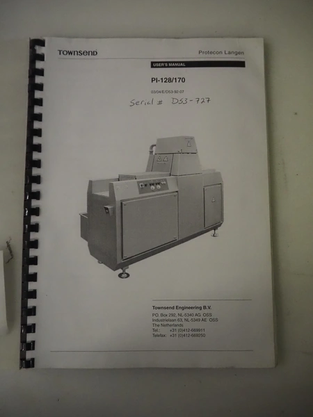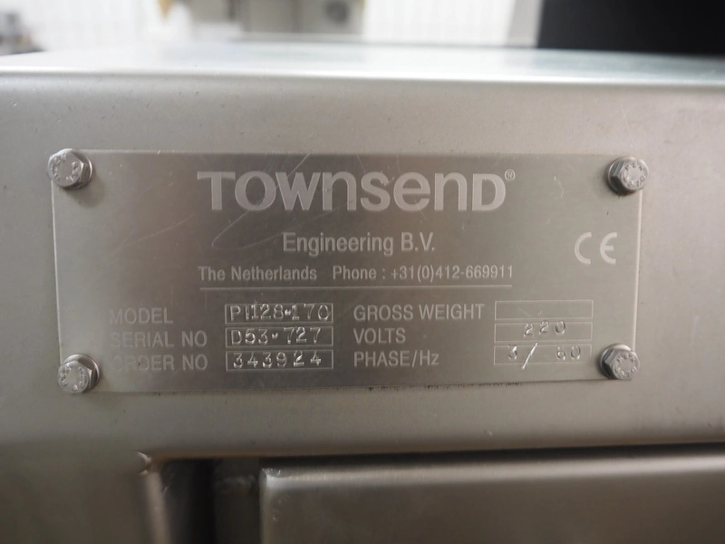 Townsend injector, model: PI 128.170, serial number: D53.727, 220 V, 3 Ph, 50 Hz, s/s walking beam, clearance: 405 mm x 200 mm, total dimensions: 2750 mm x 1050 mm x 1800 mm. Including filter tub, dimensions: 1660 mm x 650 mm x 800 mm.