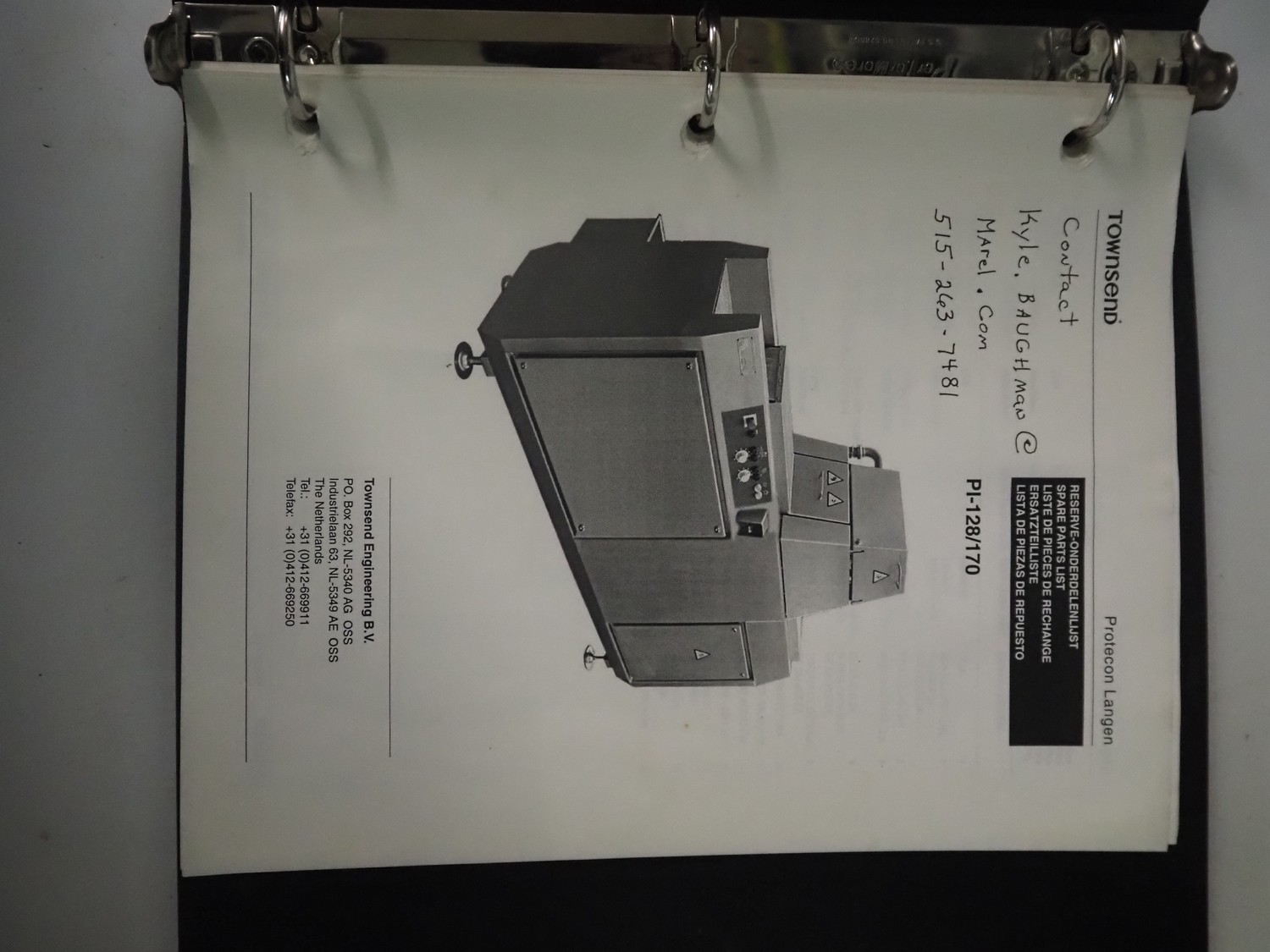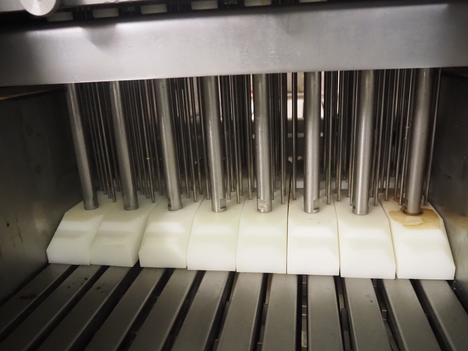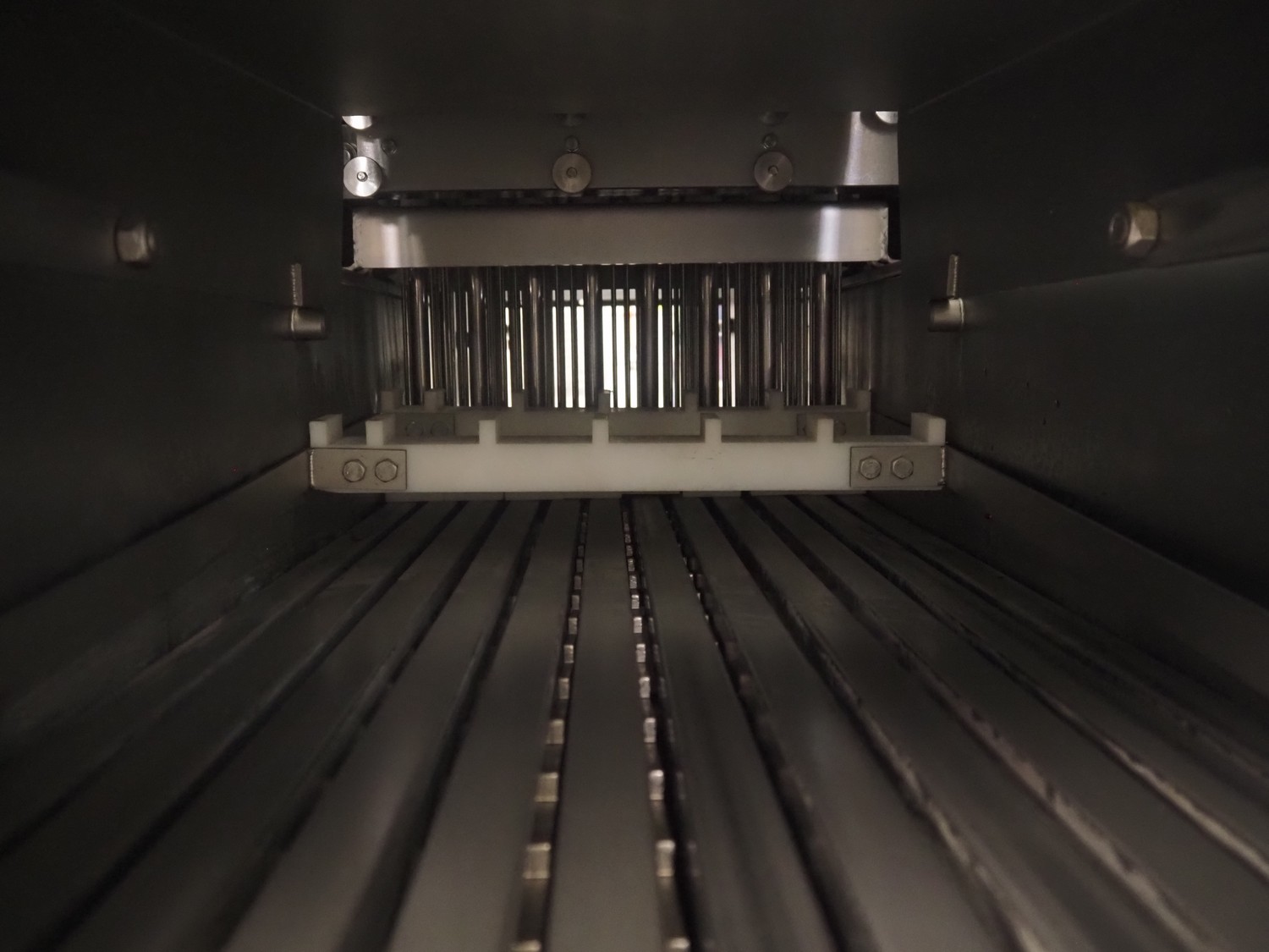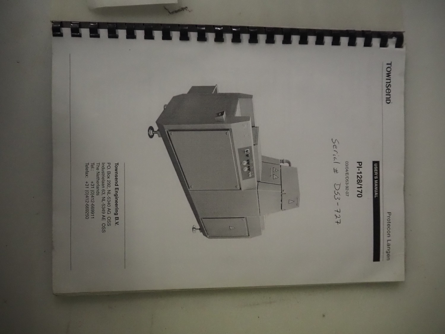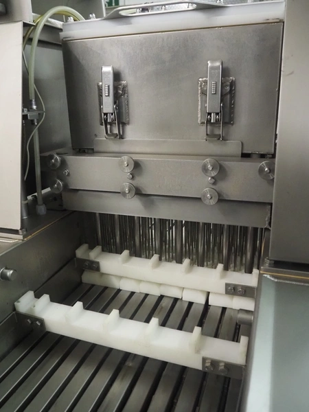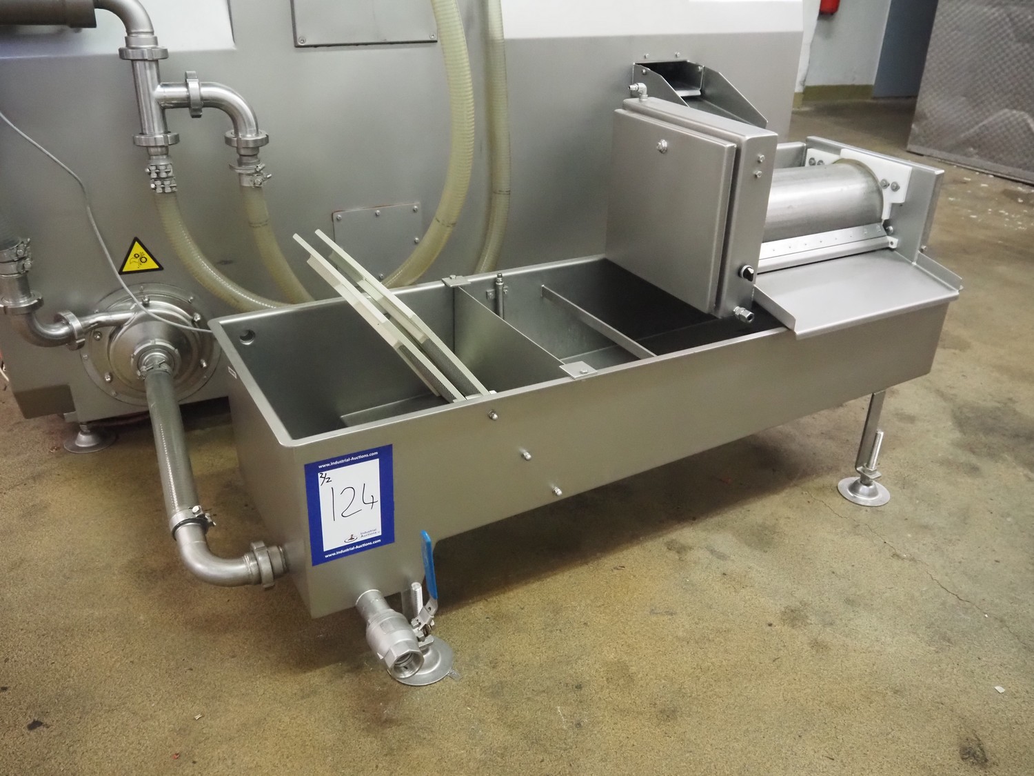 Townsend injector, model: PI 128.170, serial number: D53.727, 220 V, 3 Ph, 50 Hz, s/s walking beam, clearance: 405 mm x 200 mm, total dimensions: 2750 mm x 1050 mm x 1800 mm. Including filter tub, dimensions: 1660 mm x 650 mm x 800 mm.