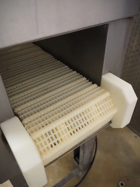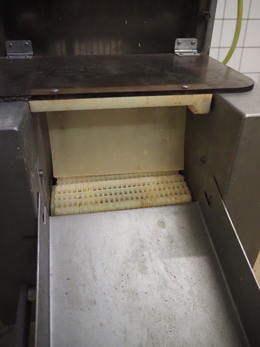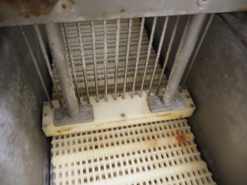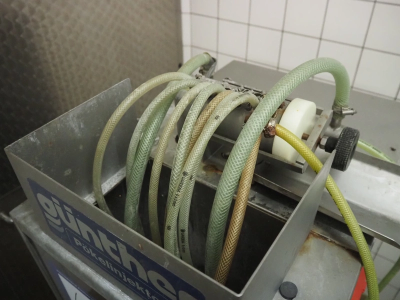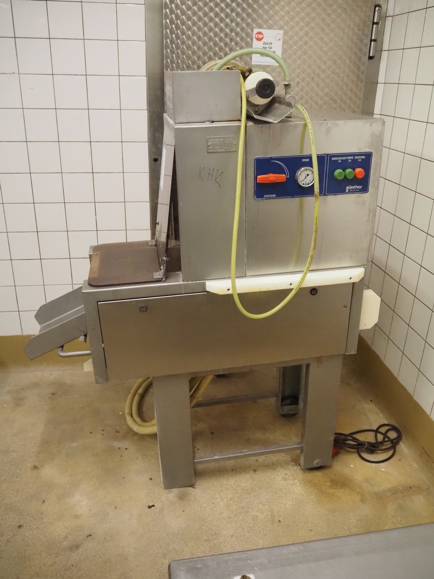 Günther injector, type: PI8/16, machine number: 22520, 380 V, 8 A, plastic mesh belt, belt width: 240 mm, 16 needles, total dimensions: 1350 mm x 450 mm x 1650 mm.