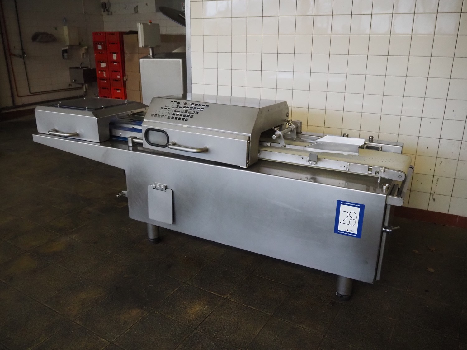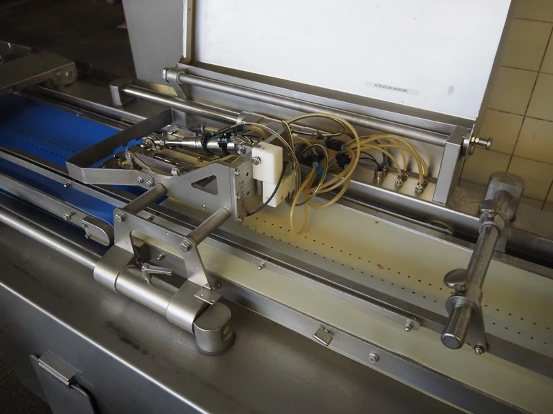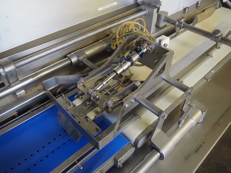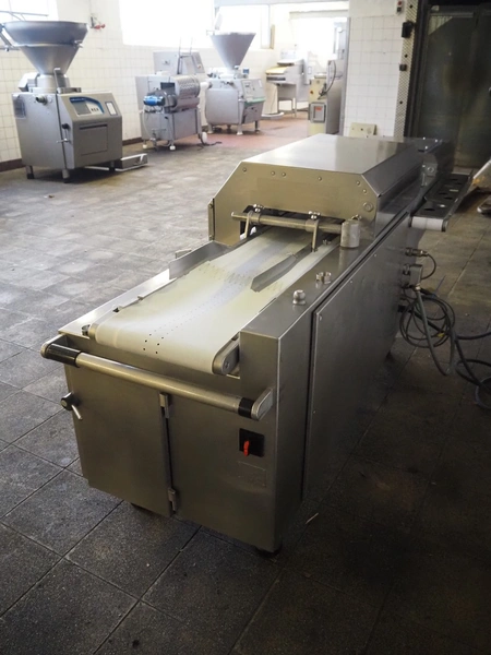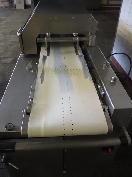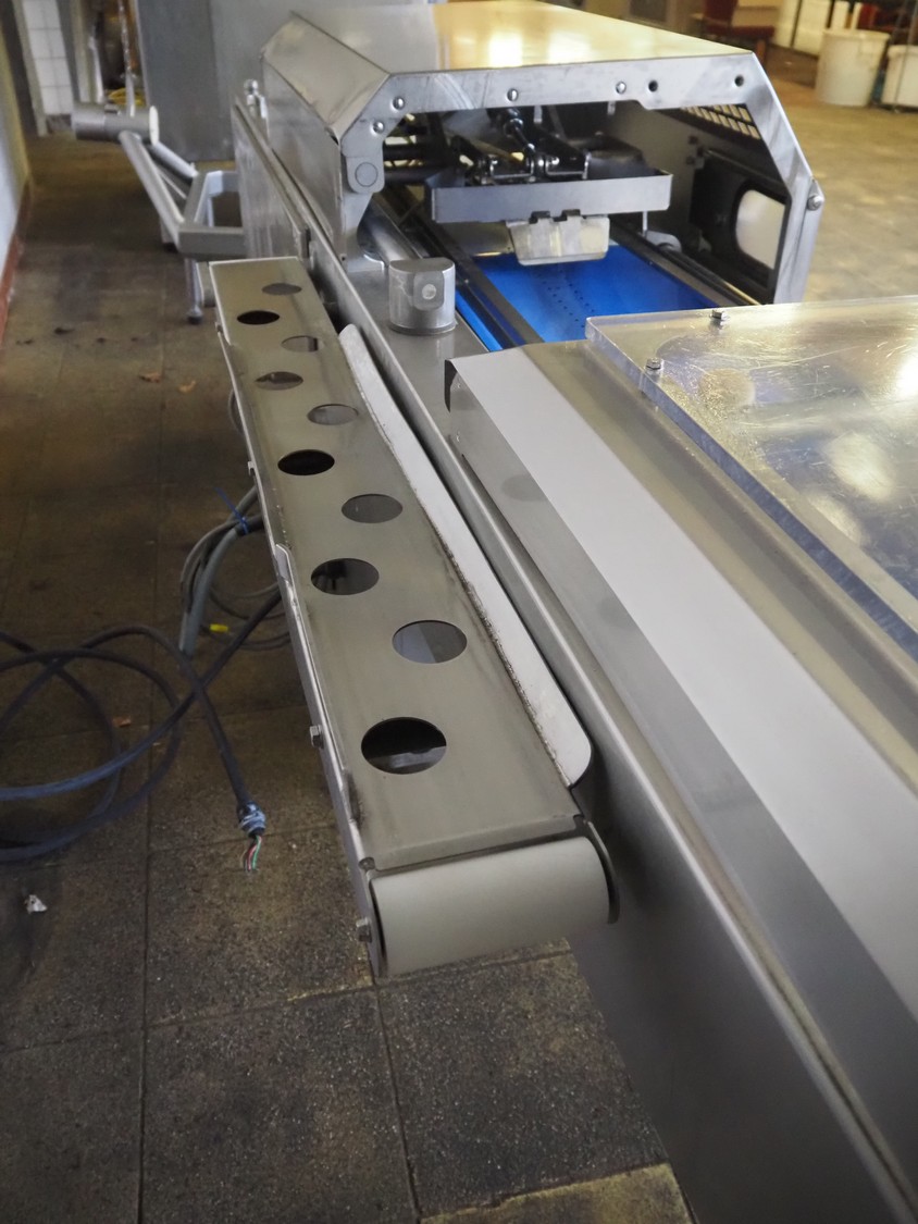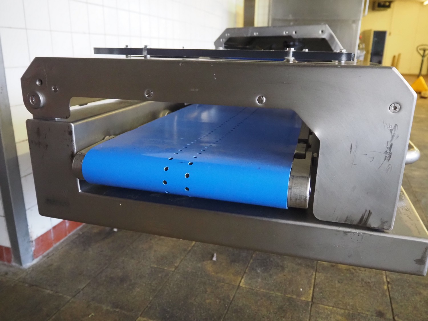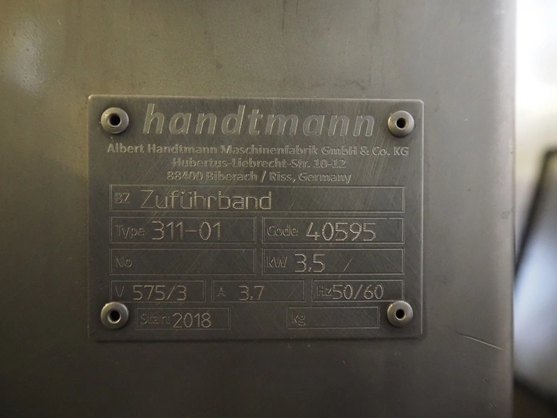Handtmann collating belt, type: 311-01, year of construction: 2018, 575 V, 3 Ph, 50/60 Hz, 3.7 A, 3.5 kW, plastic belt, belt width: 330 mm, clearance: 230 mm x 90 mm, total dimensions: 2860 mm x 900 m x 1100 mm.