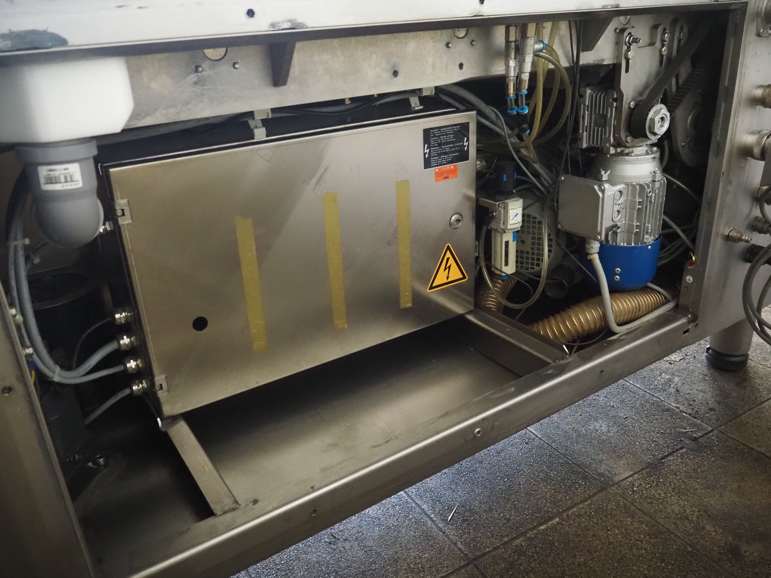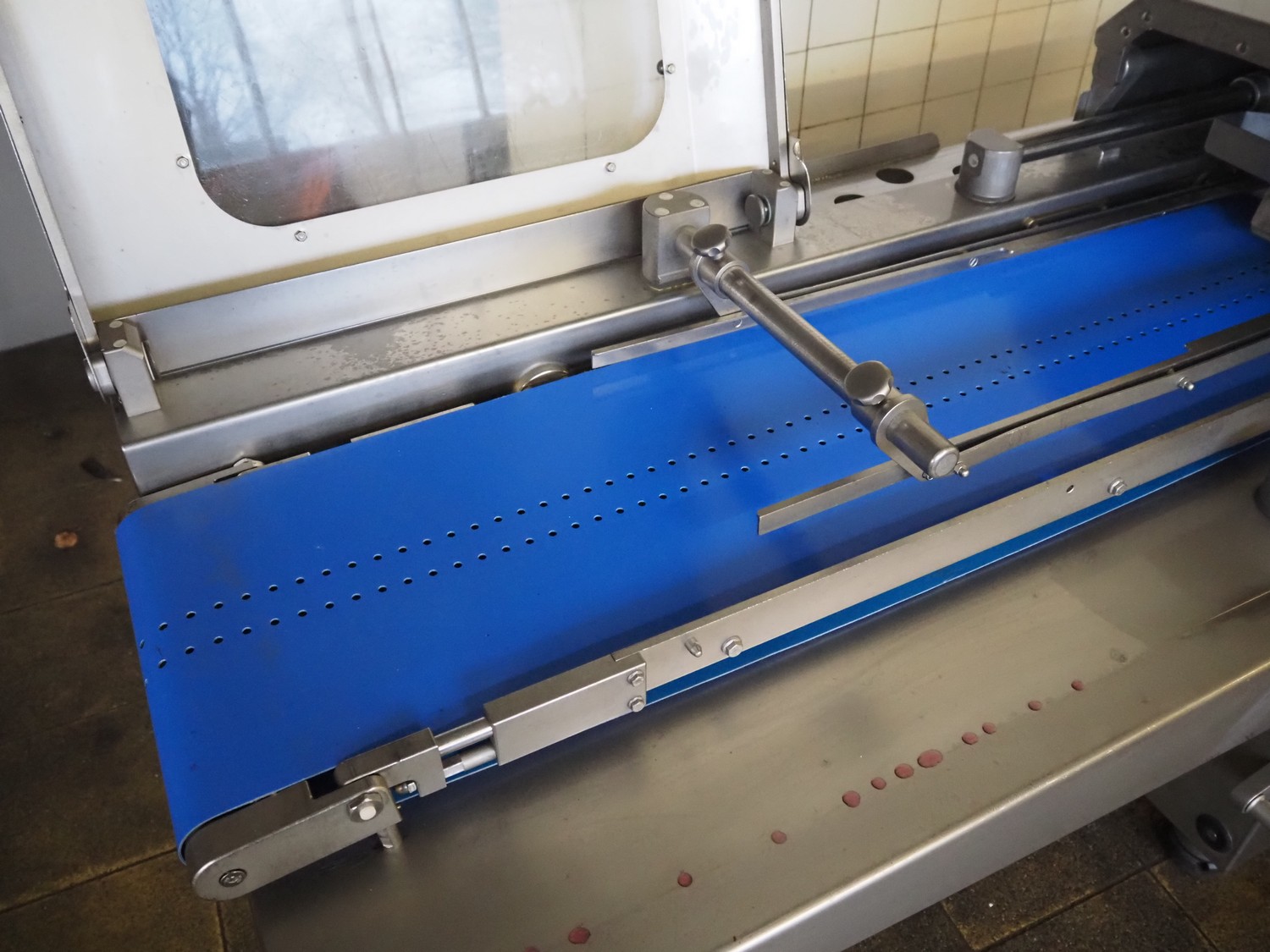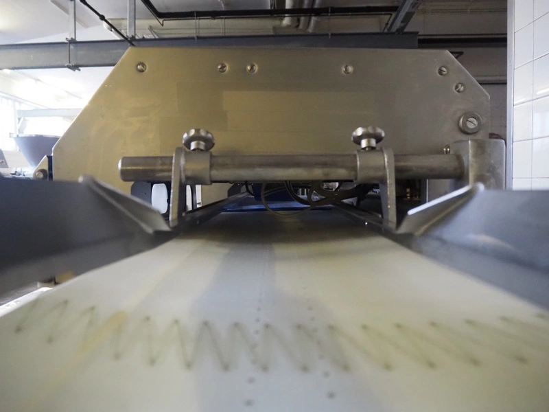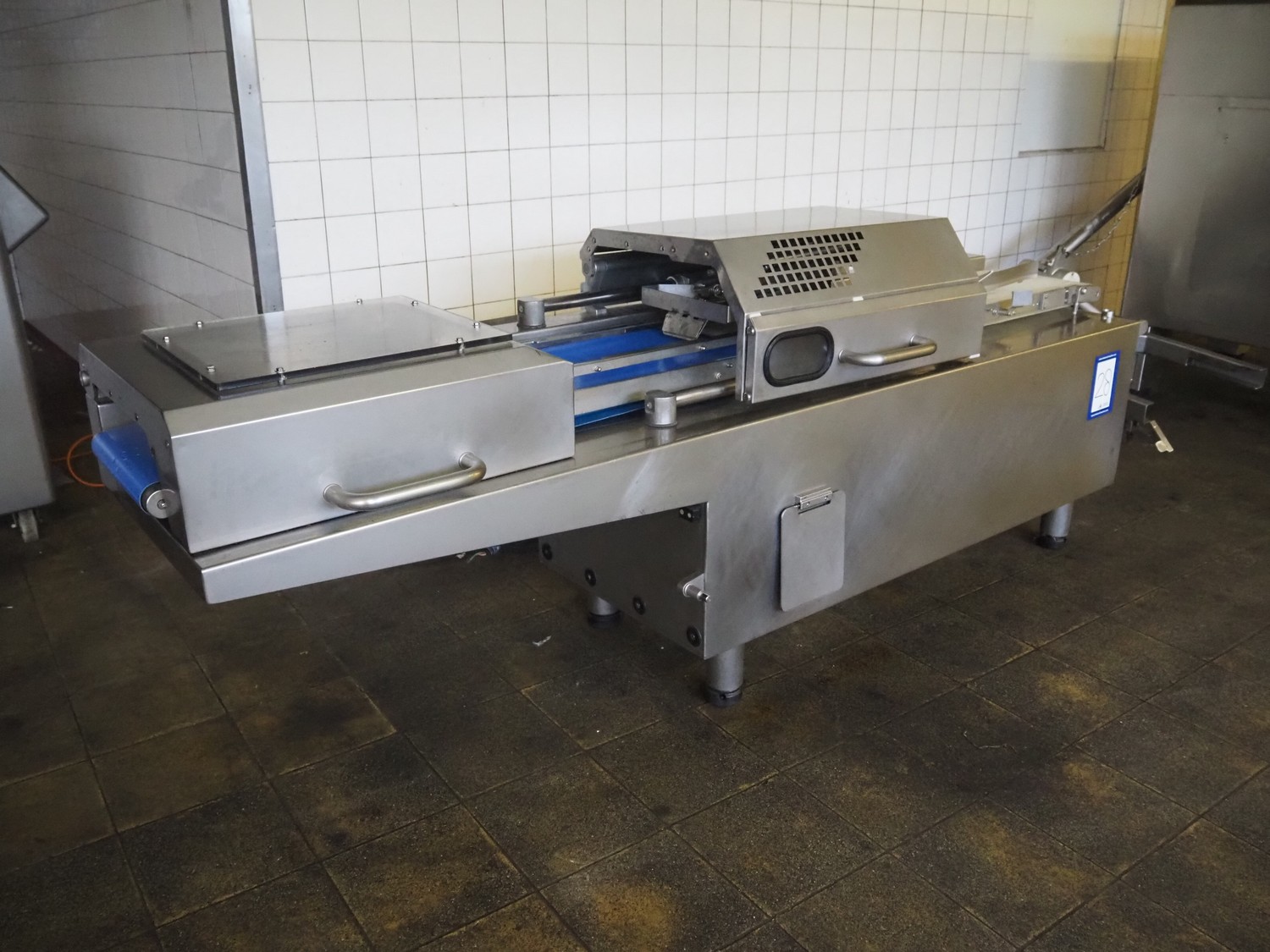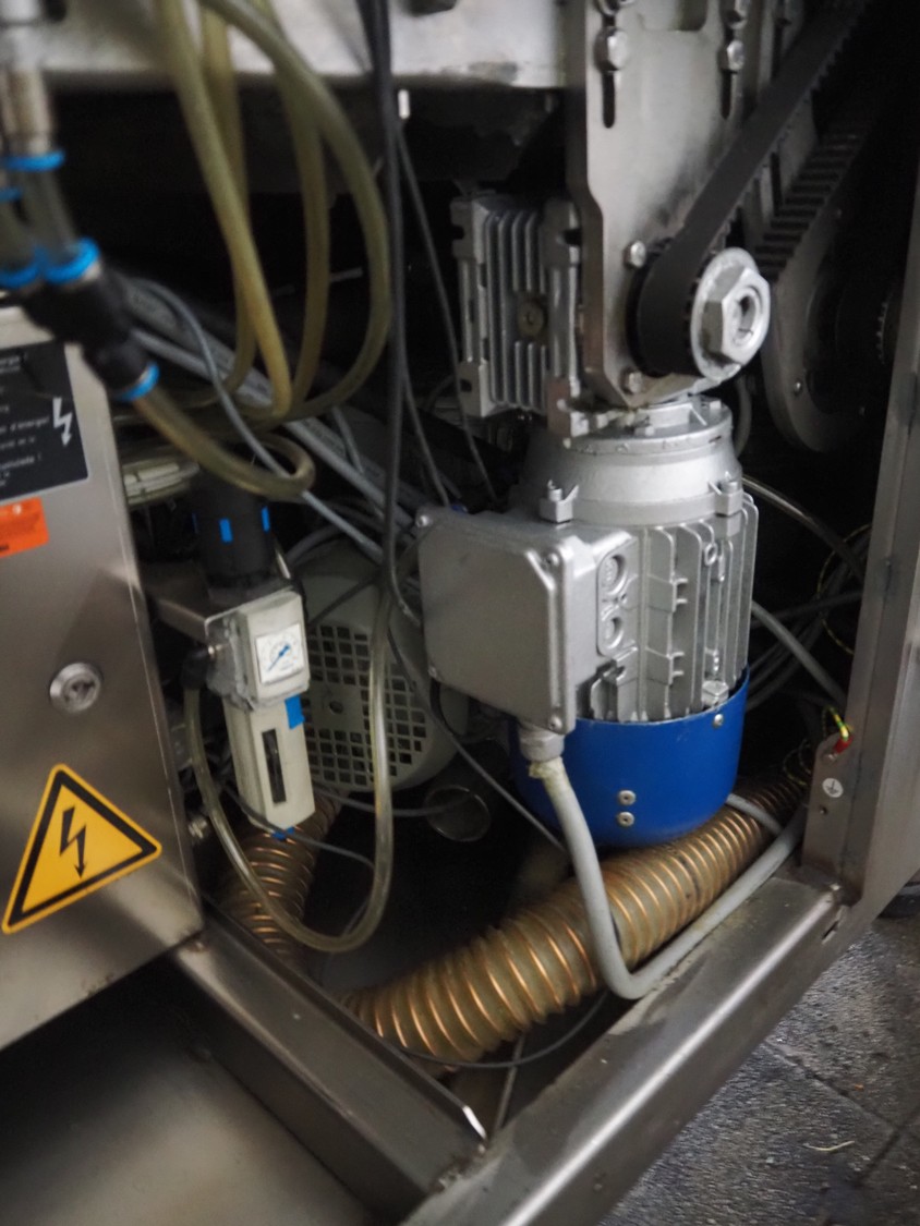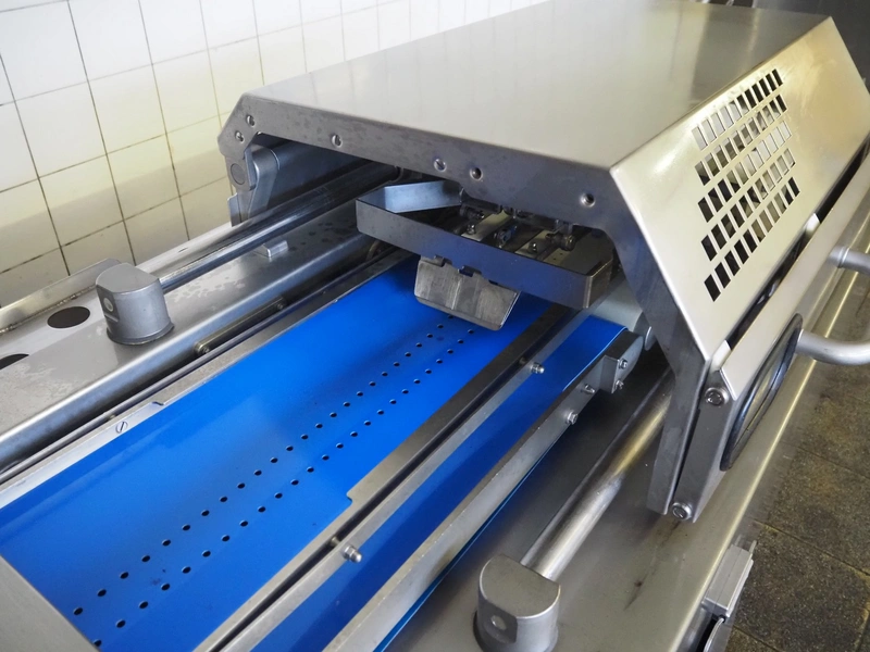 Handtmann collating belt, type: 311-01, year of construction: 2018, 575 V, 3 Ph, 50/60 Hz, 3.7 A, 3.5 kW, plastic belt, belt width: 330 mm, clearance: 230 mm x 90 mm, total dimensions: 2860 mm x 900 m x 1100 mm.