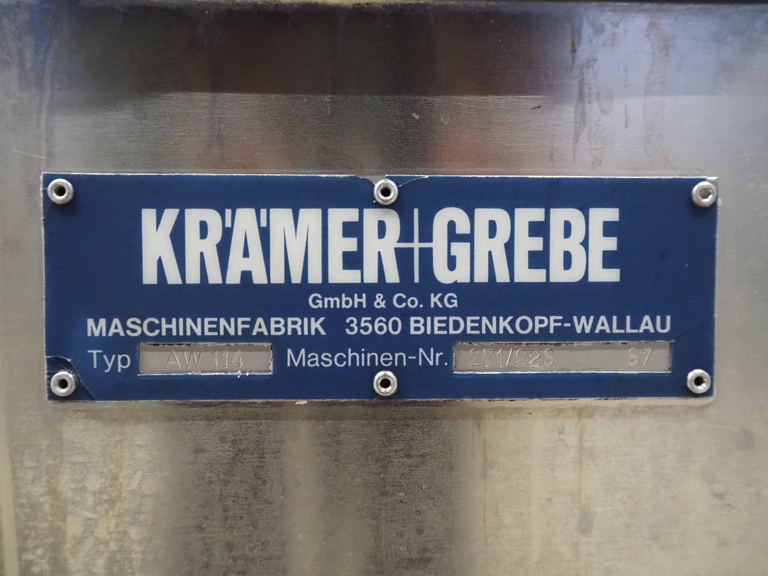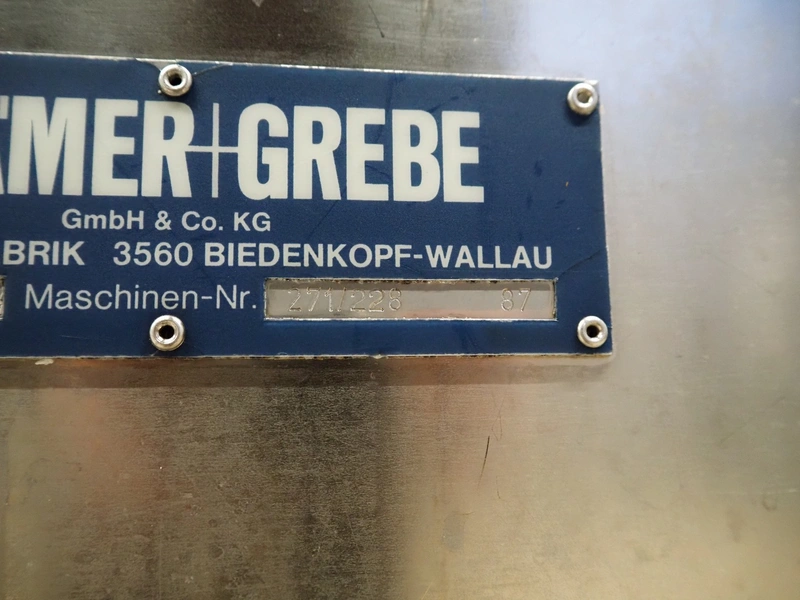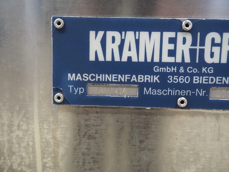 Kramer + Grebe GmbH & Co.KG grinder, type: AW 114, machine number: 271/228 87, diameter plate: 114 mm, dimensions: 780 mm x 1170 mm x 1200 mm.