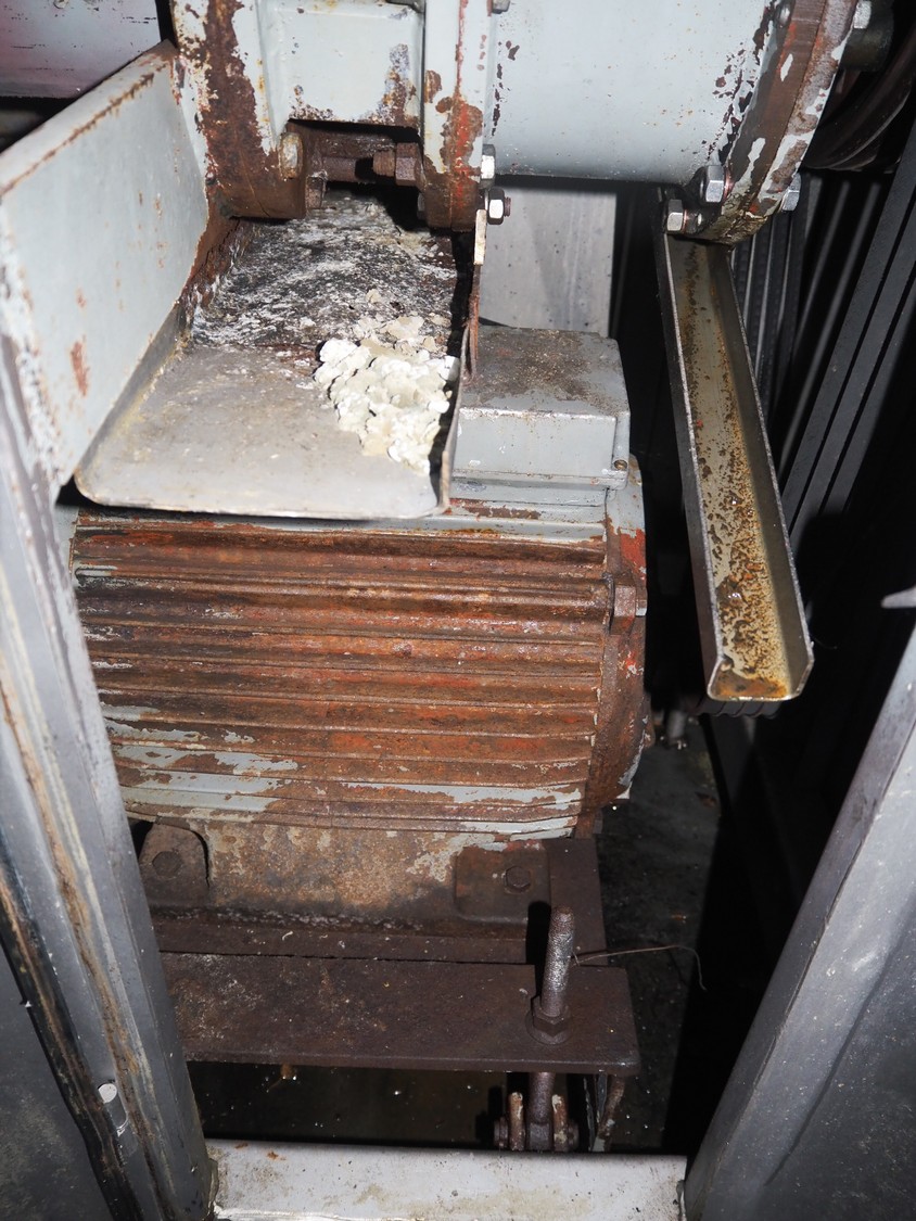 Palmia grinder, type: P207320, number: 4421, dimensions: 980 mm x 1380 mm x 1680 mm. Missing knifes and plates.