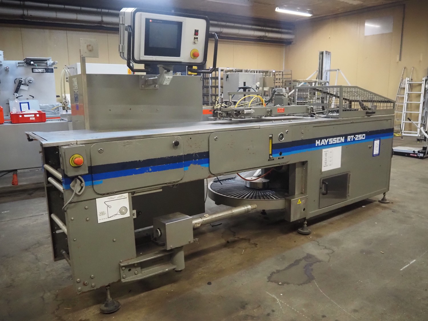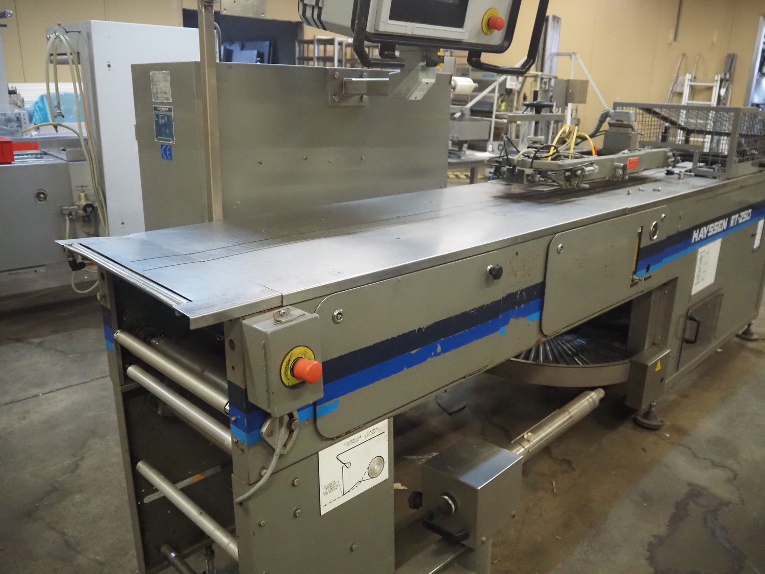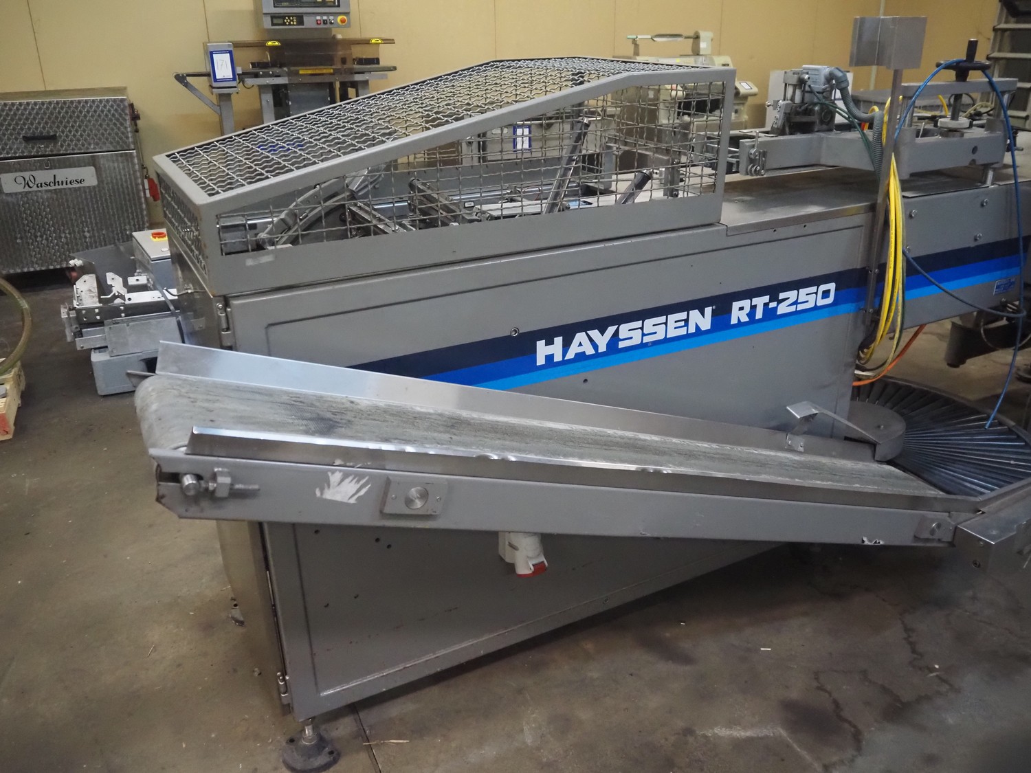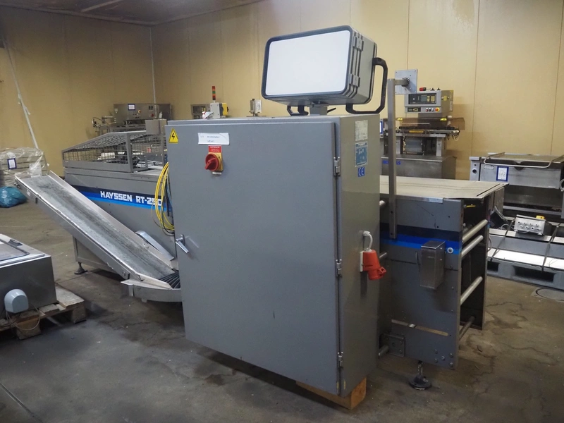 Hayssen horizontal form, fill and seal machine used for cheese, model: RT-250, serial number: R85507, year of construction: 9-20-96, 380 V, 3 PH, 50 Hz, 35 A, plastic belt, belt width: 230 mm, roller width: 370 mm, total dimensions: 3800 mm x 1200 mm x 1900 mm.