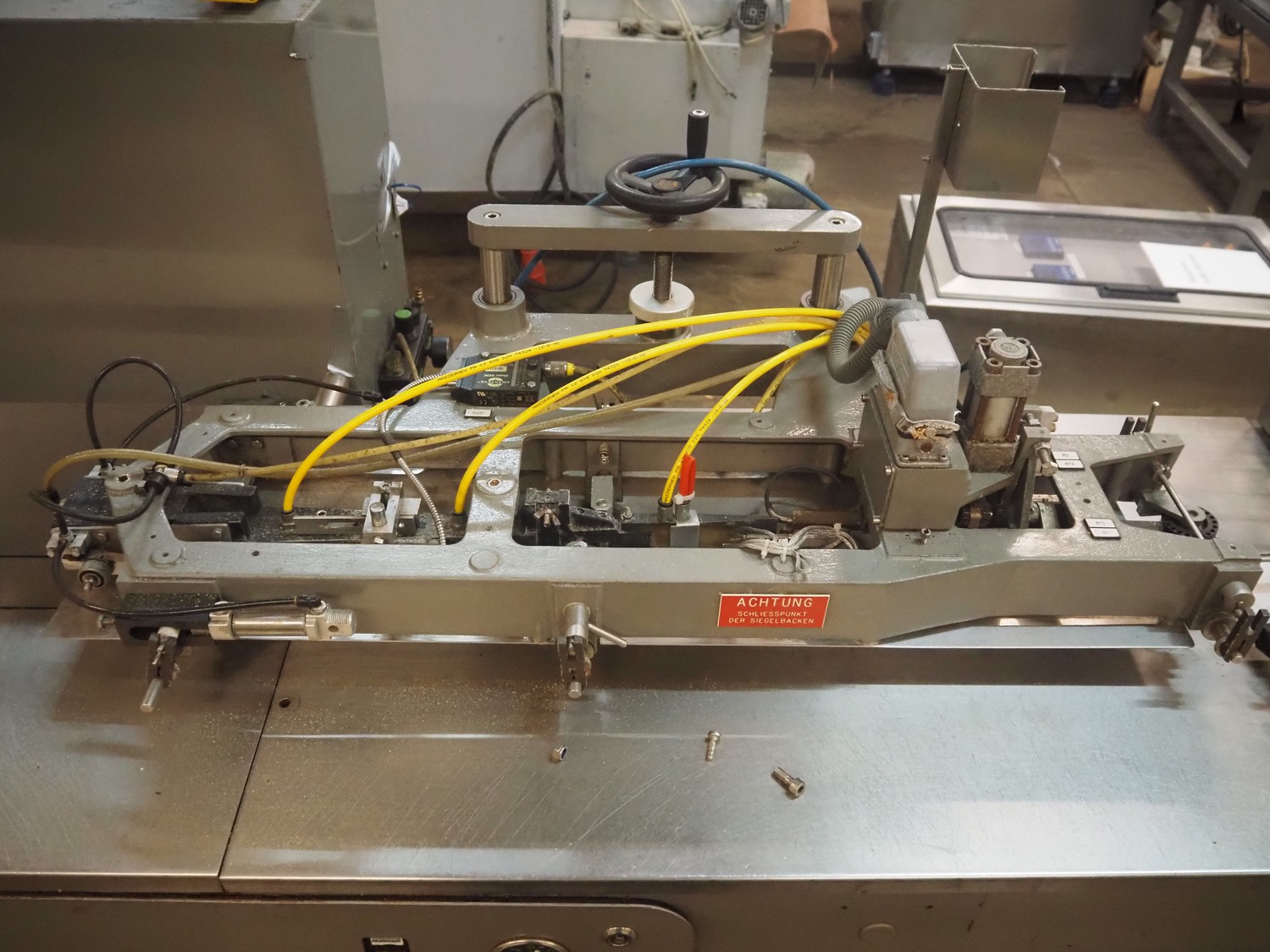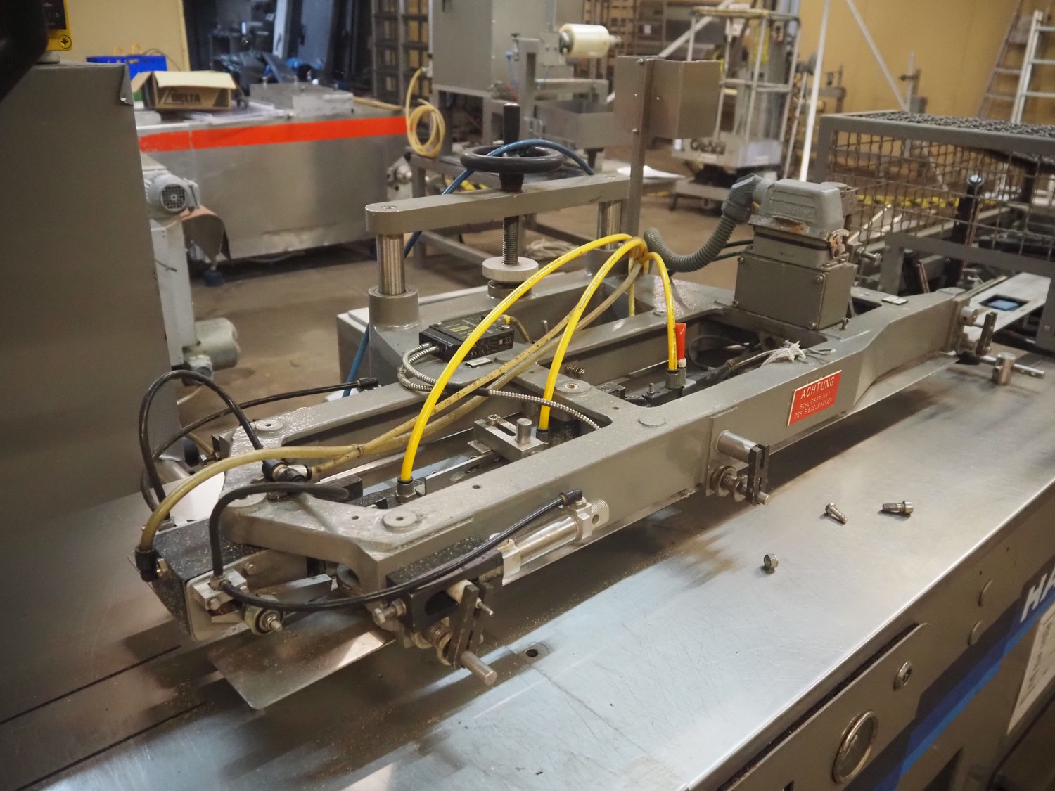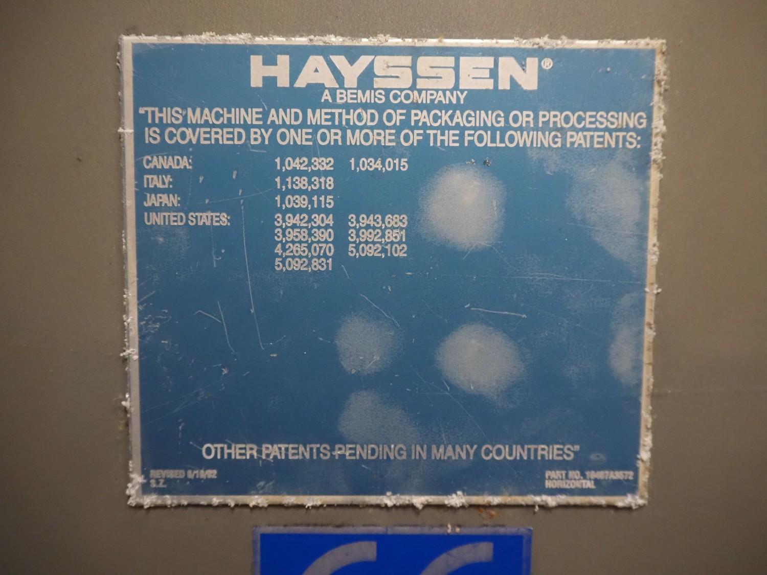 Hayssen horizontal form, fill and seal machine used for cheese, model: RT-250, serial number: R85507, year of construction: 9-20-96, 380 V, 3 PH, 50 Hz, 35 A, plastic belt, belt width: 230 mm, roller width: 370 mm, total dimensions: 3800 mm x 1200 mm x 1900 mm.