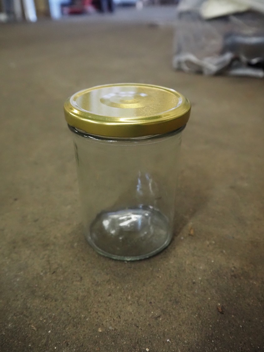 2 pallets with large amount of glass jars and a bag with lids, dimensions jar: ⌀ 80 mm x 110 mm.