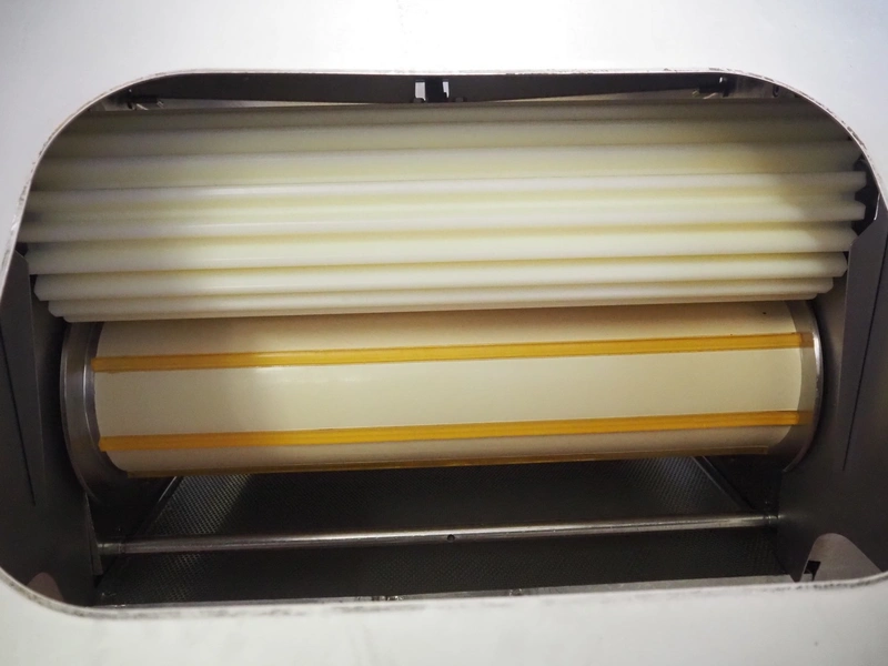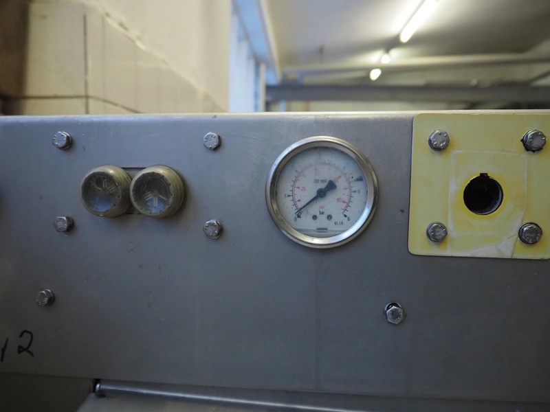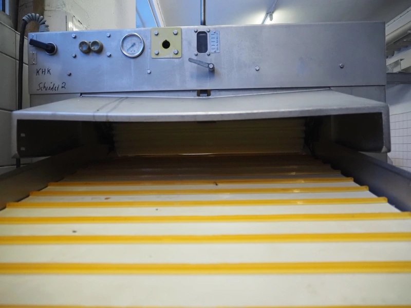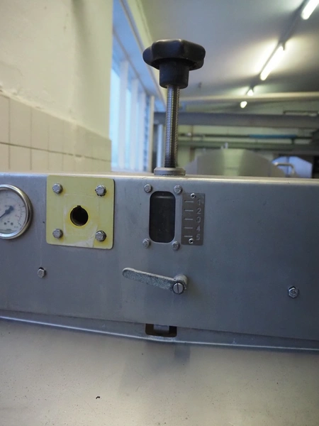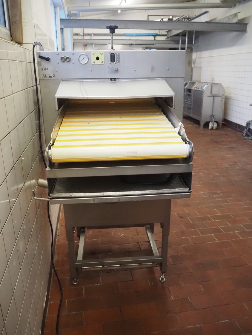 Schröder curing press, type: PSM500, number: PSM25499, 400 V, 50 Hz, 2.5 A, 1.2 kW, plastic belt, belt width: 650 mm, roller length: 650 mm, dimensions infeed: 665 mm x 135 mm, total dimensions: 1620 mm x 1000 mm x 1870 mm.