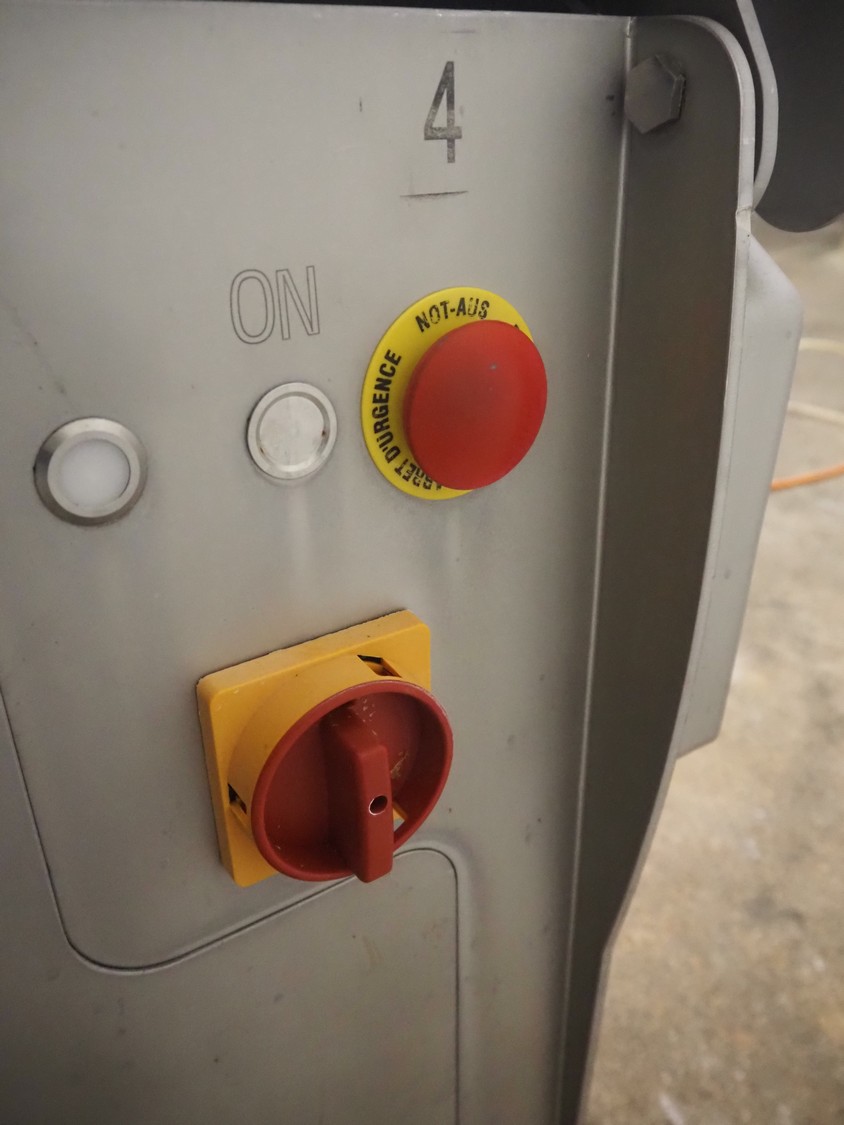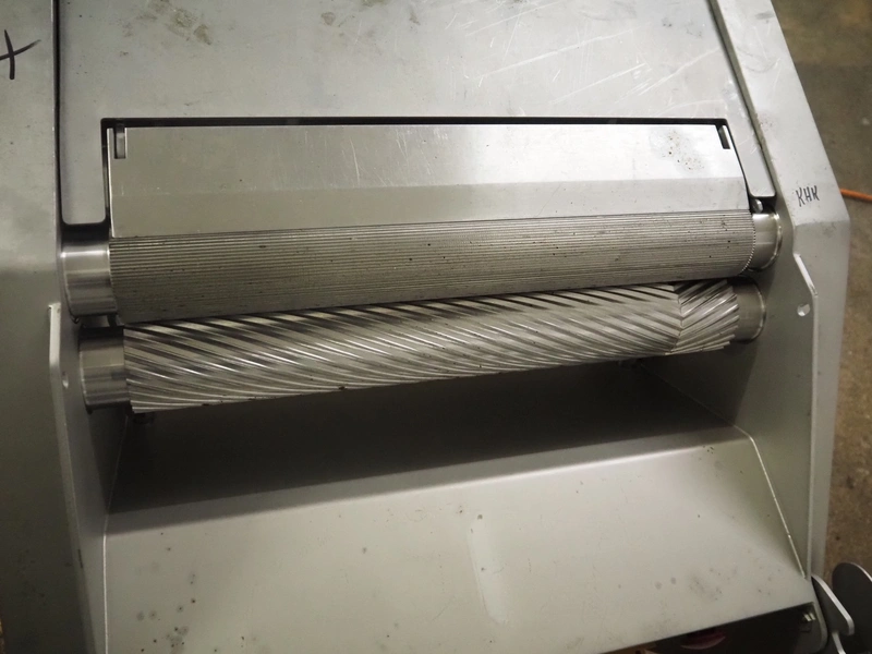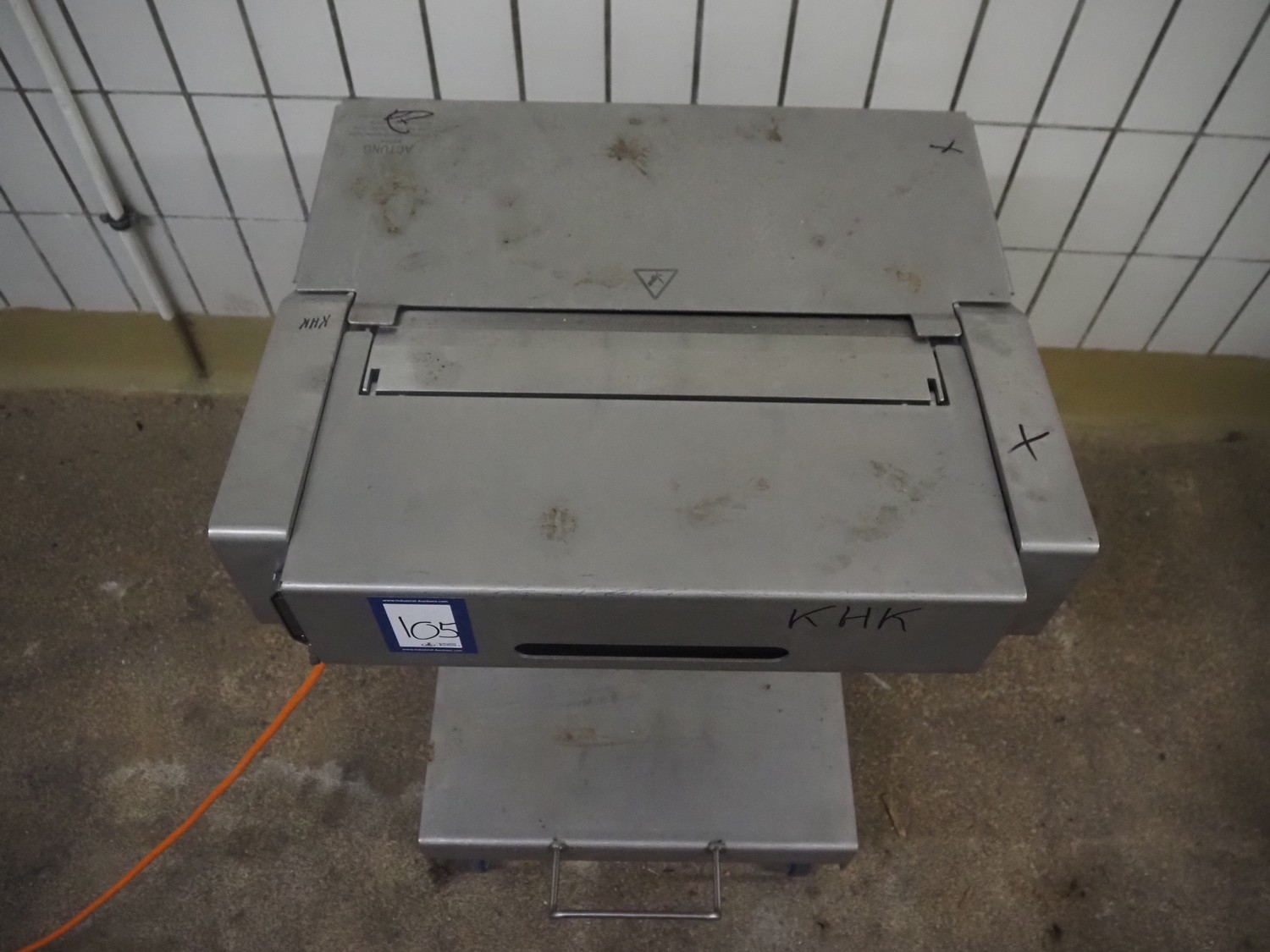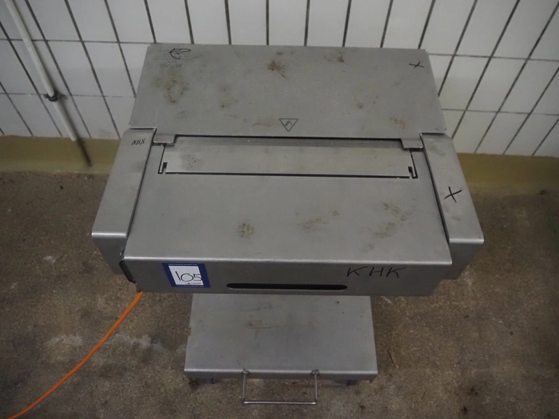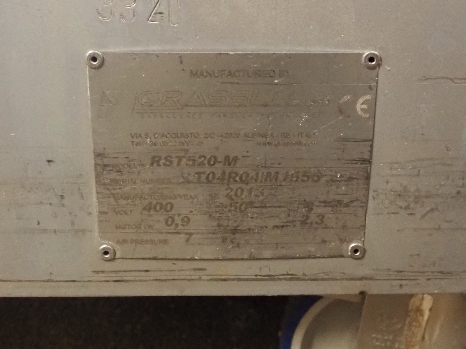 Grasselli mobile skinning machine, model: RST520-M, serial number: T04R04IM1656, year of construction: 2013, 400 V, 3 Ph, 50 Hz, 2.3 A, 0.9 kW, working width: 480 mm, total dimensions: 700 mm x 700 mm x 930 mm.