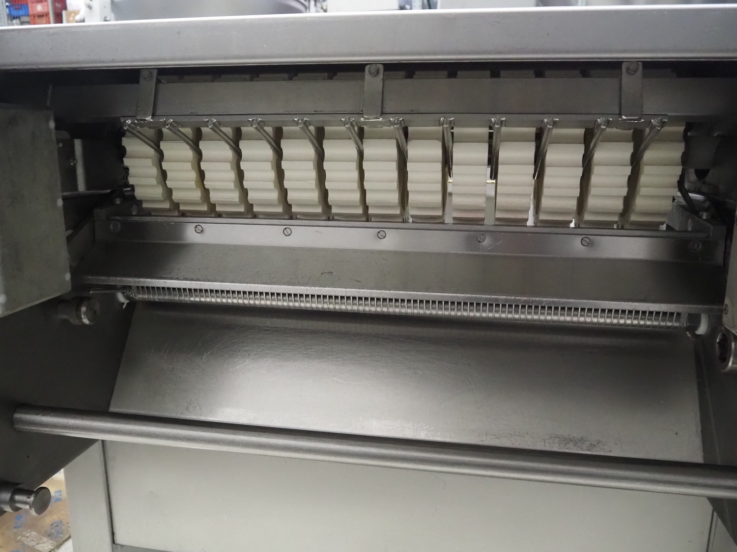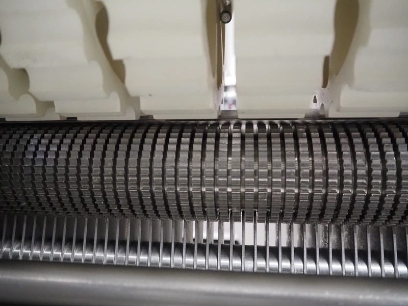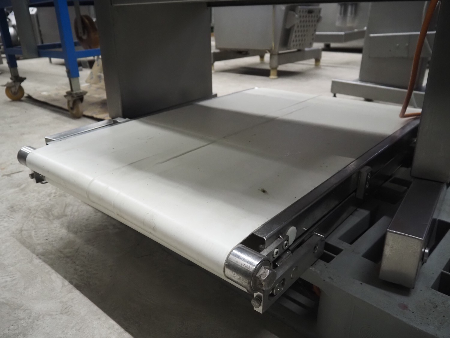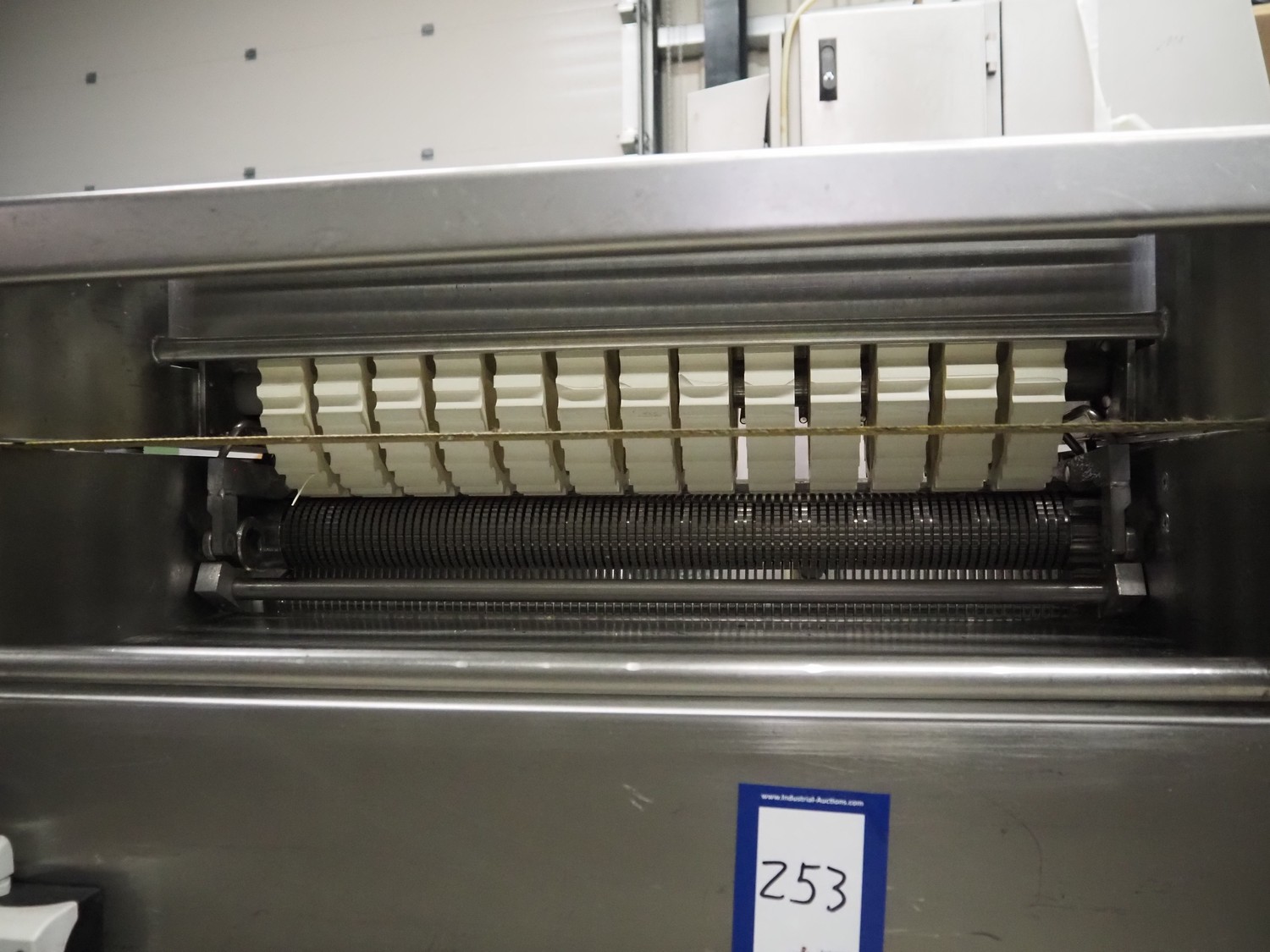 Weber skinning and deriding machine, type: ASB 1400, number: 332, 380 V, 50 Hz, 1.5 kW, working width: 700 mm, total dimensions: 1080 mm x 930 mm x 1150 mm. Including 2 plastic belts, belt width: 620 mm.