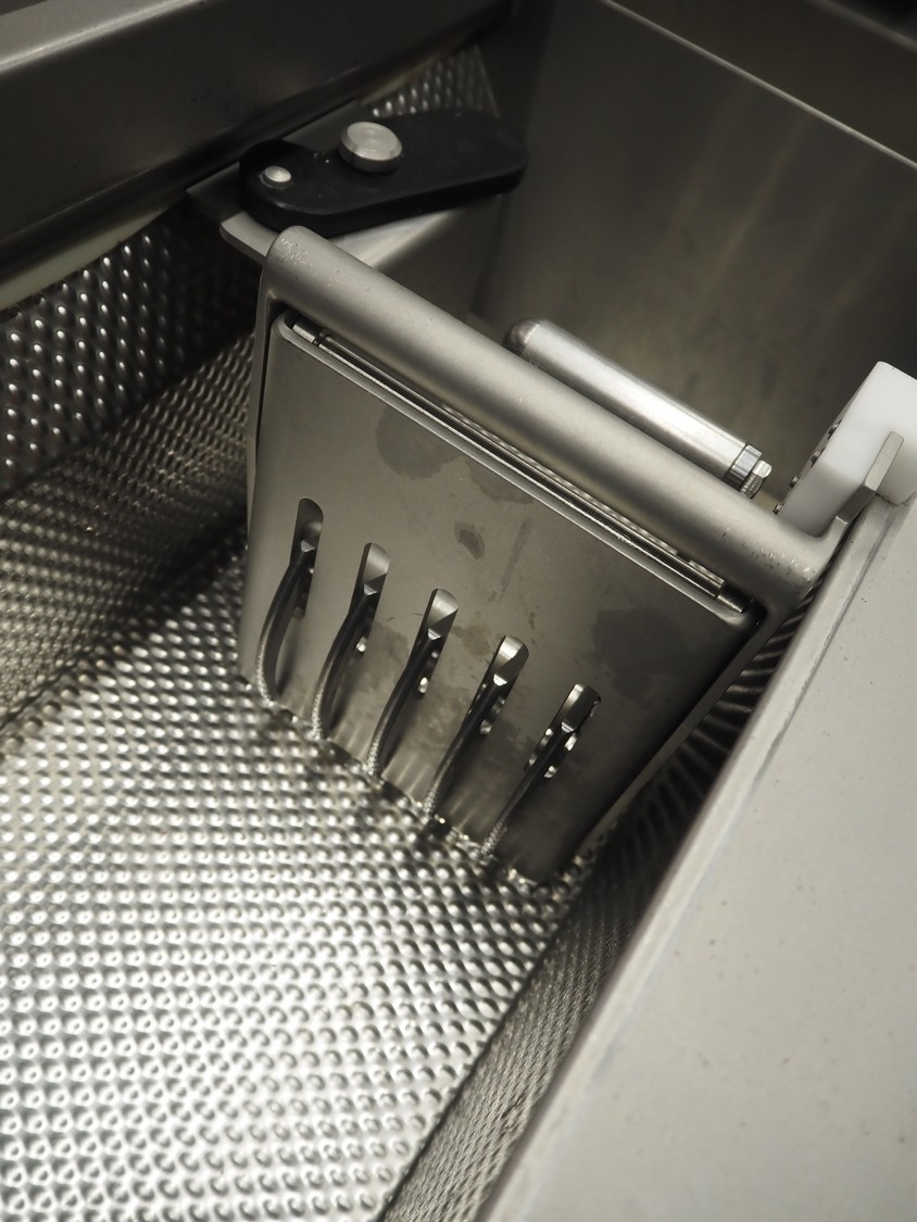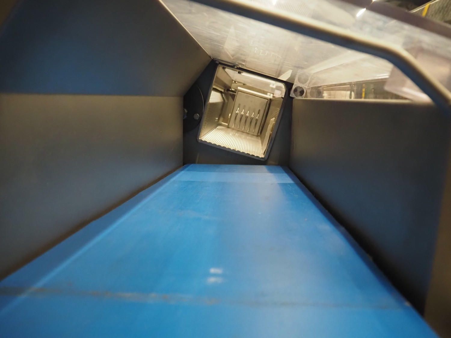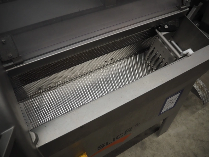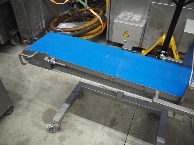 Foodlogistik Fleischereimaschinen GmbH mobile slicer, model: SLICR COMFORT 21, serial number: 2173011, year of construction: 2017, 400 V, 3 Ph, 50 Hz, 4.8 kW, plastic belt, belt width: 290 mm, dimensions chamber: 210 mm x 190 mm x 900 mm, total dimensions: 3000 mm x 830 mm x 1380 mm.