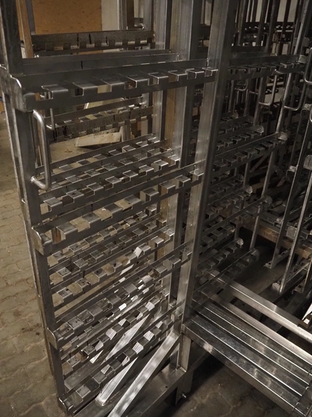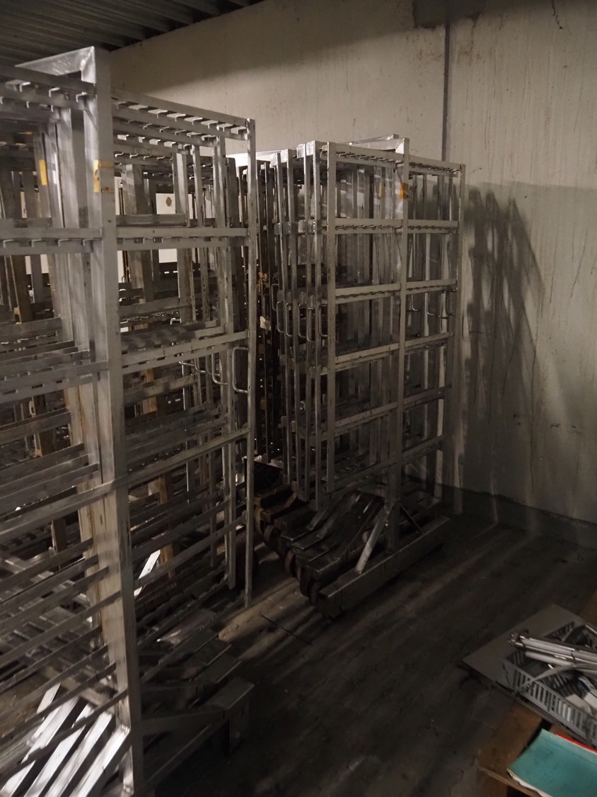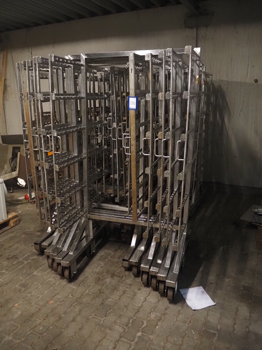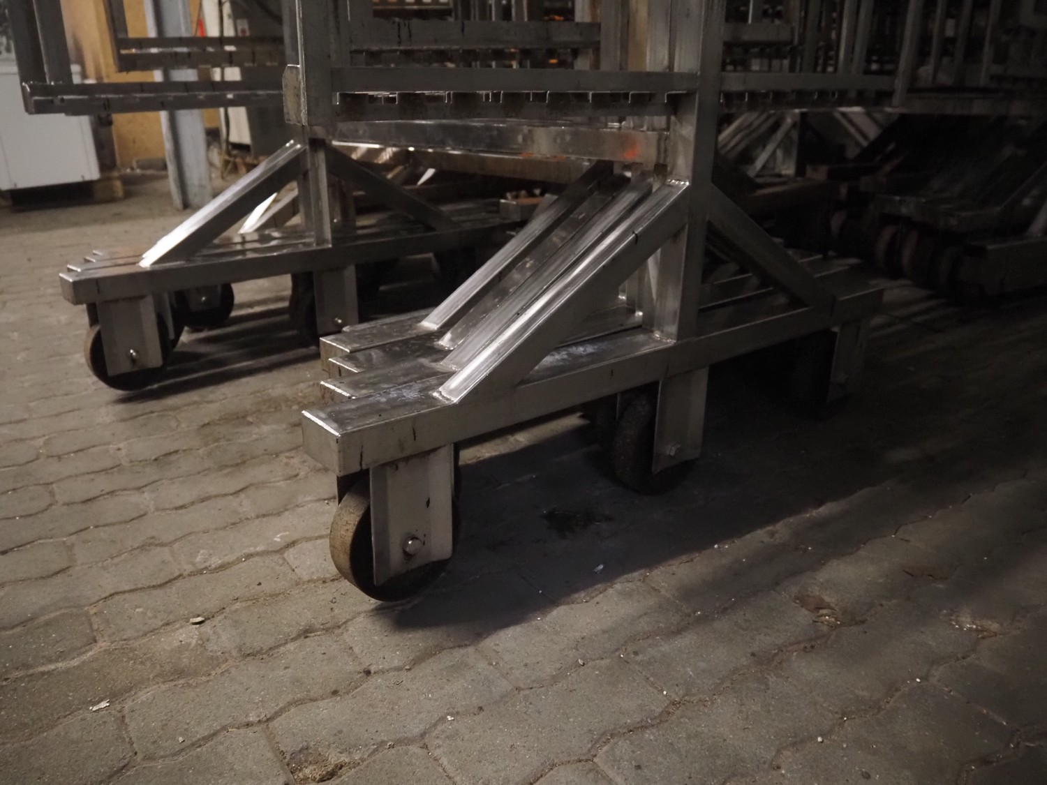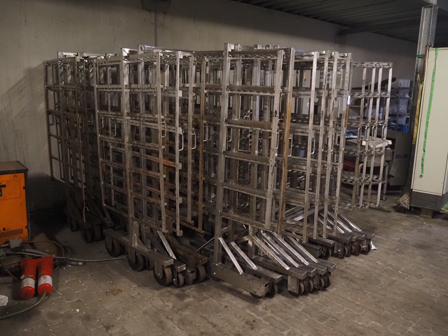 20 s/s smoke trolleys, 6 floors, total dimensions: (20x) 1030 mm x 1030 mm x 1980 mm.