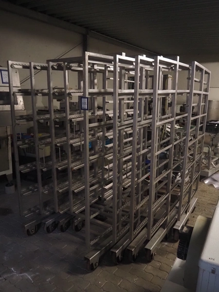 5 s/s smoke trolleys, 6 floors, total dimensions: (5x) 1030 mm x 1030 mm x 1980 mm.
