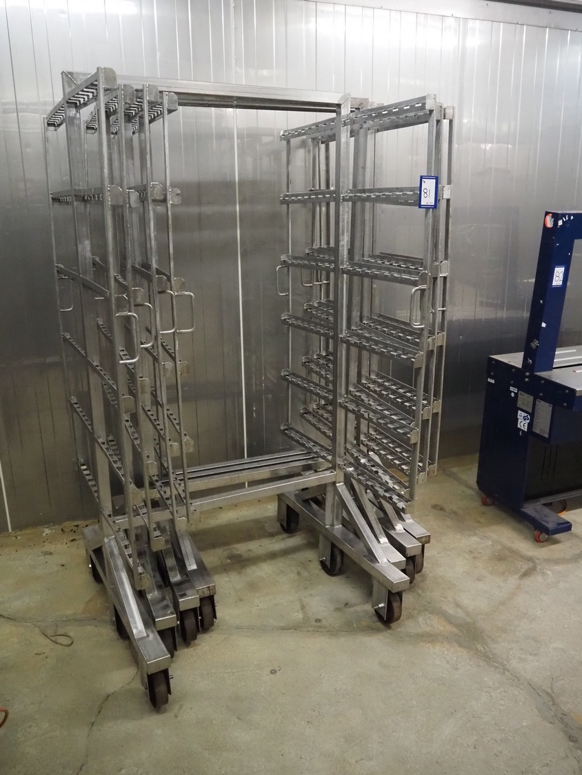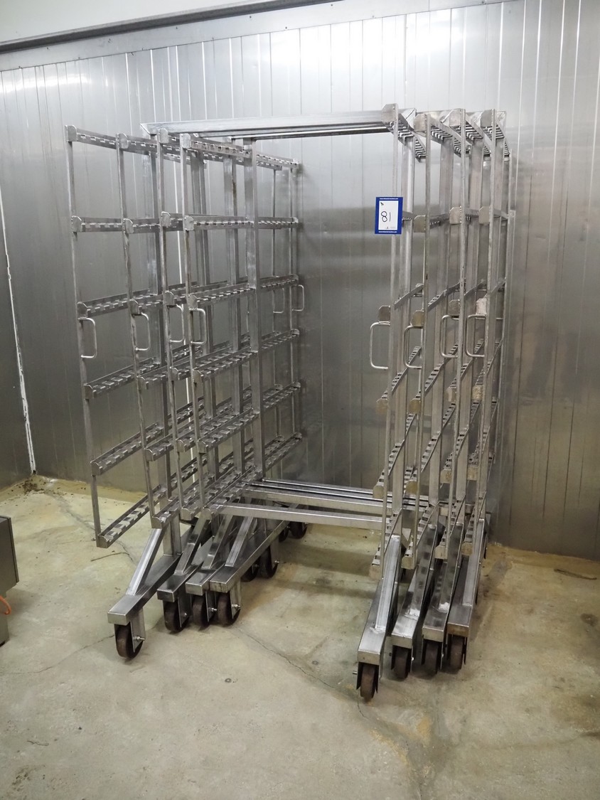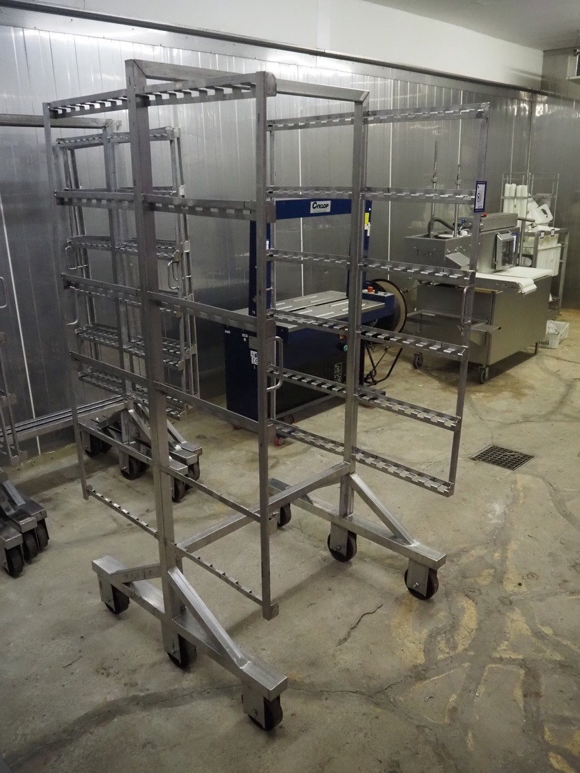 4 s/s smoke trolleys, 6 floors, total dimensions: (4x) 1030 mm x 1030 mm x 1980 mm.