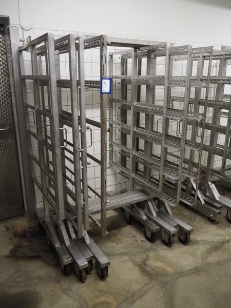 4 s/s smoke trolleys, 6 floors, total dimensions: (4x) 1030 mm x 1030 mm x 1980 mm.