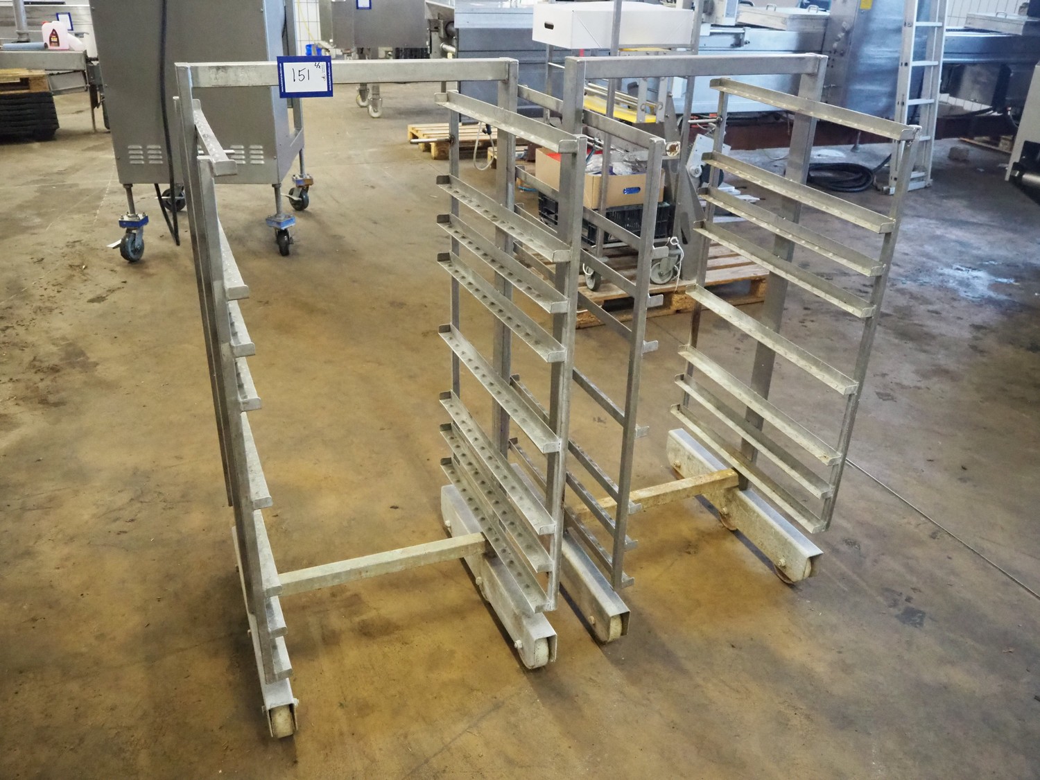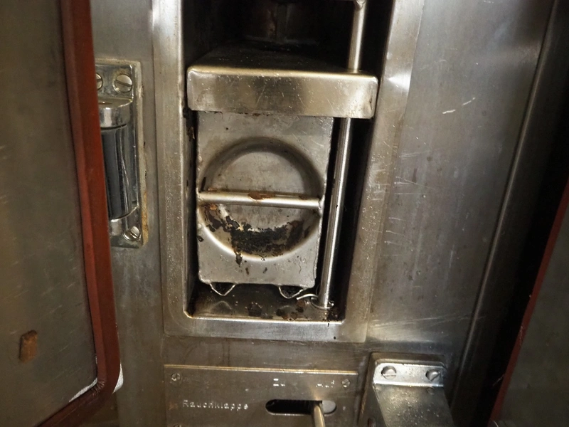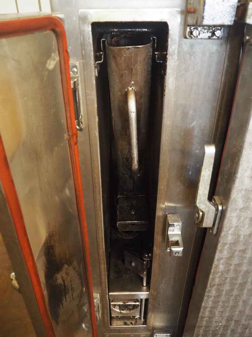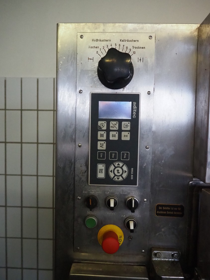 Bastramat smoking chamber, electric heated, dimensions: 1400 mm x 1000 mm x 1900 mm. Including 2 s/s smoke trolleys, dimensions: (2x) 700 mm x 650 mm x 1360 mm and crate with smoke sticks.