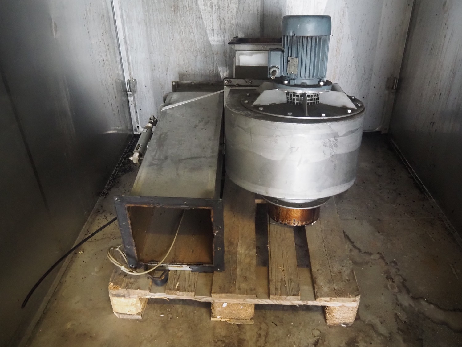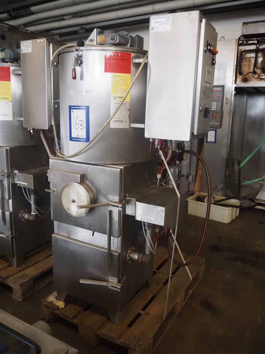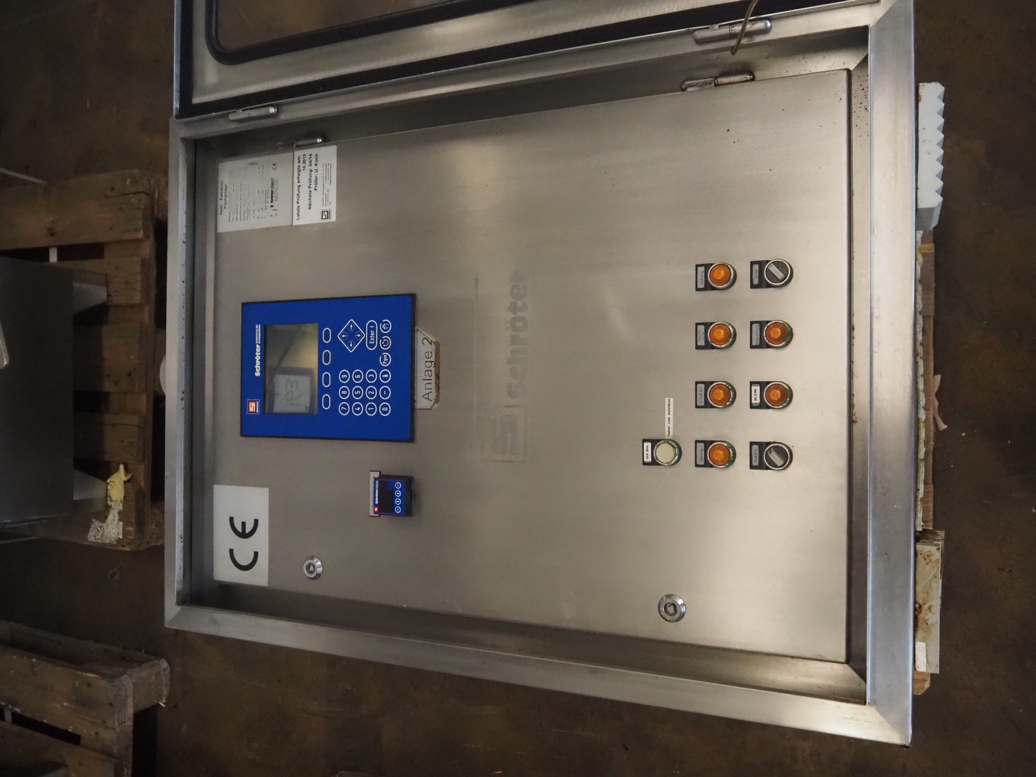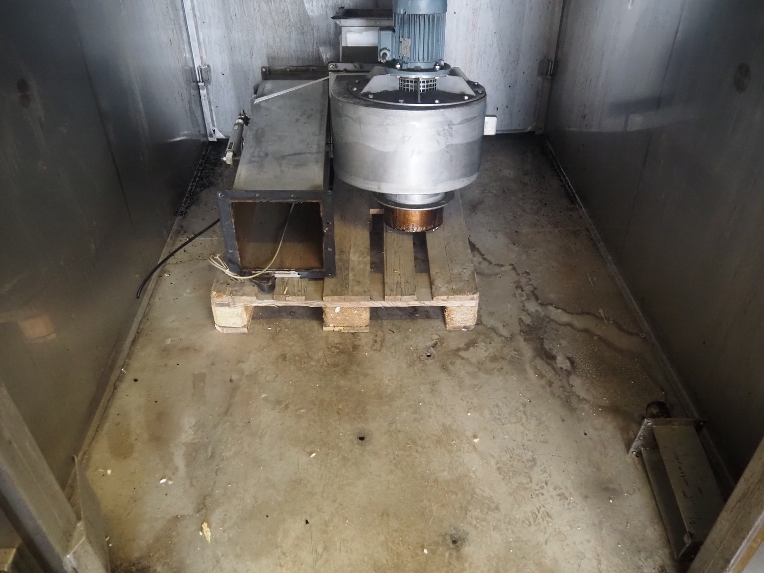 Schröter Technologie GmbH & Co. KG smoking chamber, type: HR-KR-F 2 Wg, number: 058-0300/02, year of construction: 10-2000, 230/400 V, 18.5 kW, gas heated, inside dimensions: 1600 mm x 2200 mm x 2050 mm, total dimensions: 1790 mm x 3400 mm x 2750 mm, with Schröter Technologie GmbH & Co. KG smoke generator, type: R 91, number: 0580300/02. 652/2, year of construction: 08/2000, 230/400 V, 1,5 kW, dimensions: 780 mm x 600 mm x 1750 mm. Including switch cabinet, dimensions: 750 mm x 1000 mm x 380 mm.