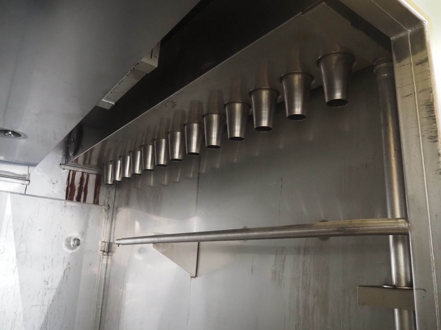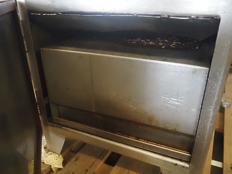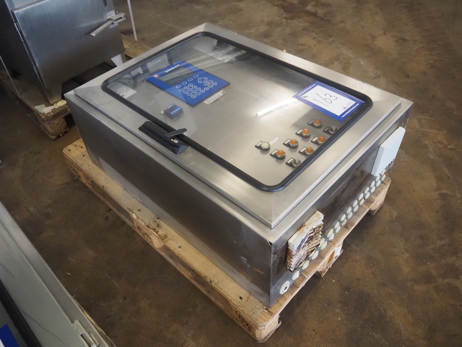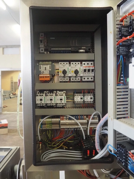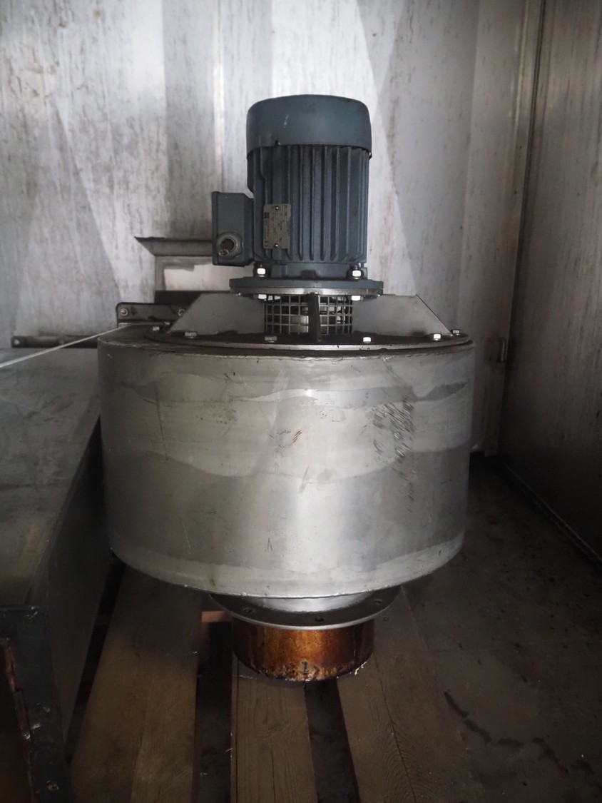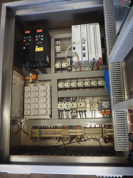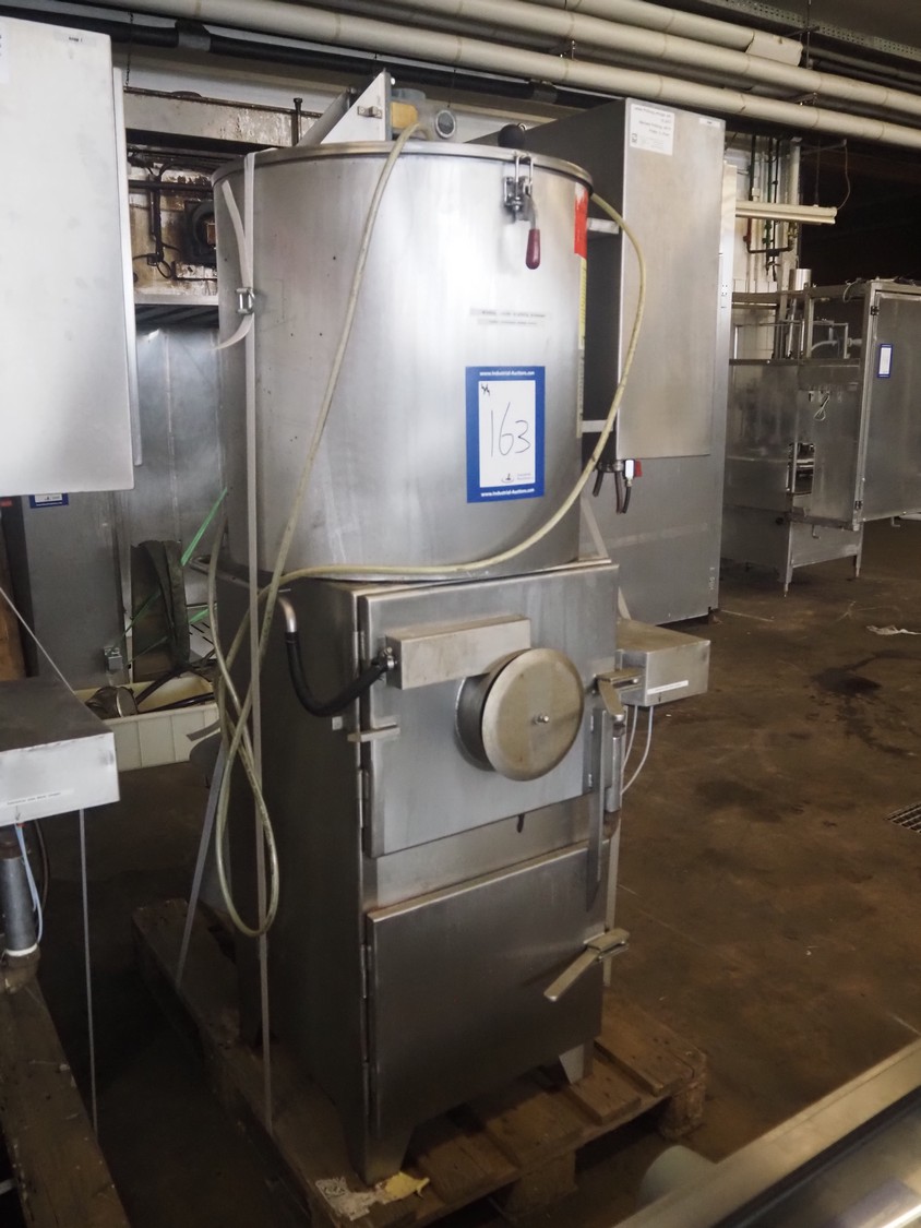 Schröter Technologie GmbH & Co. KG smoking chamber, type: HR-KR-F 2 Wg, number: 058-0300/02, year of construction: 10-2000, 230/400 V, 18.5 kW, gas heated, inside dimensions: 1600 mm x 2200 mm x 2050 mm, total dimensions: 1790 mm x 3400 mm x 2750 mm, with Schröter Technologie GmbH & Co. KG smoke generator, type: R 91, number: 0580300/02. 652/2, year of construction: 08/2000, 230/400 V, 1,5 kW, dimensions: 780 mm x 600 mm x 1750 mm. Including switch cabinet, dimensions: 750 mm x 1000 mm x 380 mm.