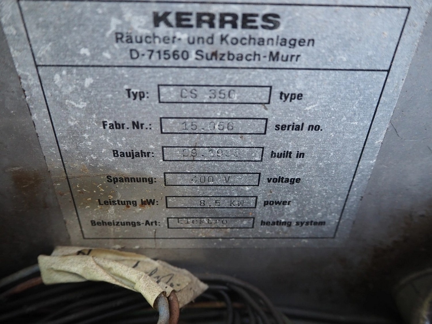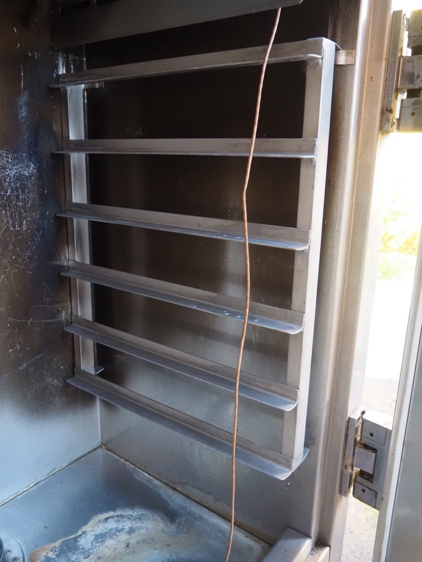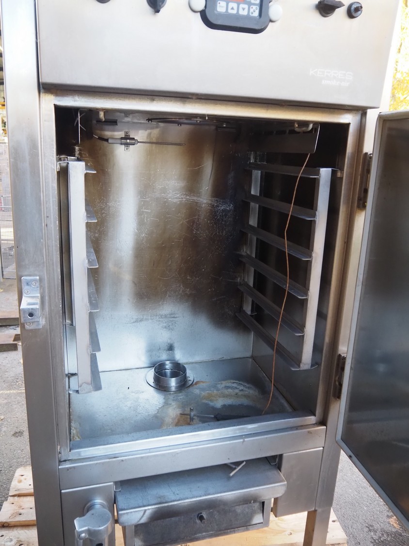 Kerres drying- smoking- and cooking chamber, type: CS 350, serial number: 15.056, year of construction: 09-1985, on sawdust or liquid smoke, 6 floors, dimensions floor: (6x) 540 mm x 445 mm, total dimensions: 830 mm x 680 mm x 1750 mm.