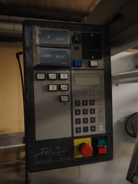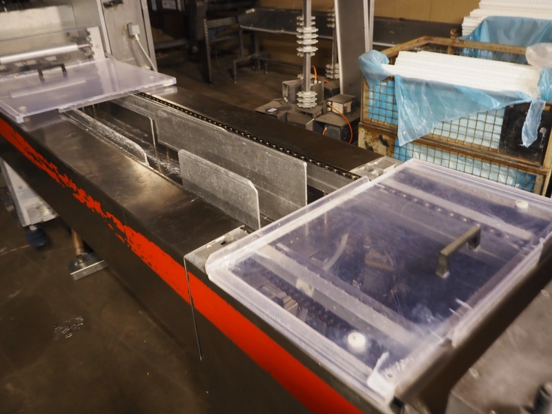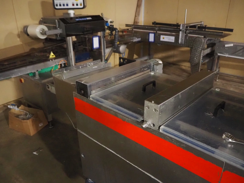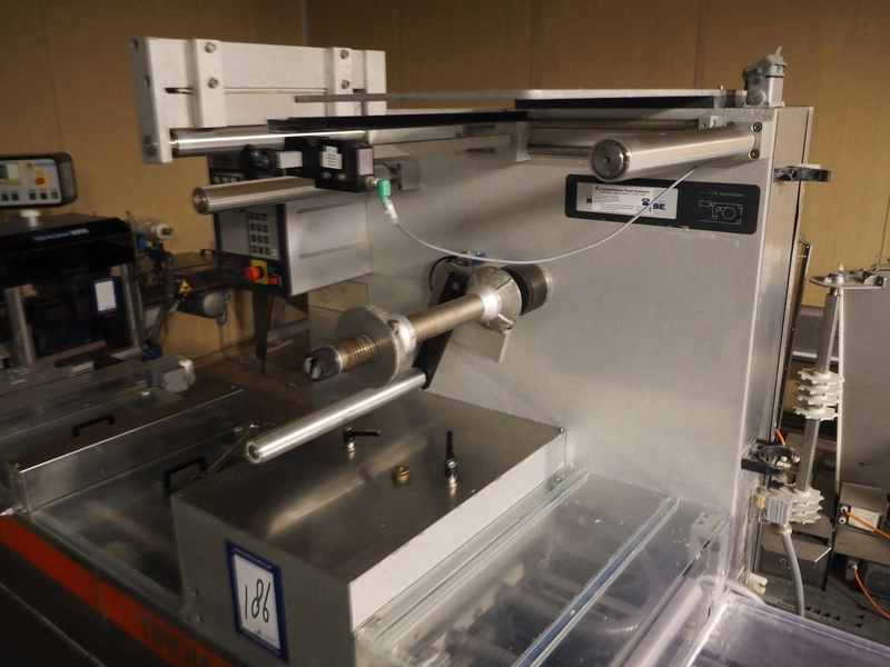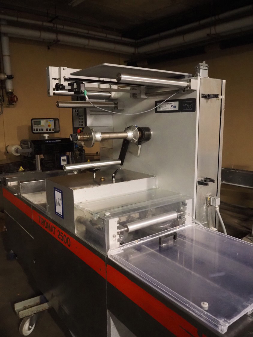 Krämer + Grebe thermoformer, type: 2500, machine number: 656/104, year of construction: 1992, 380 V, 3 Ph, 50 Hz, 20 A, dimensions dye: 195 mm x 150 mm, total dimensions: 6400 mm x 980 mm x 1980 mm. Without rollies.