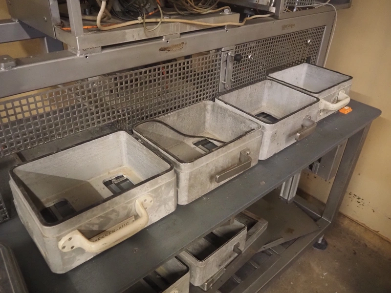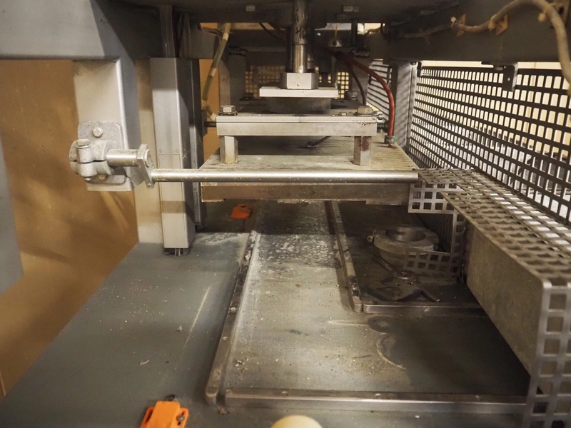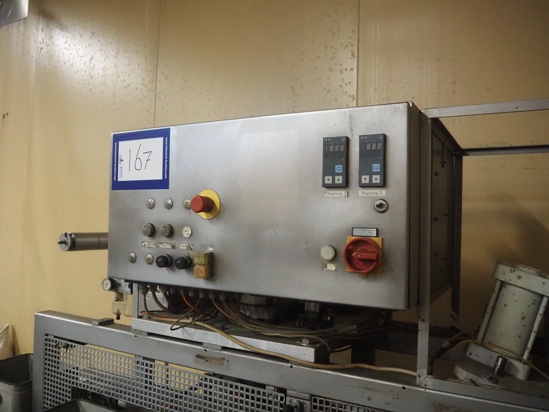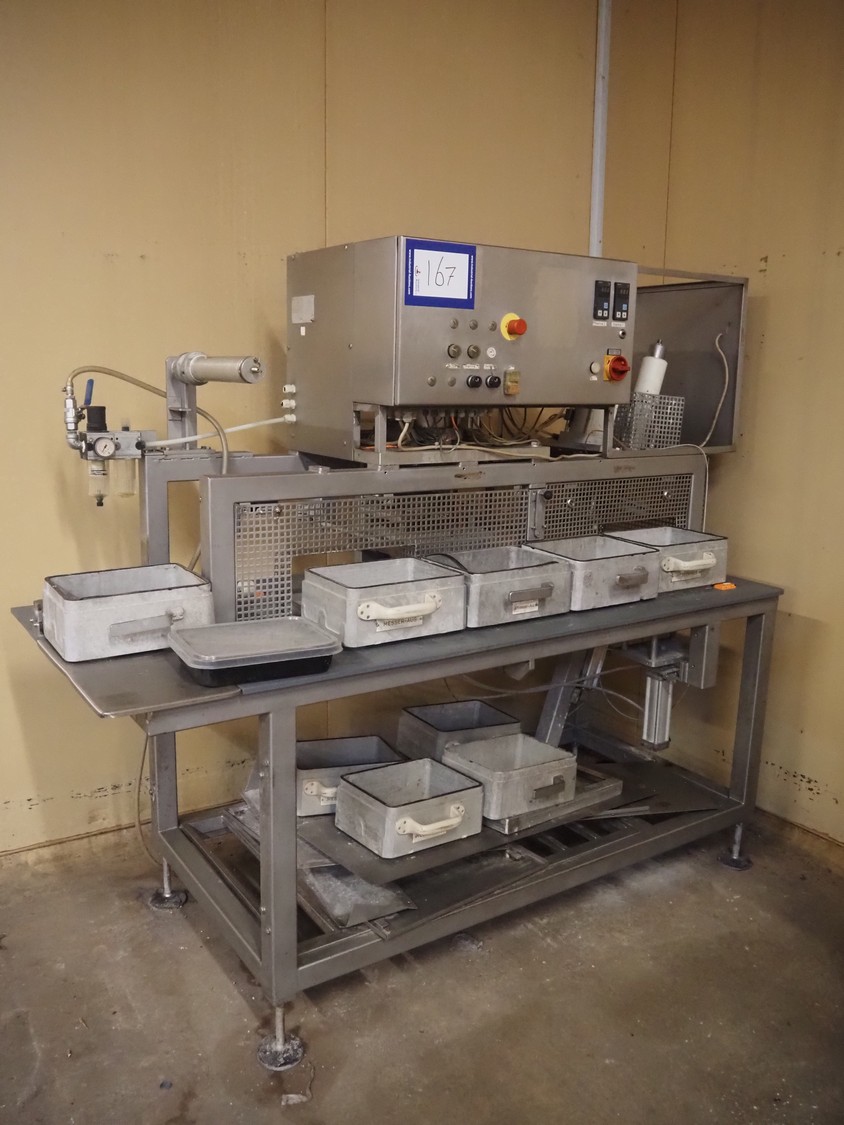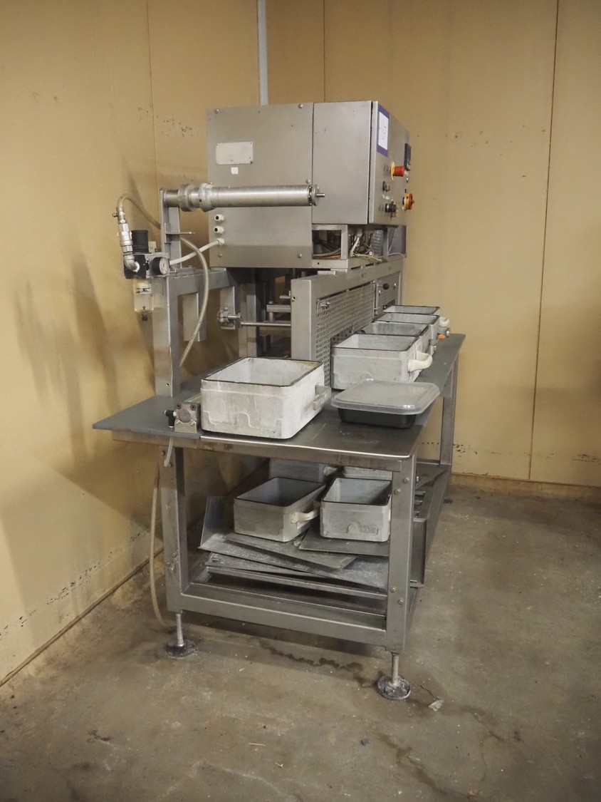 PS SystemPack GmbH traysealer, type: 830A, serial number: 5905053, year of construction: 1995, 400 V, 3 Ph, dyes: (2x) 100 mm x 290 mm and (1x) 290 mm x 215 mm, total dimensions: 2200 mm x 950 mm x 1800 mm. Technical condition unknown.