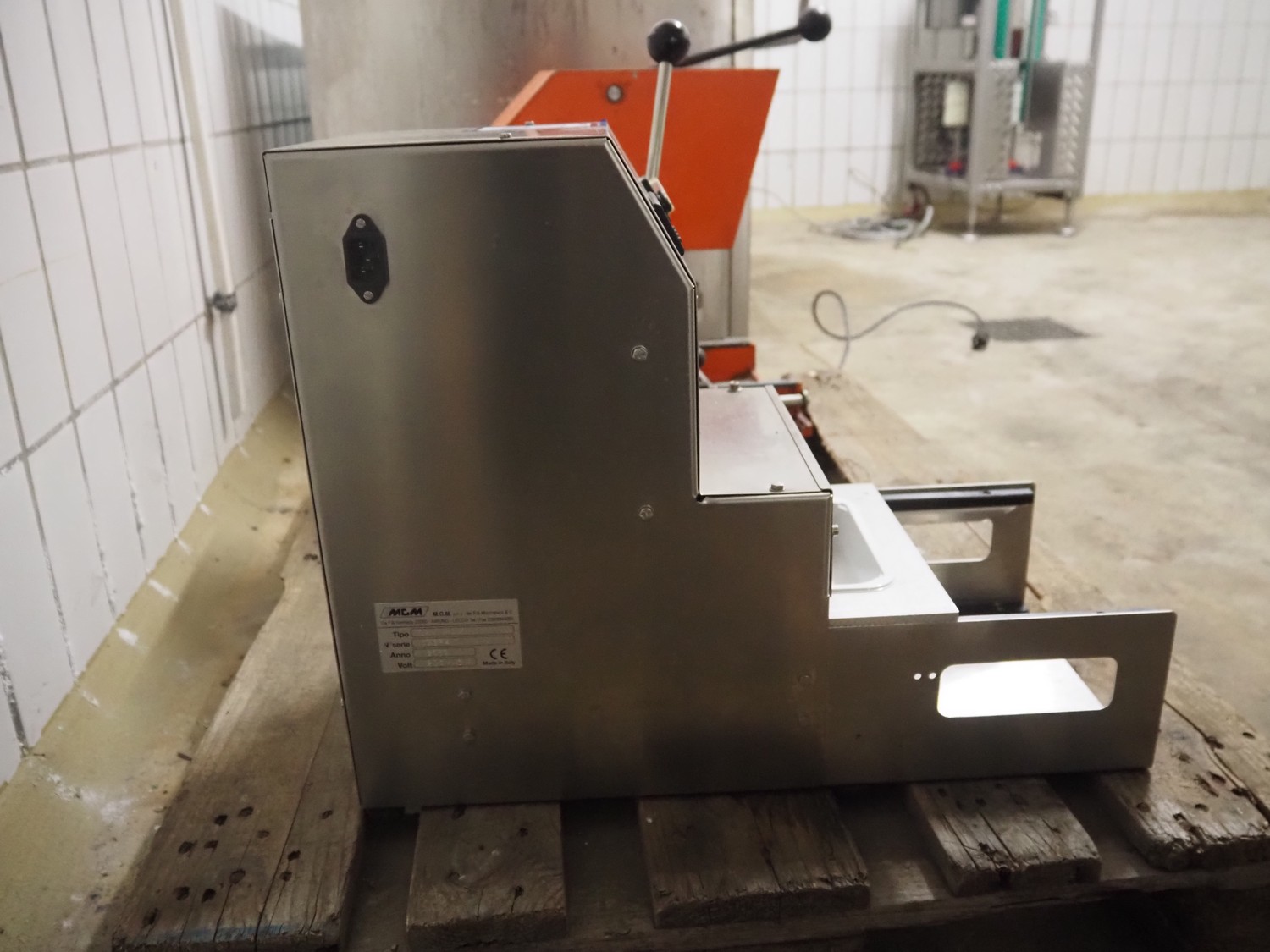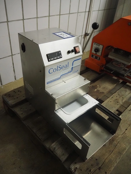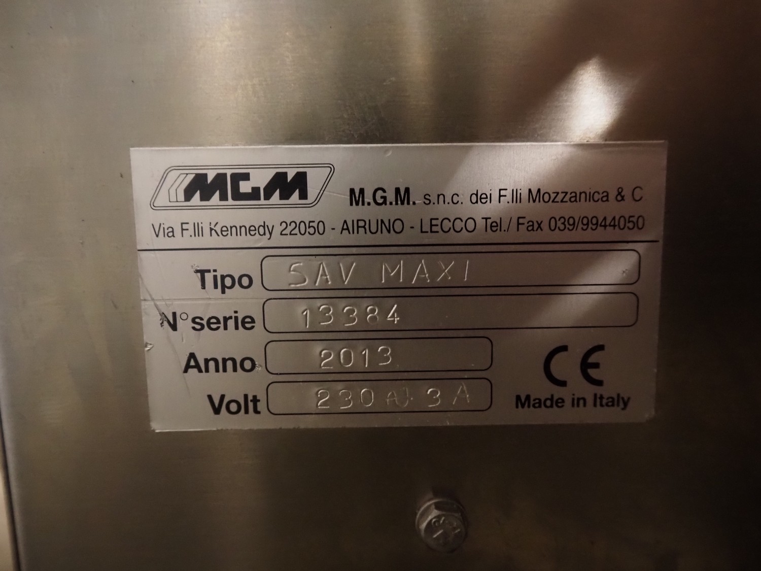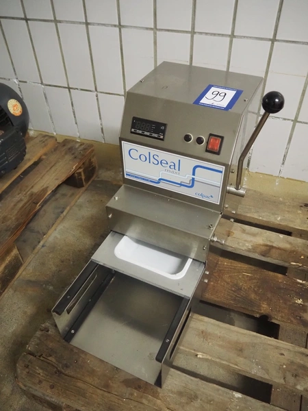 MGM traysealer, type: SAV MAXI, serial number: 13384, year of construction: 2013, 230 V, 3 A, dye: 215 mm x 165 mm, total dimensions: 350 mm x 550 mm x 510 mm.
