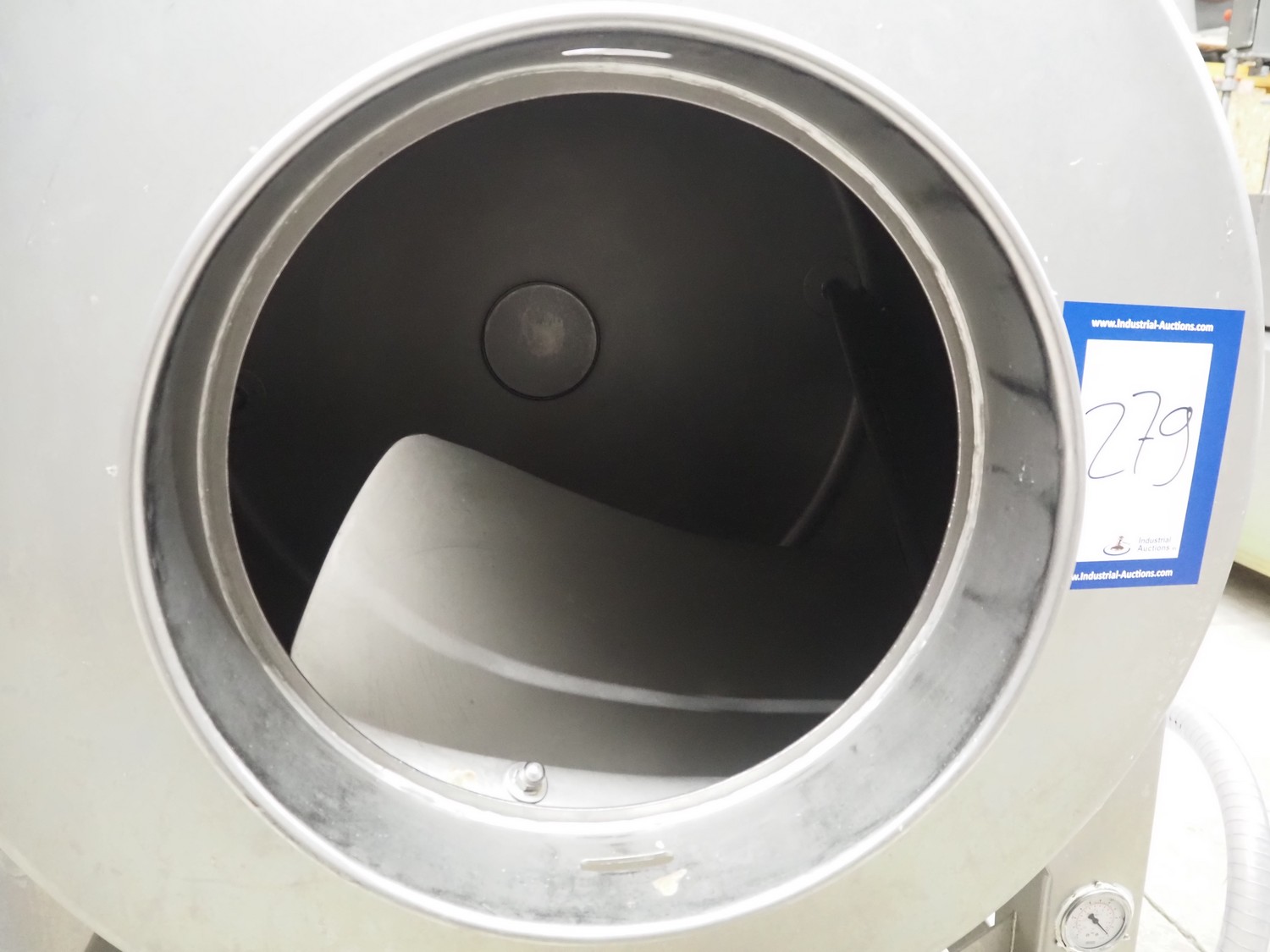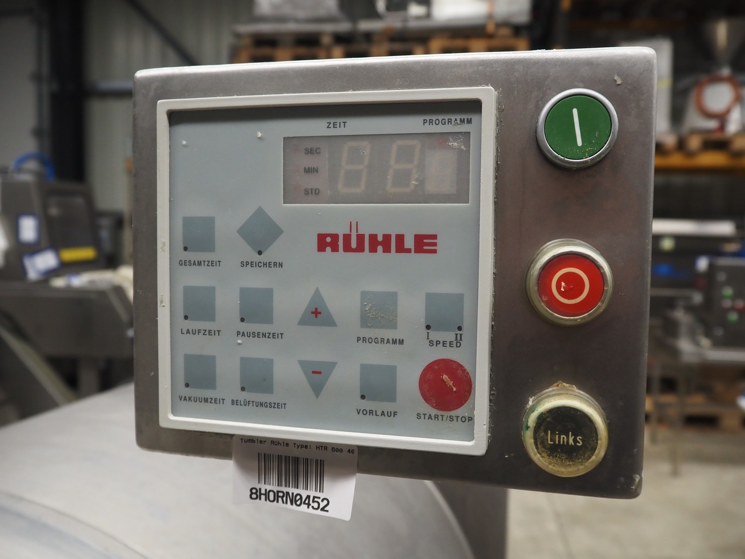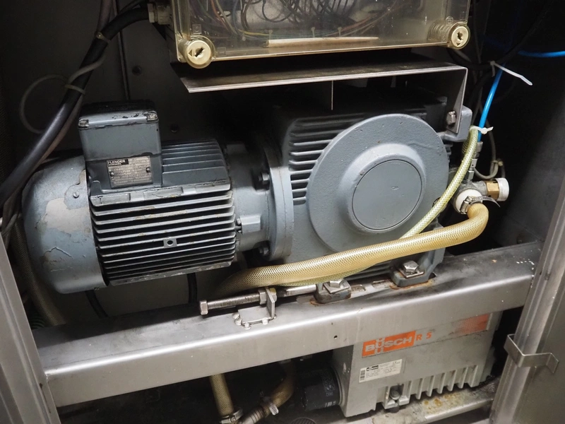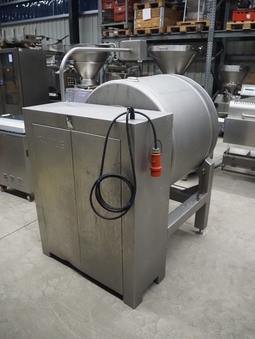 Rühle vacuum tumbler, type: HTR 600, number: 0119 G, year of construction: 2008, 400 V, 3 Ph, 50 Hz, 16 A, 2.2 kW, Busch vacuum pump, type: RA 0025 F 5030, serial number: D15350251, year of construction: 2015, capacity: 25 m³/per hour, dimensions: 1000 mm x 1400 mm x 1780 mm.