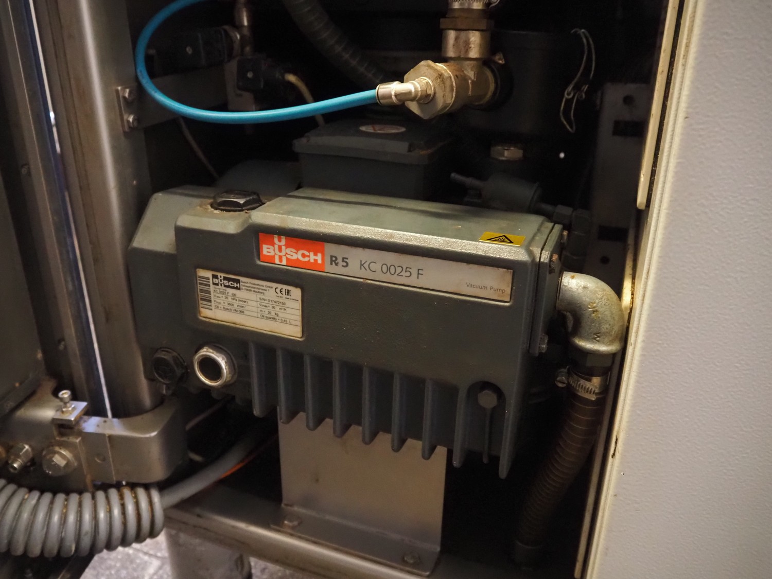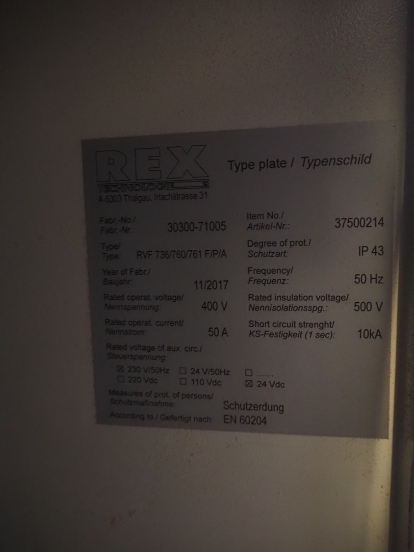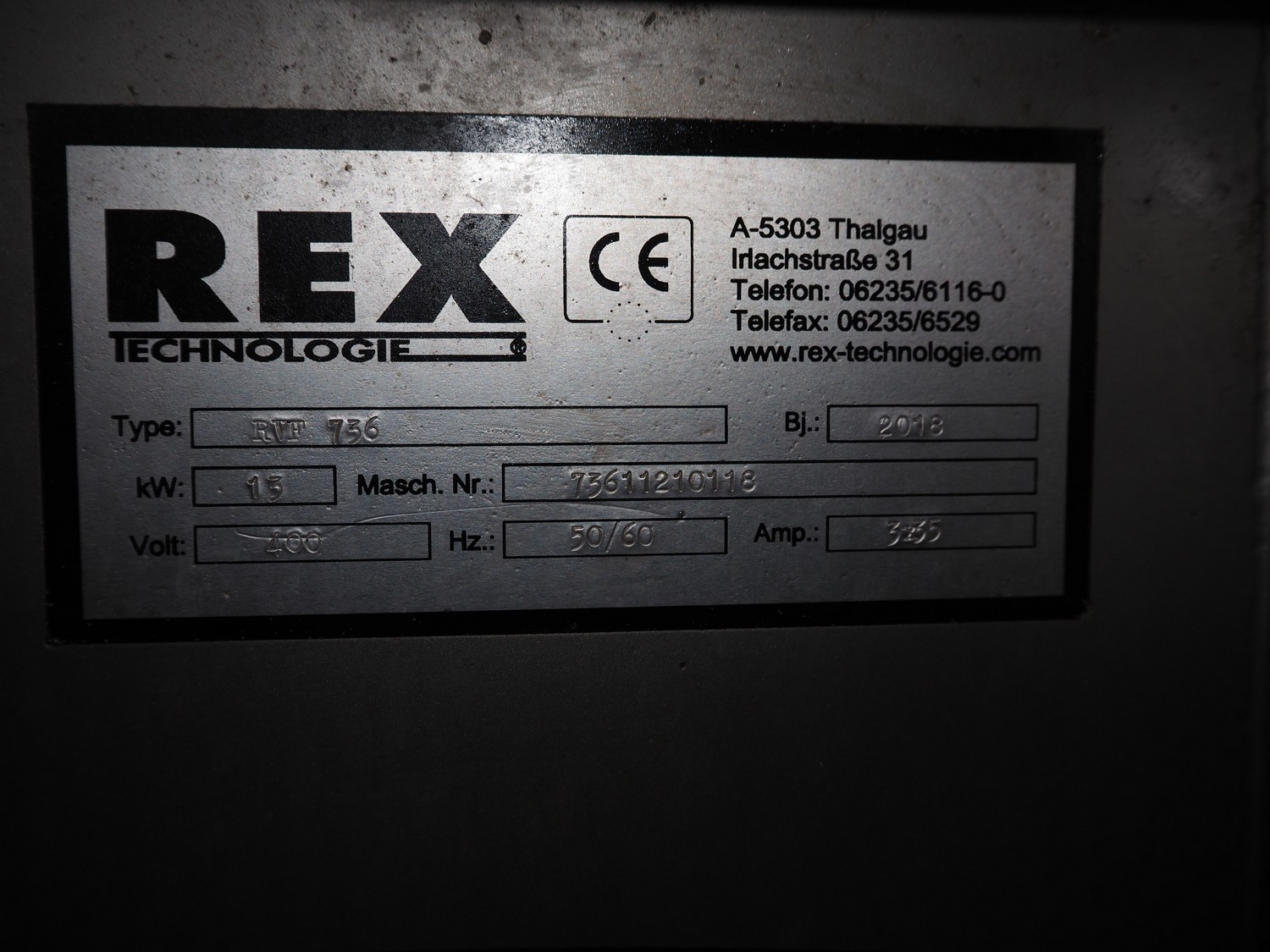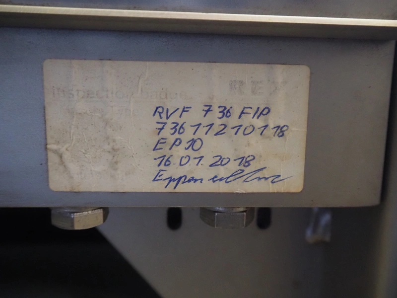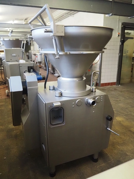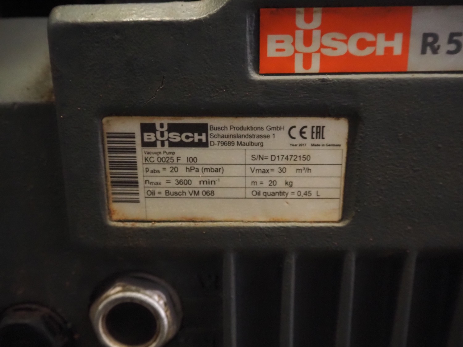 Rex Technologie vacuum filling machine with lifter for 200 liter meat bins, type: RVF 736, machine number: 73611210116, year of construction: 2018, 400 V, 3 Ph, 50/60 Hz, 35 A, 13 kW, Busch vacuum pump, type: KC 0025 F 100, serial number: D17472150, capacity: 30 m³/per hour, dimensions: 1770 mm x 1380 mm x 2060 mm.