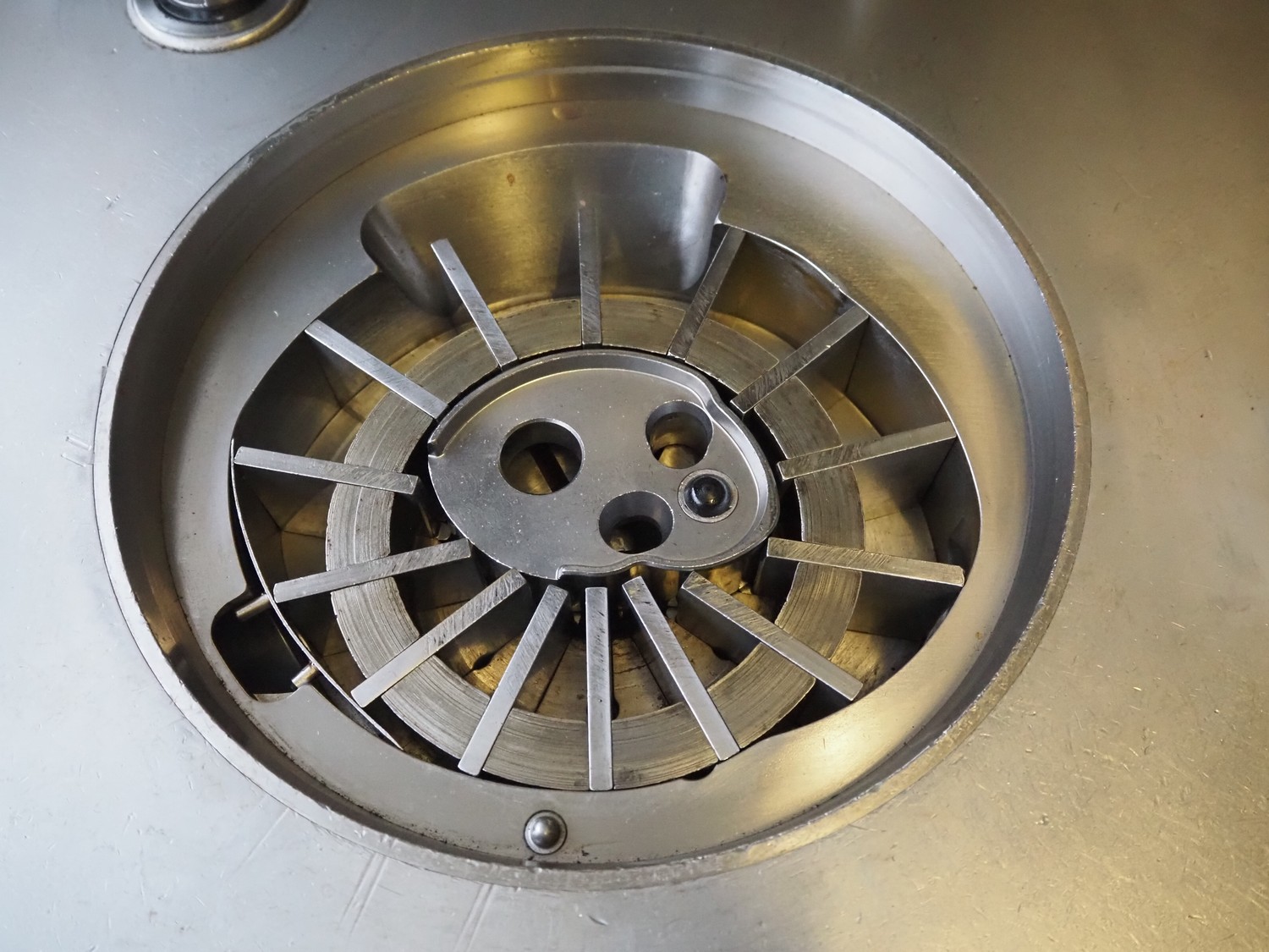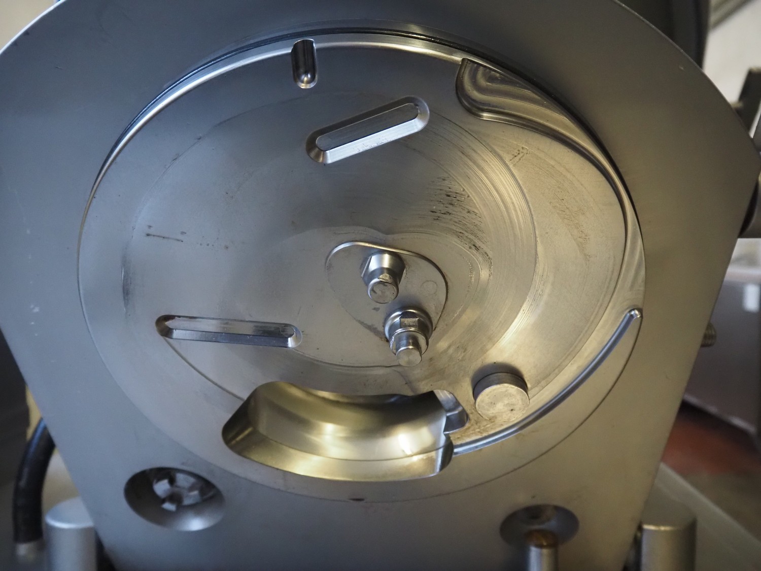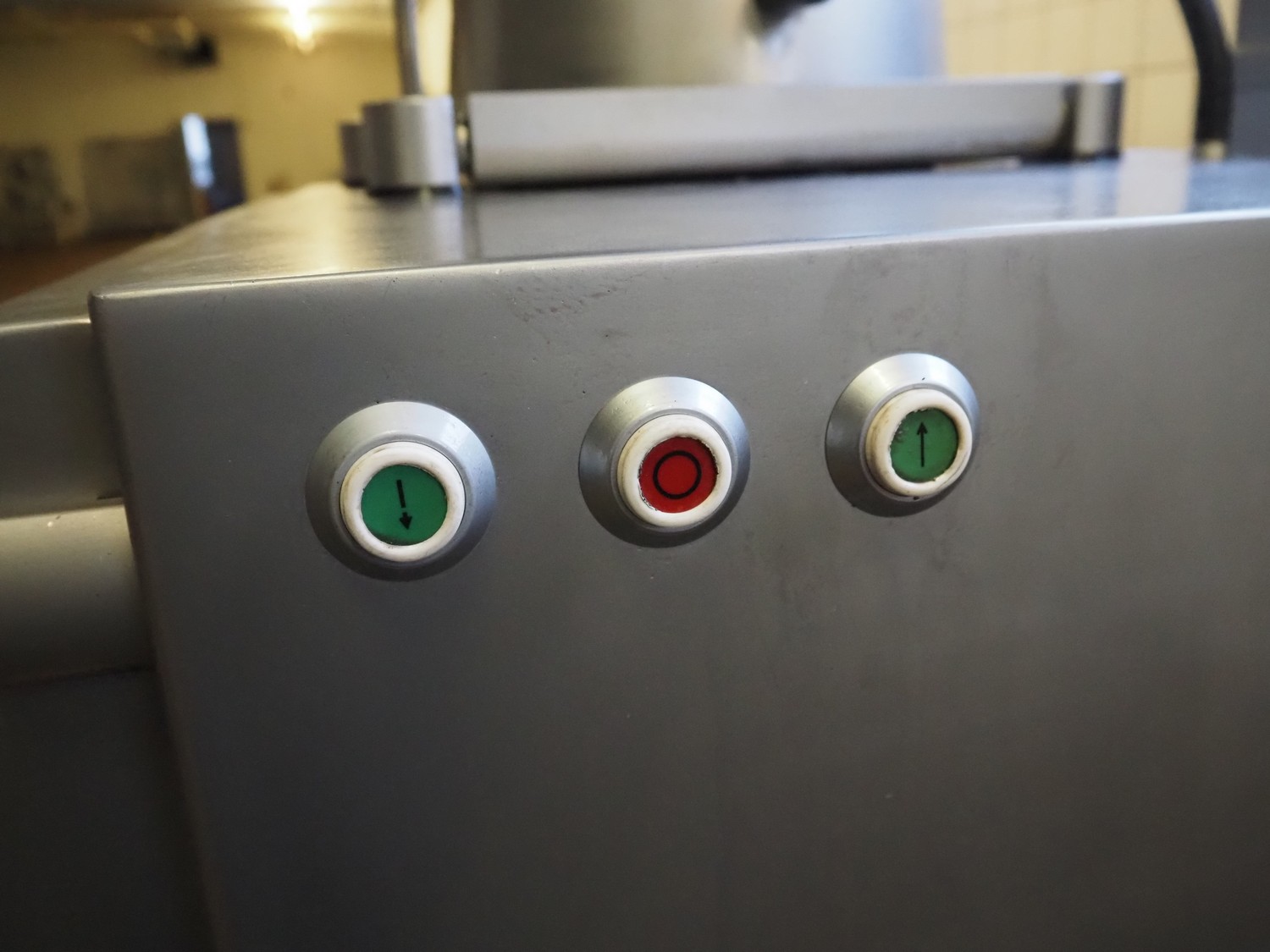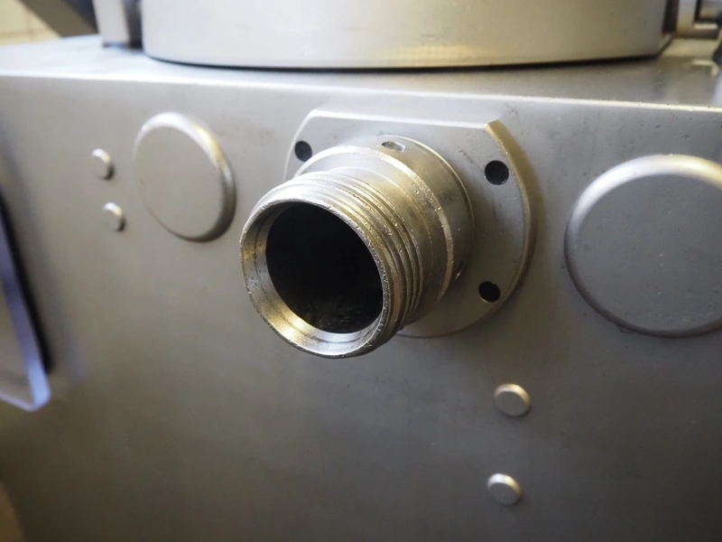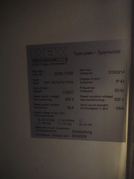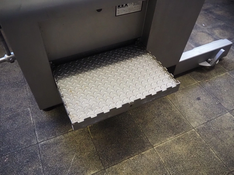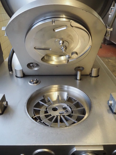 Rex Technologie vacuum filling machine with lifter for 200 liter meat bins, type: RVF 736, machine number: 73611210116, year of construction: 2018, 400 V, 3 Ph, 50/60 Hz, 35 A, 13 kW, Busch vacuum pump, type: KC 0025 F 100, serial number: D17472150, capacity: 30 m³/per hour, dimensions: 1770 mm x 1380 mm x 2060 mm.