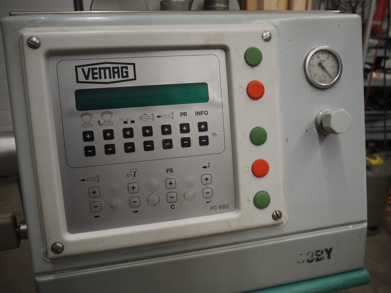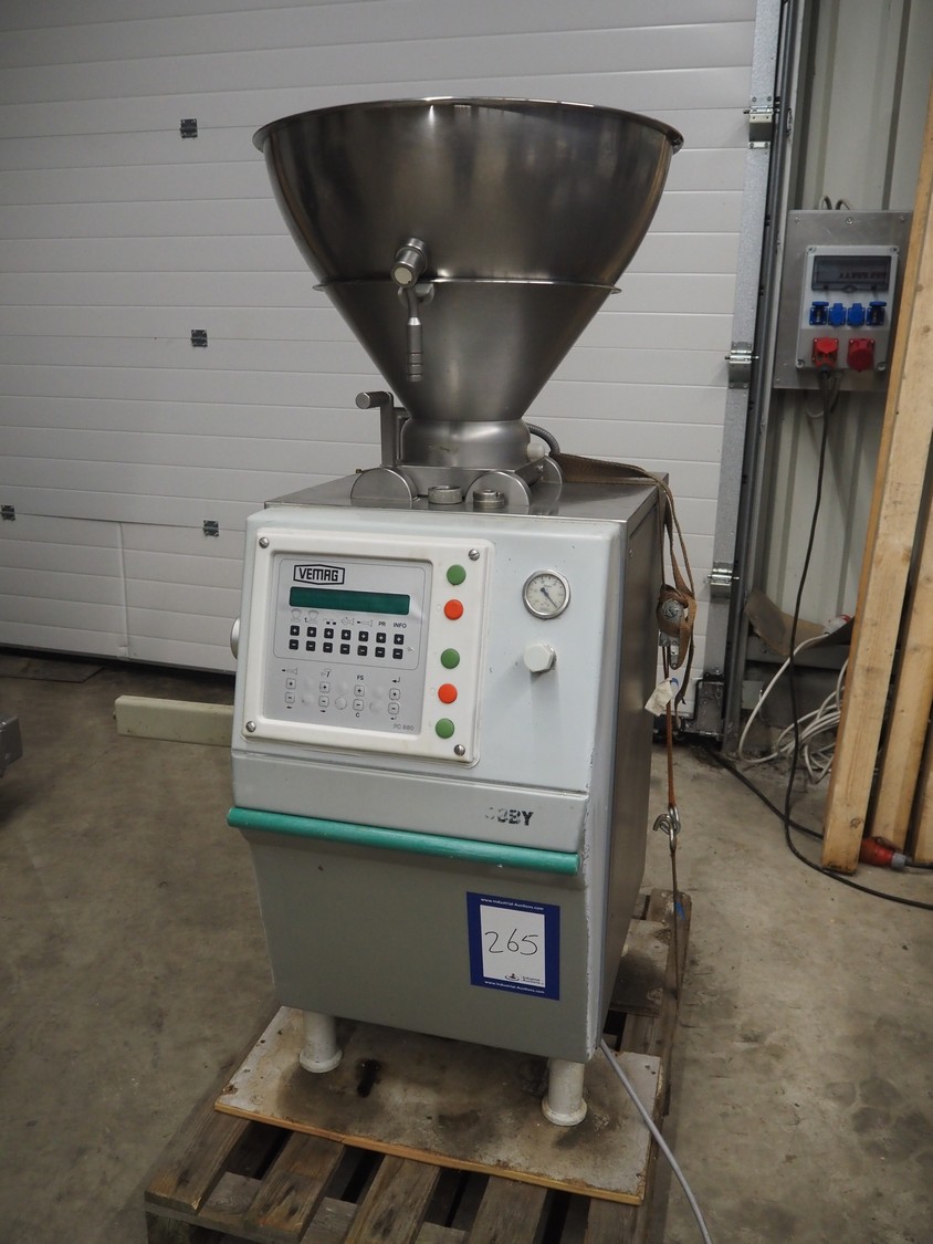 Vemag vacuum filling machine, model: ROBBY, type: 134, number: 134.0339, year of construction: 1994, 220-460 V, 3 Ph, 50/60 Hz, 9.7-25 A, dimensions: 900 mm x 860 mm x 1620 mm.