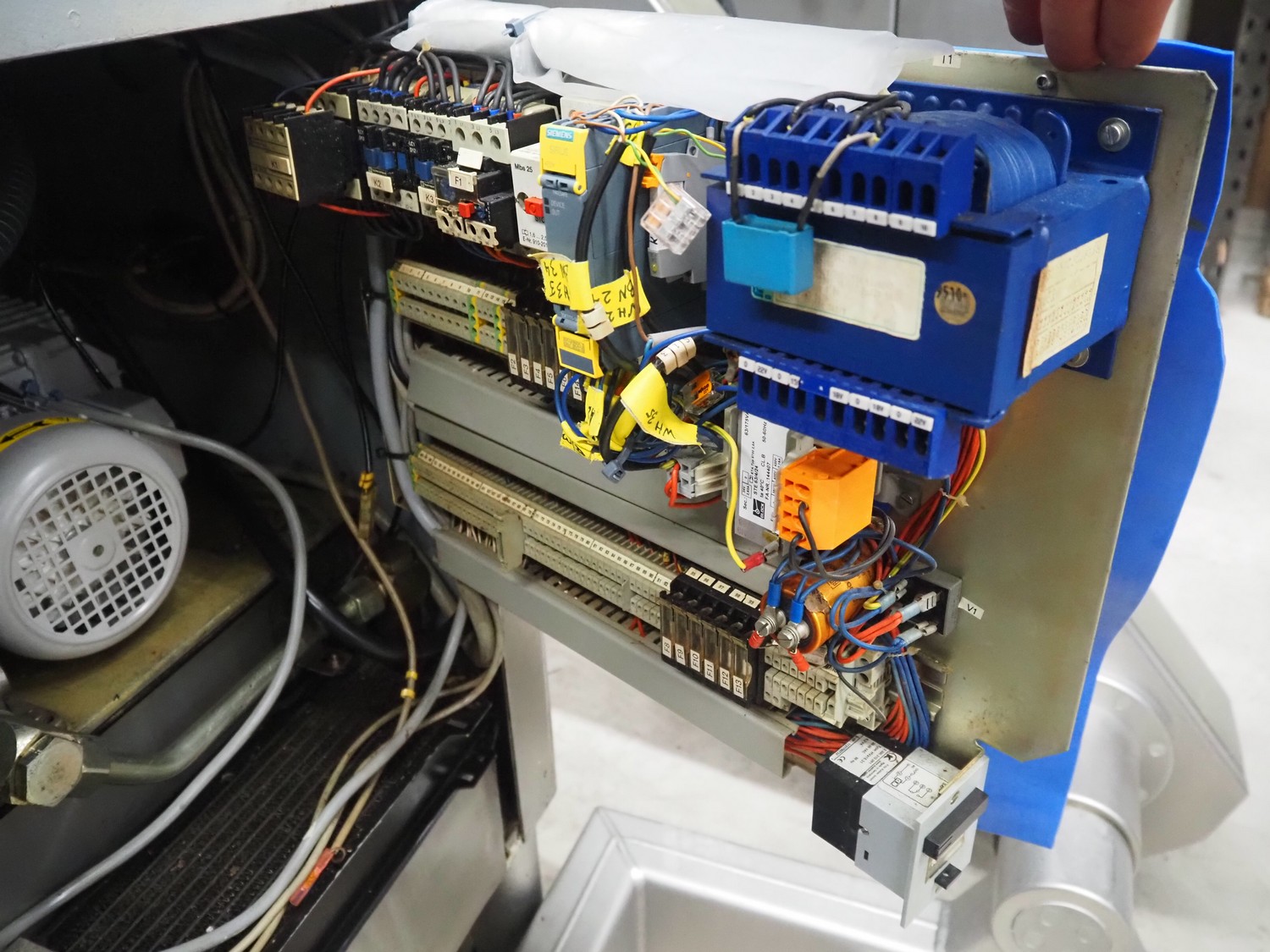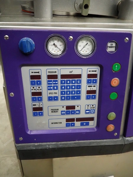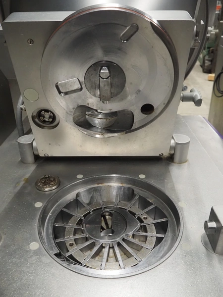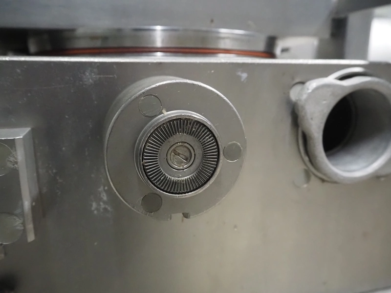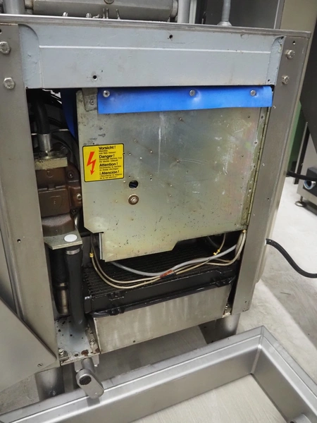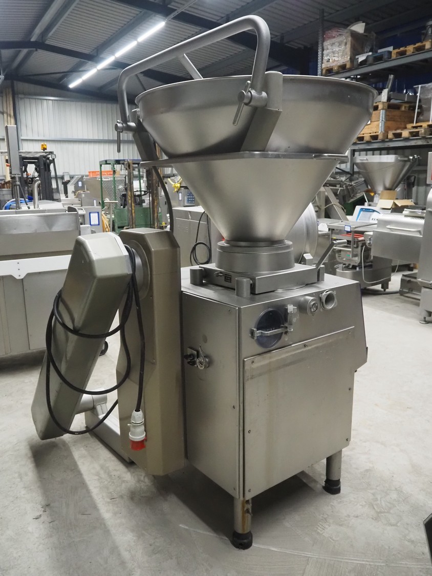 Handtmann vacuum filling machine with lifter for 200 liter meat bins, type: VF200B, number: 3331, 400 V, 50 Hz, 17 A, 6.5 kW, dimensions: 1480 mm x 1200 mm x 2080 mm.