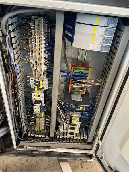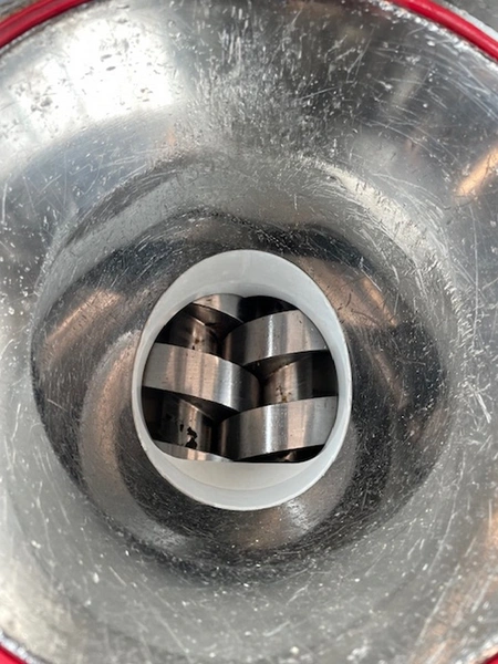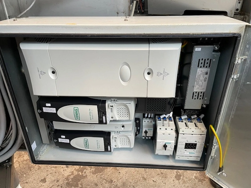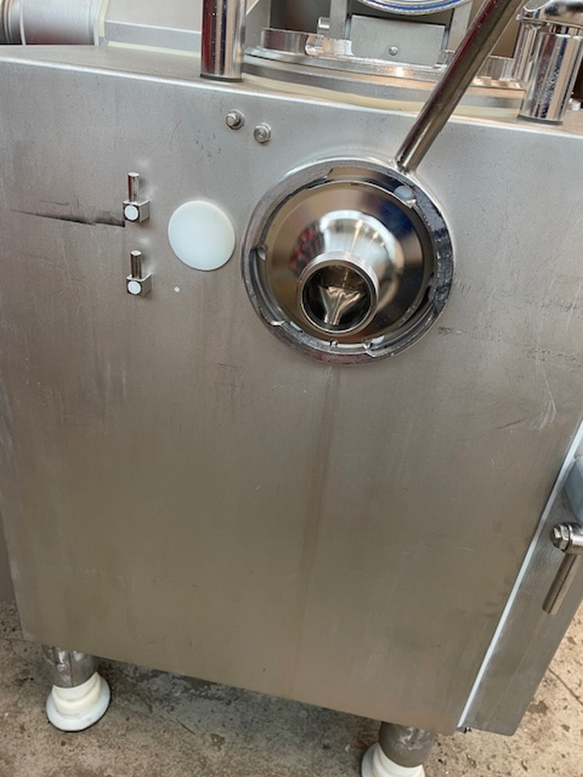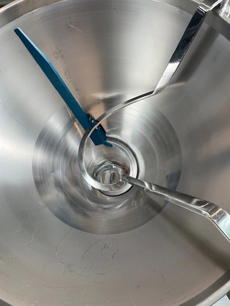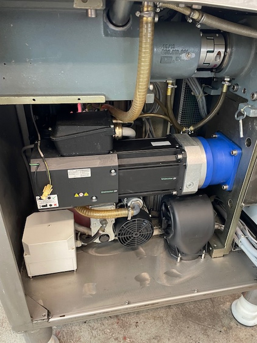 Vemag Maschinenbau GmbH vacuum filling machine with lifter for 200 liter meat bins, model: HP30E, number: 1660379, year of construction: 2014, 400-460 V, 3 Ph, 50/60 Hz, 50 A, 34 kW, dimensions: 2300 mm x 1500 mm x 2200 mm.