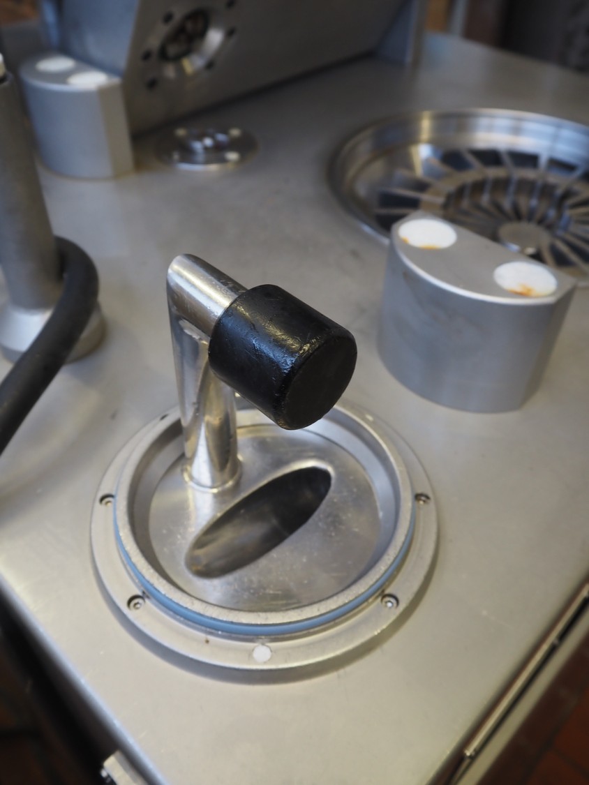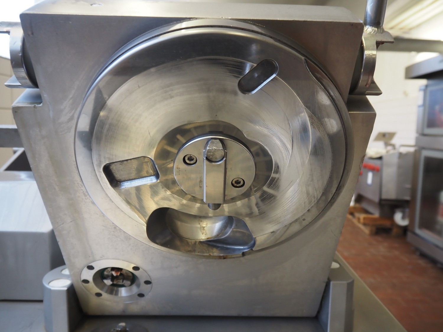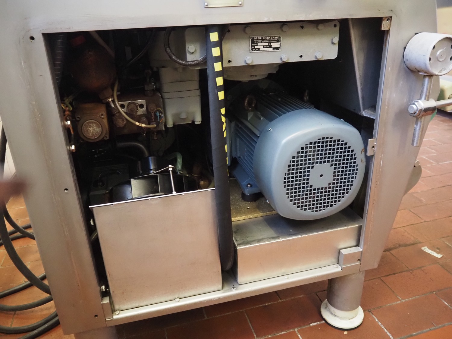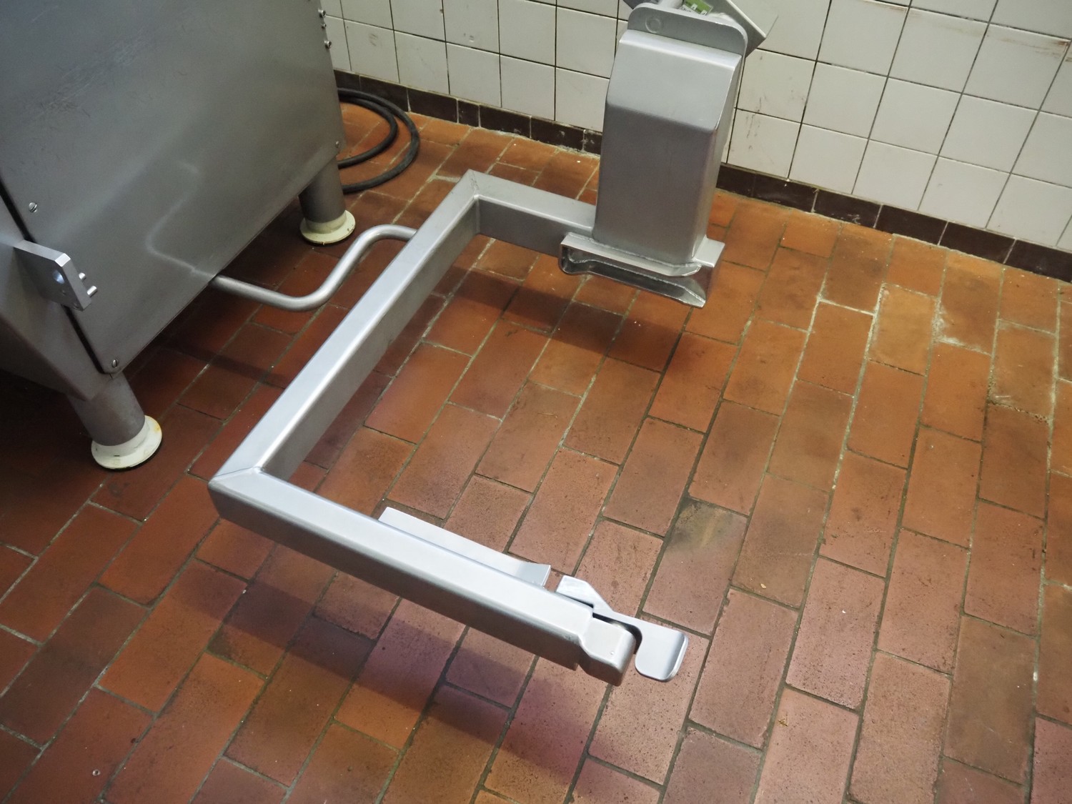 Vemag vacuum filling machine with lifter for 200 liter meat bins, model: ROBOT DP 10 C, number: 1530273, year of construction: 1998, Busch vacuum pump, type: KC 0016, serial number: CZM125030507, capacity: 19 m³/per hour, dimensions: 2150 mm x 1350 mm x 1960 mm.