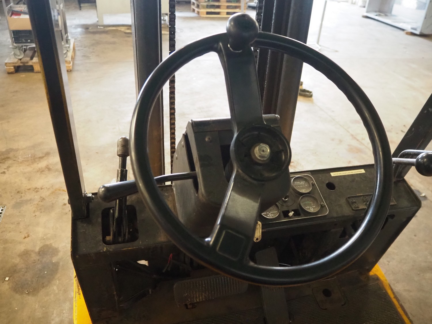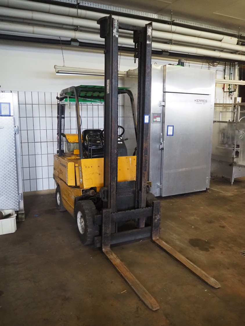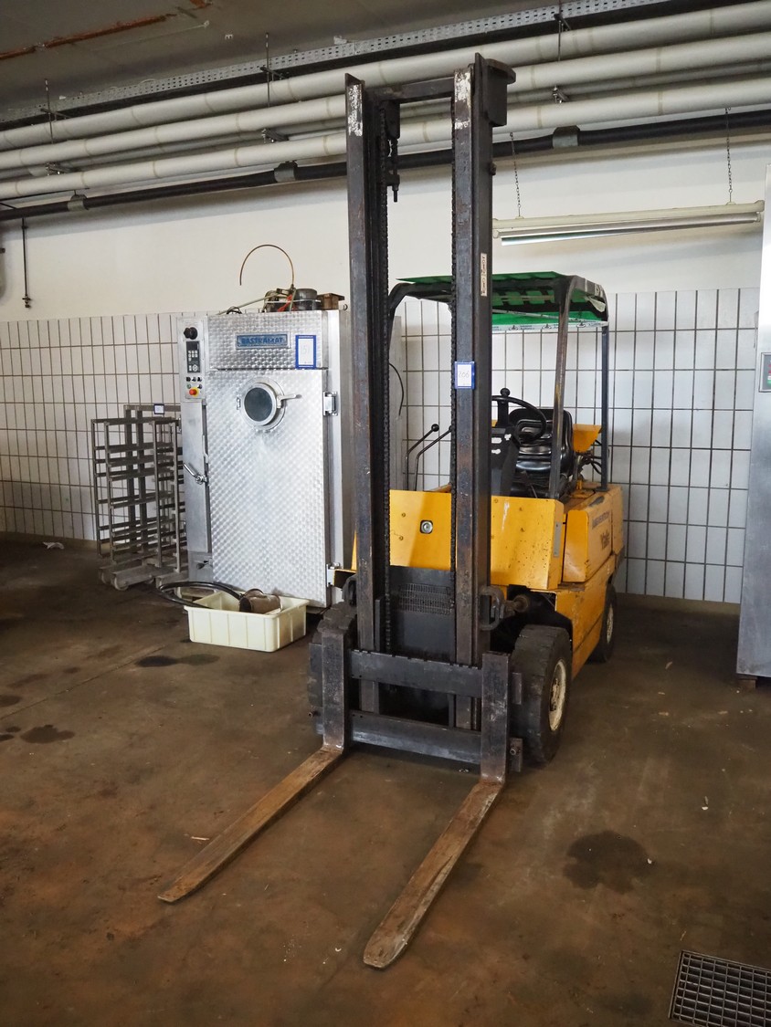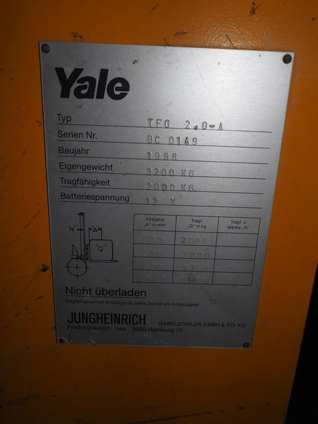 Jungheinrich gas forklift, type: TFG 2,0-A, serial number: BC 0149, year of construction: 1988, weight: 3200 kg, capacity: 2000 kg, fork length: 1100 mm, total dimensions: 3300 mm x 1000 mm x 2700 mm. Technical condition unknown.