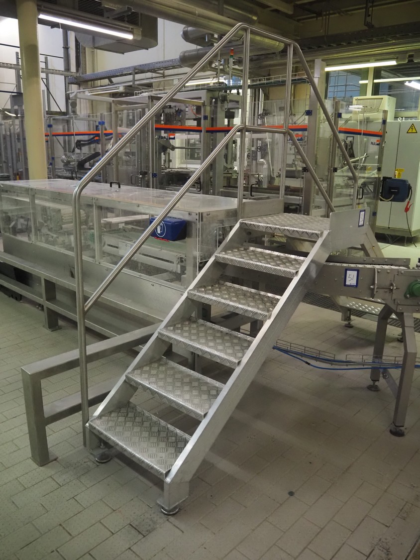 S/s working platform with stairs, working height: 1100 mm, total dimensions: 2800 mm x 650 mm x 2200 mm.