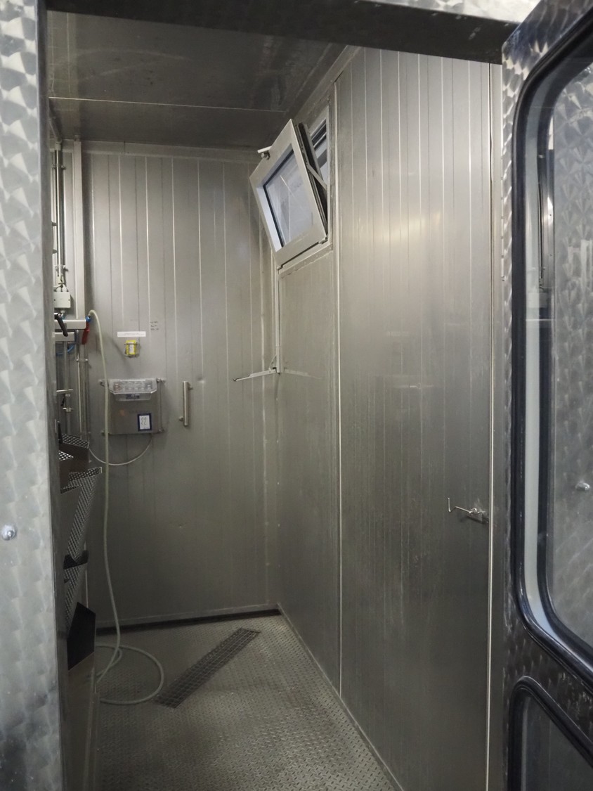 Office unit on s/s frame, dimensions: 3500 mm x 3100 mm x 5500 mm.