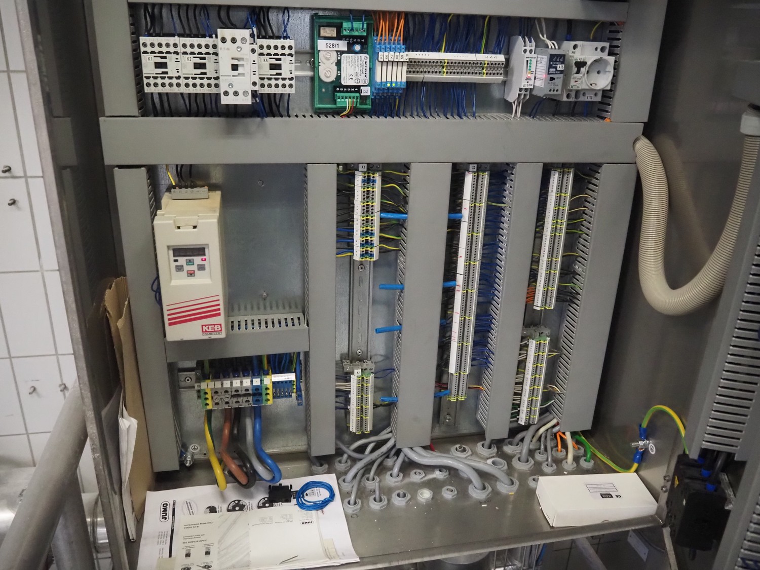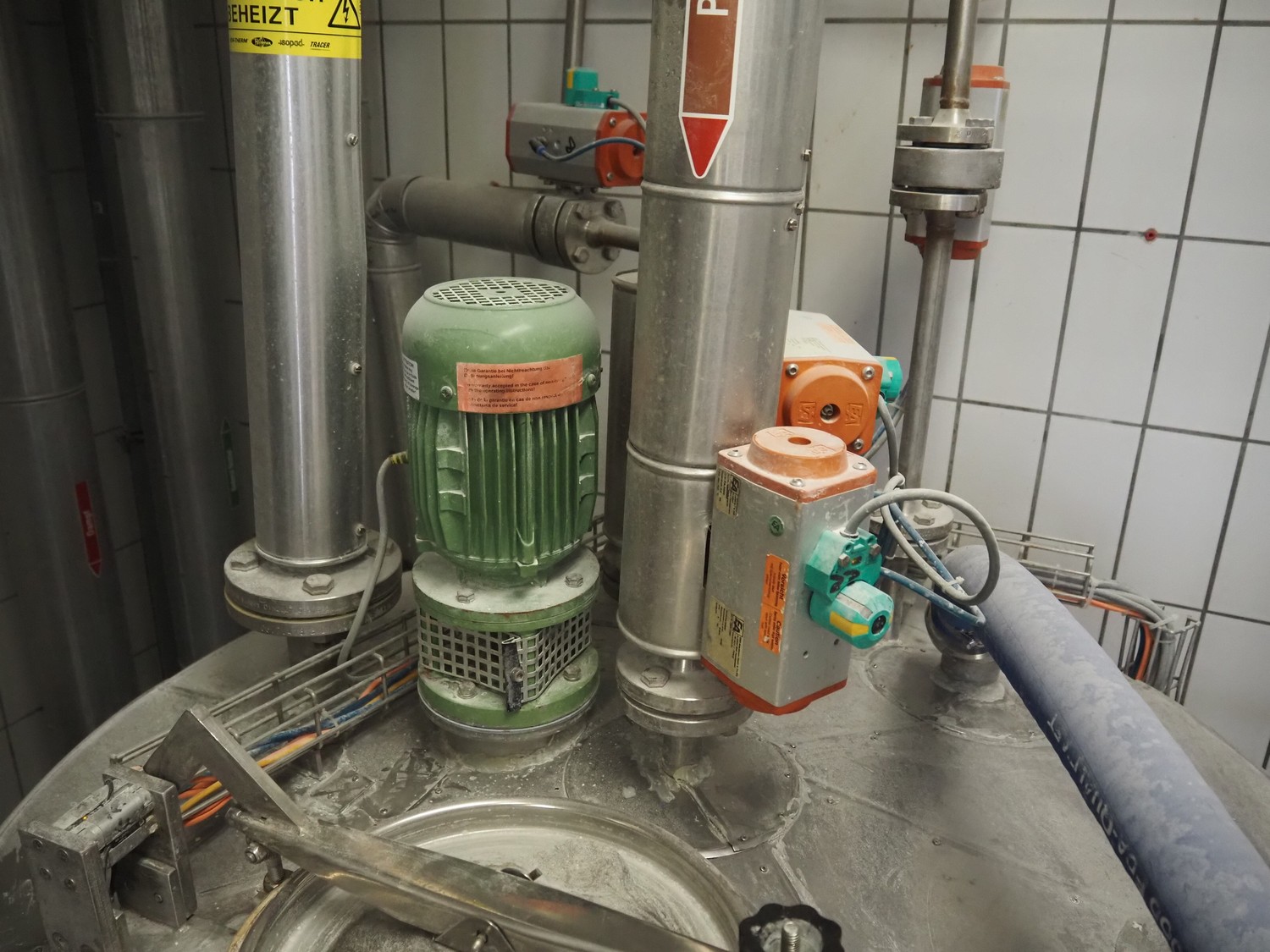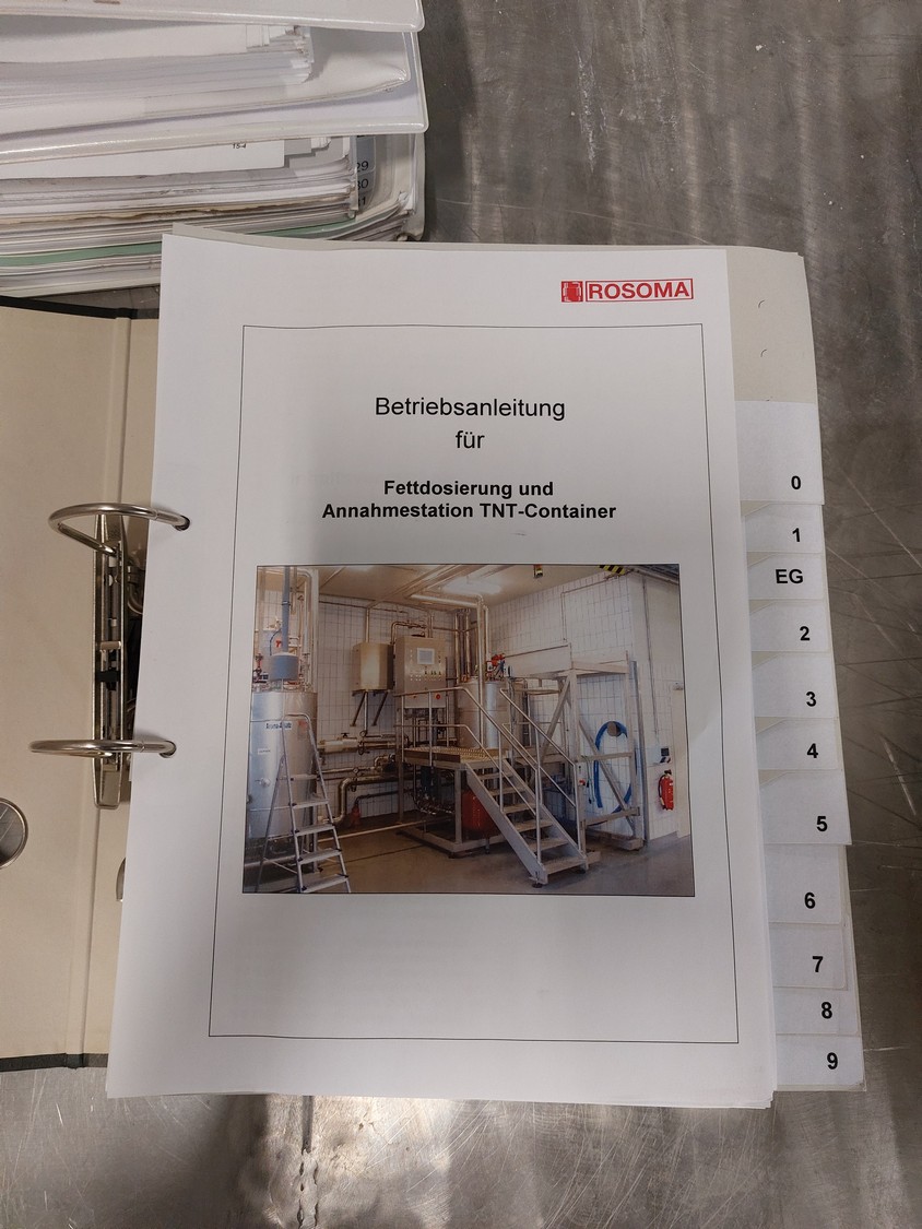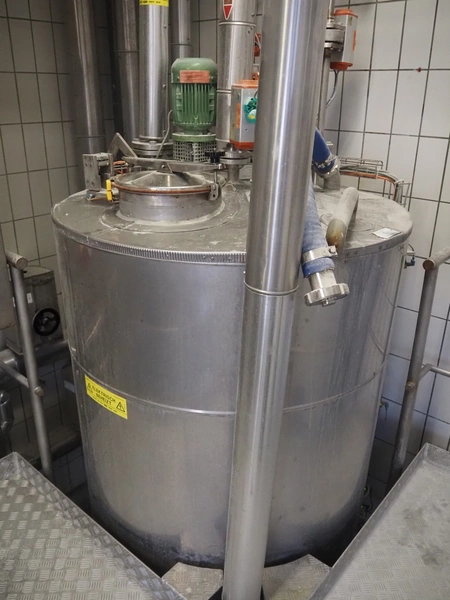 Rosoma GmbH liquid grease dosing installation consisting of: s/s mixing tank, dimensions: Ø 1200 mm x 2700 mm, s/s switch cabinet, dimensions: 800 mm x 350 mm x 1200 mm, s/s frame, dimensions: 3200 mm x 2100 mm x 3100 mm.