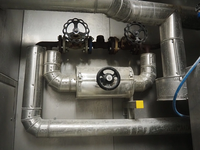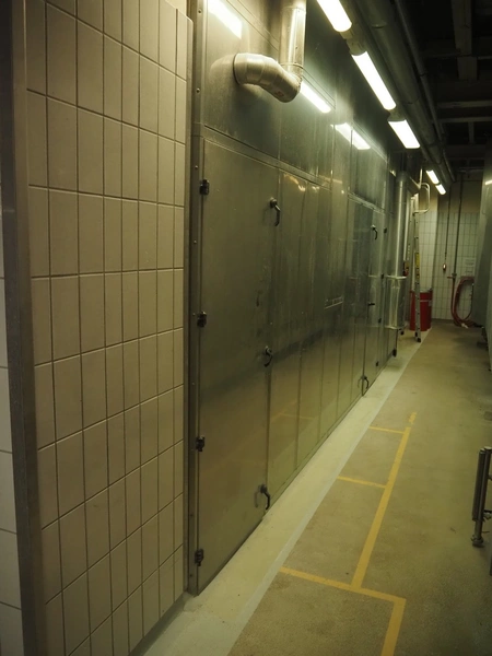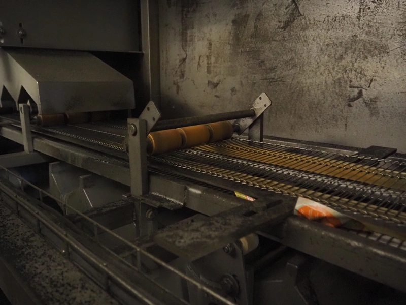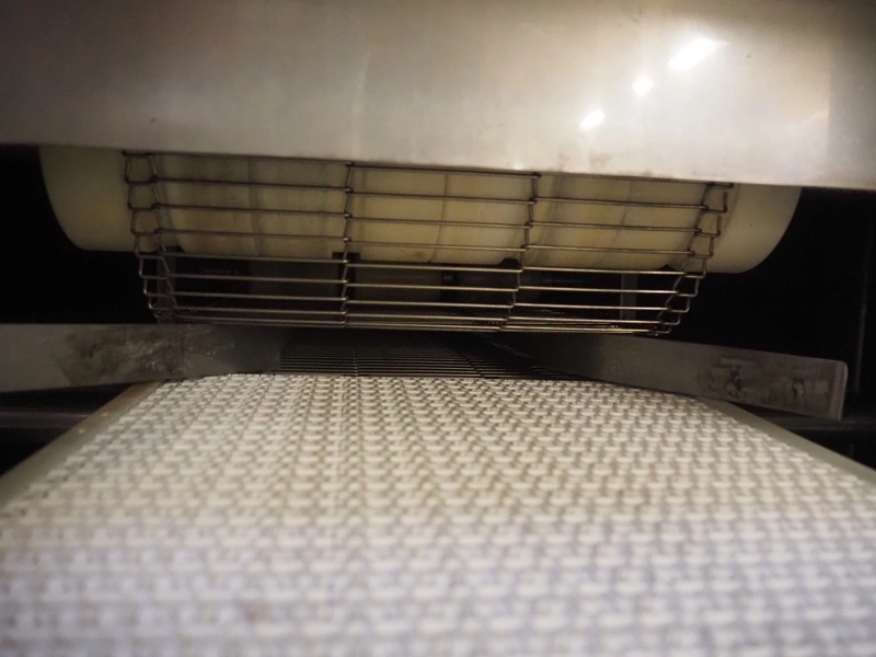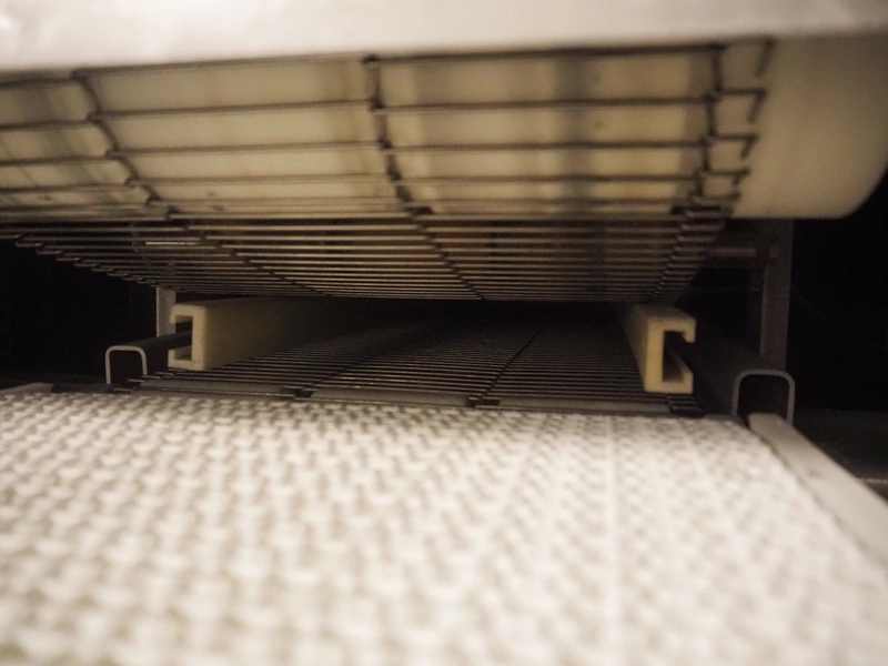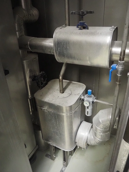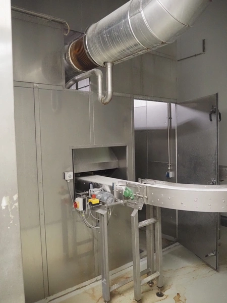Hoegger dryer, s/s mesh belt, belt width: 300 mm, total dimensions: 5900 mm x 1600 mm x 3000 mm.