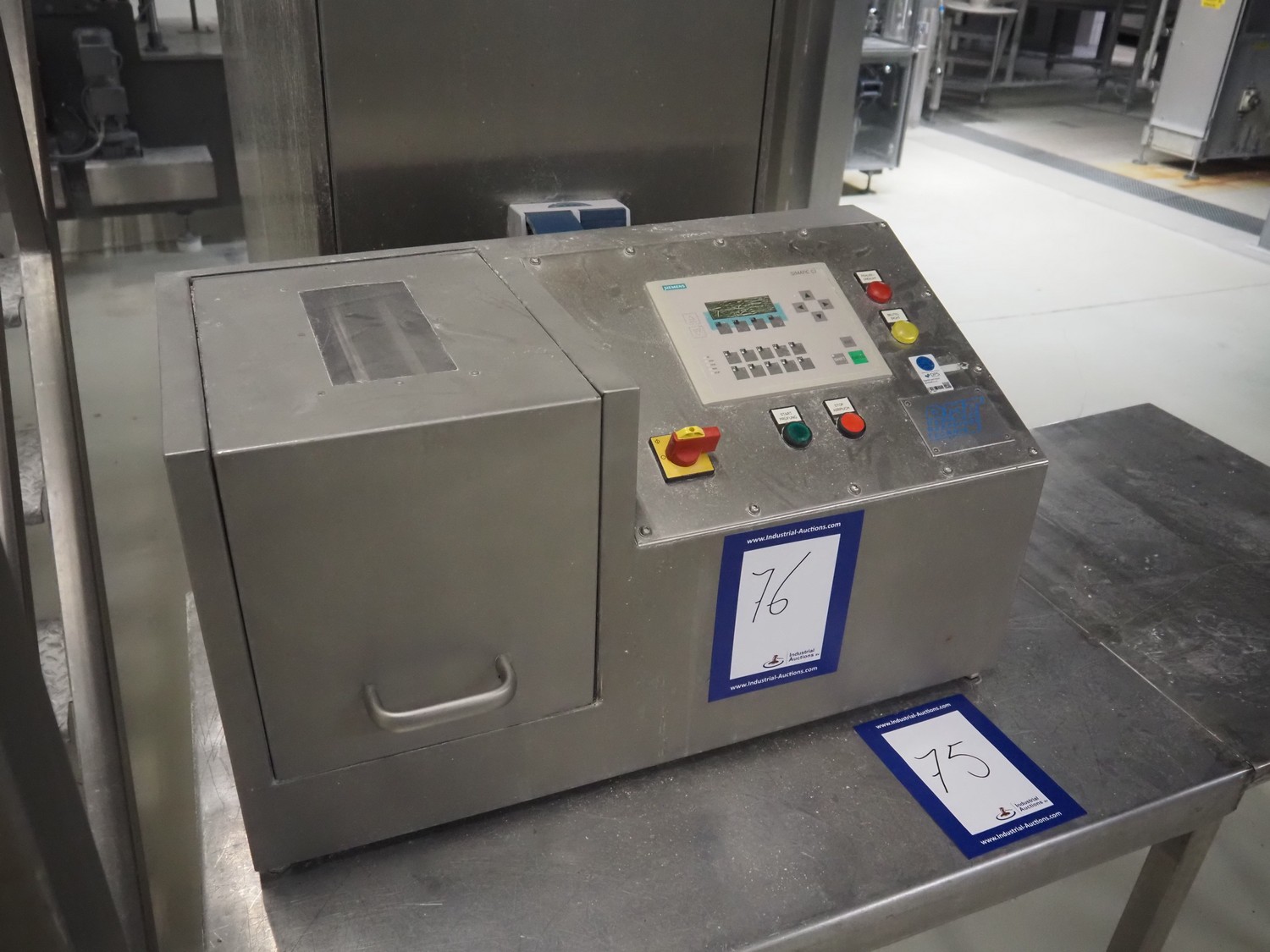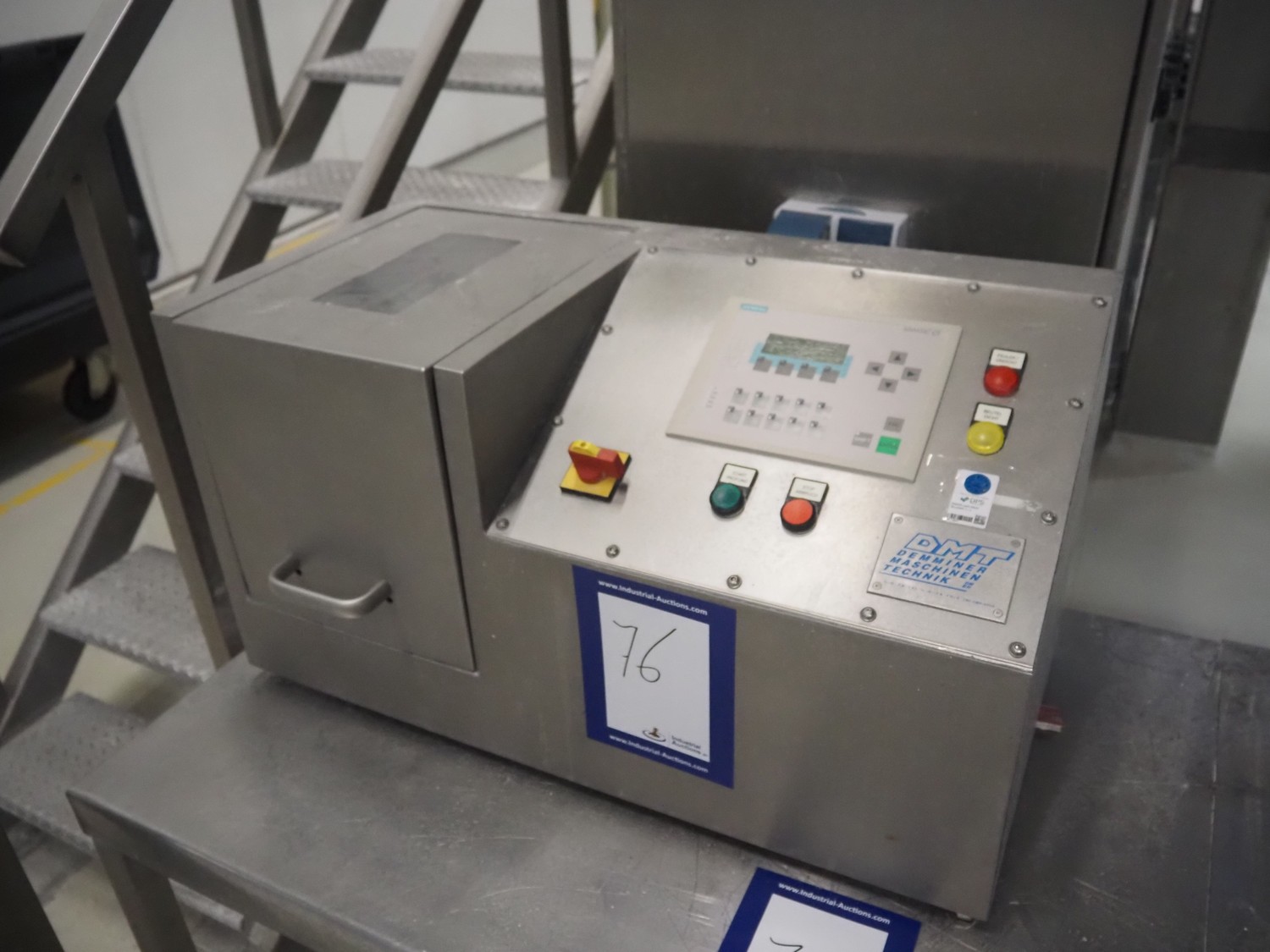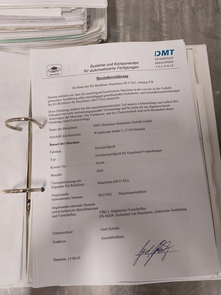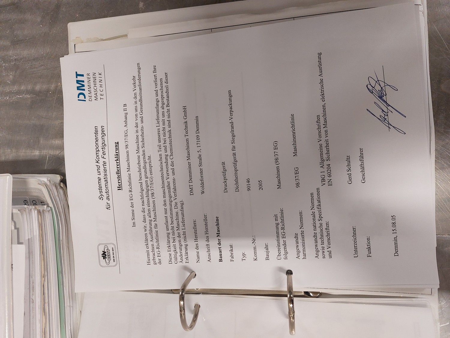 DMT leak testing device for sealed pouches, machine number: 90146, year of construction: 2005, dimensions: 800 mm x 400 mm x 450 mm.