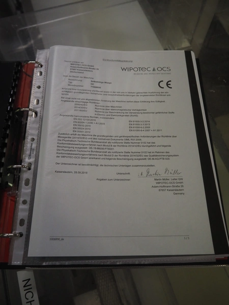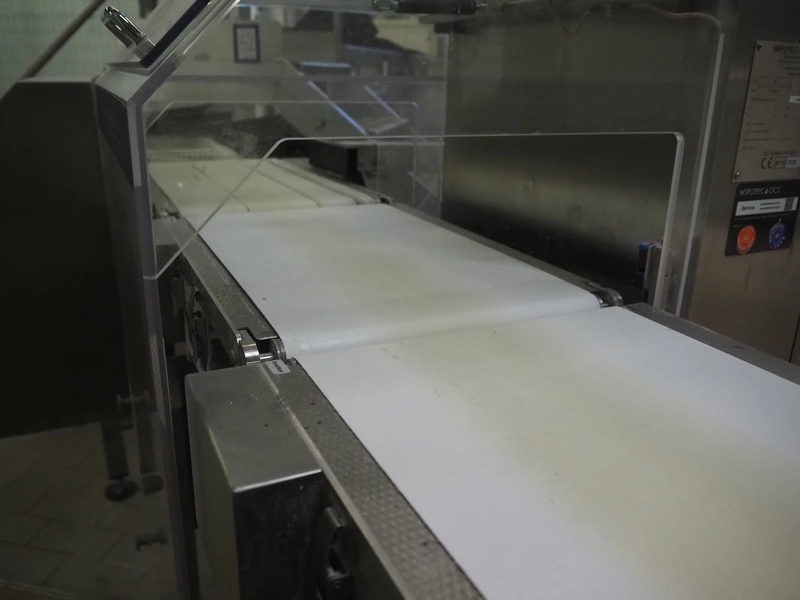 WIPOTEC-OCS GmbH checkweigher with rejector, type: HC, model: 71008890, year of construction: 2018, plastic belt, belt width: 300 mm, total dimensions: 1600 mm x 900 mm x 1600 mm.