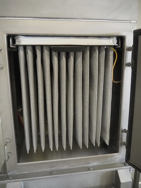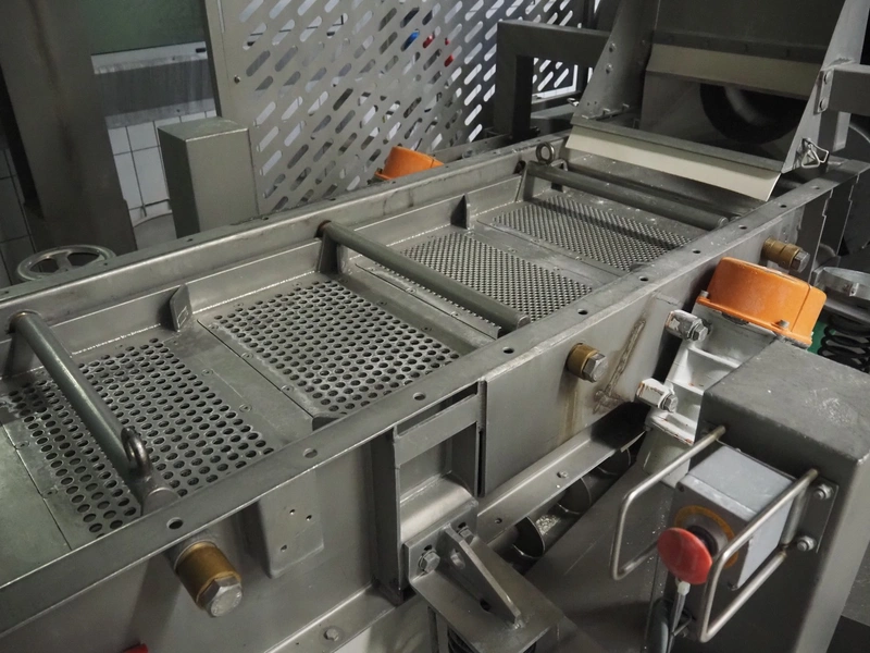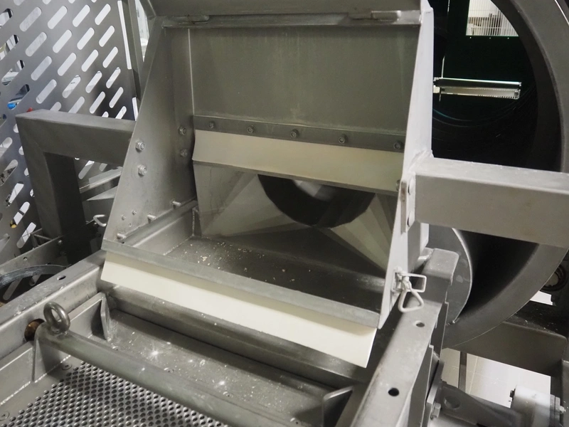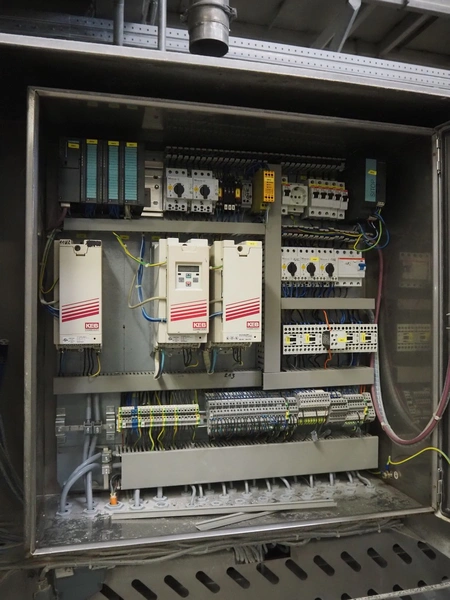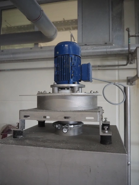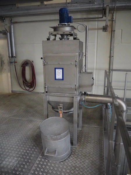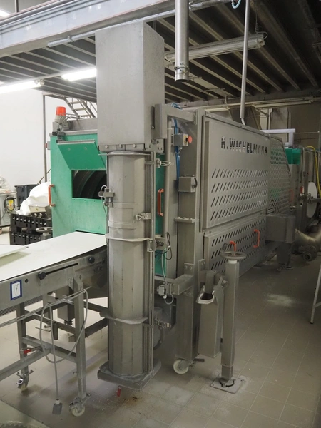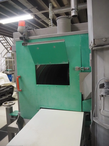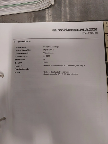 H. Wichelmann mobile coating machine with outfeed vibrating gutter, type: BMA, machine number: 06/838, year of construction: 2006, 10 kW, drum dimensions: Ø 950 mm x 2300 mm, gutter width: 500 mm, s/s screw, diameter: 350 mm, tier: 240 mm, total dimensions: 4500 mm x 2000 mm x 2550 mm, H. Wichelmann filter unit, dimensions: 600 mm x 600 mm x 2000 mm.