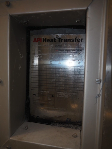 API Schmidt-Bretten GmbH & Co.KG heat exchanger, type: SiGMA 76 SAL, fabrication number: PA-90519, year of construction: 2006, minimum temperature: -5°C, maximum temperature: 60°C, dimensions: 750 mm x 400 mm x 2050 mm.