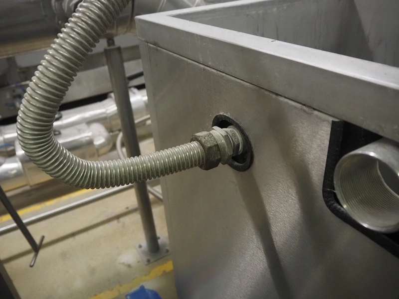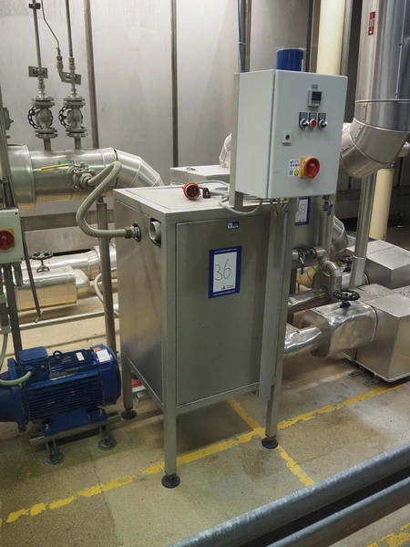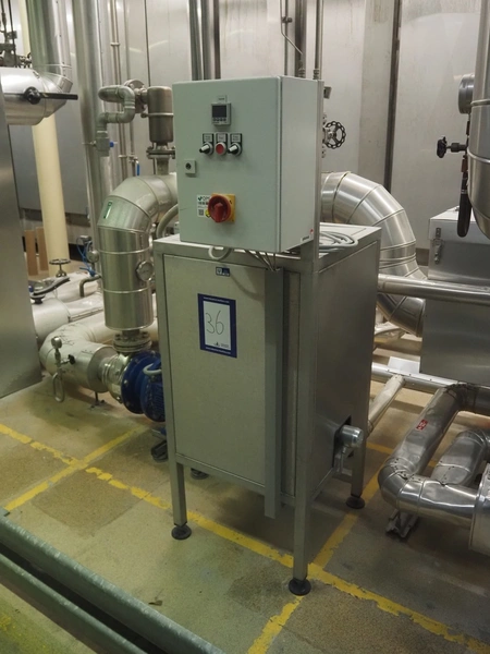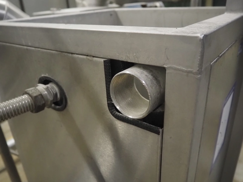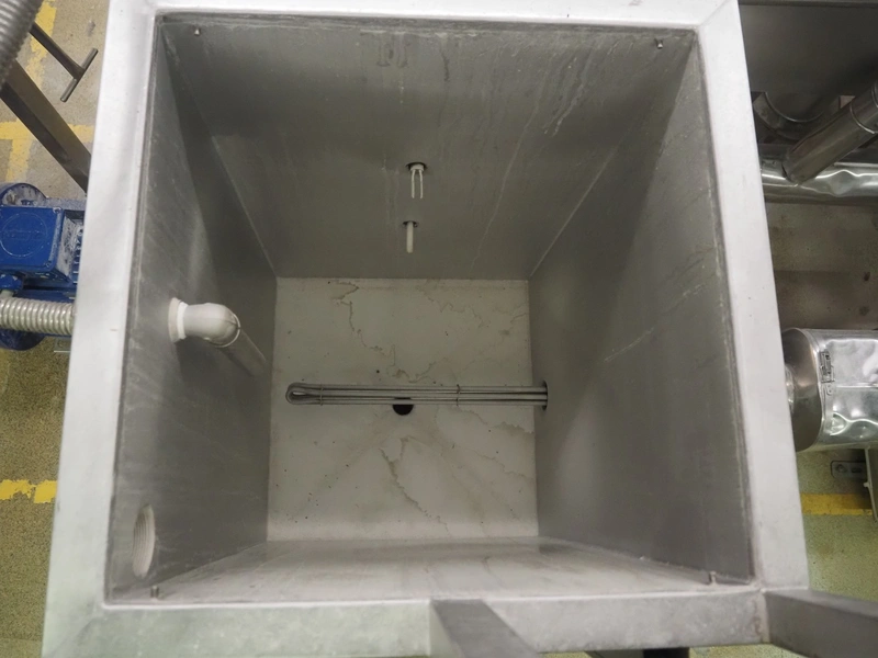 S/s balance tank with heating element, dimensions: 600 mm x 600 mm x 1650 mm.