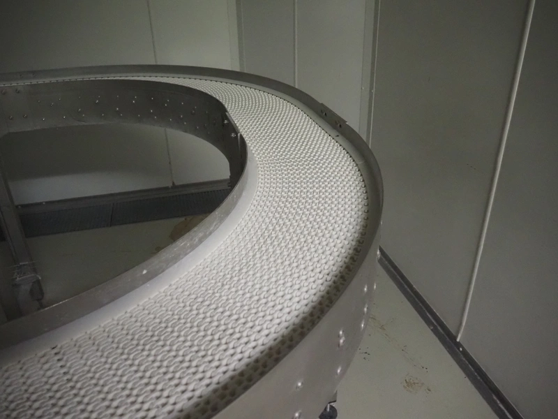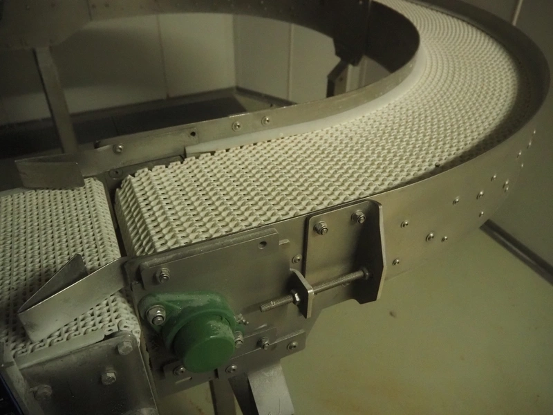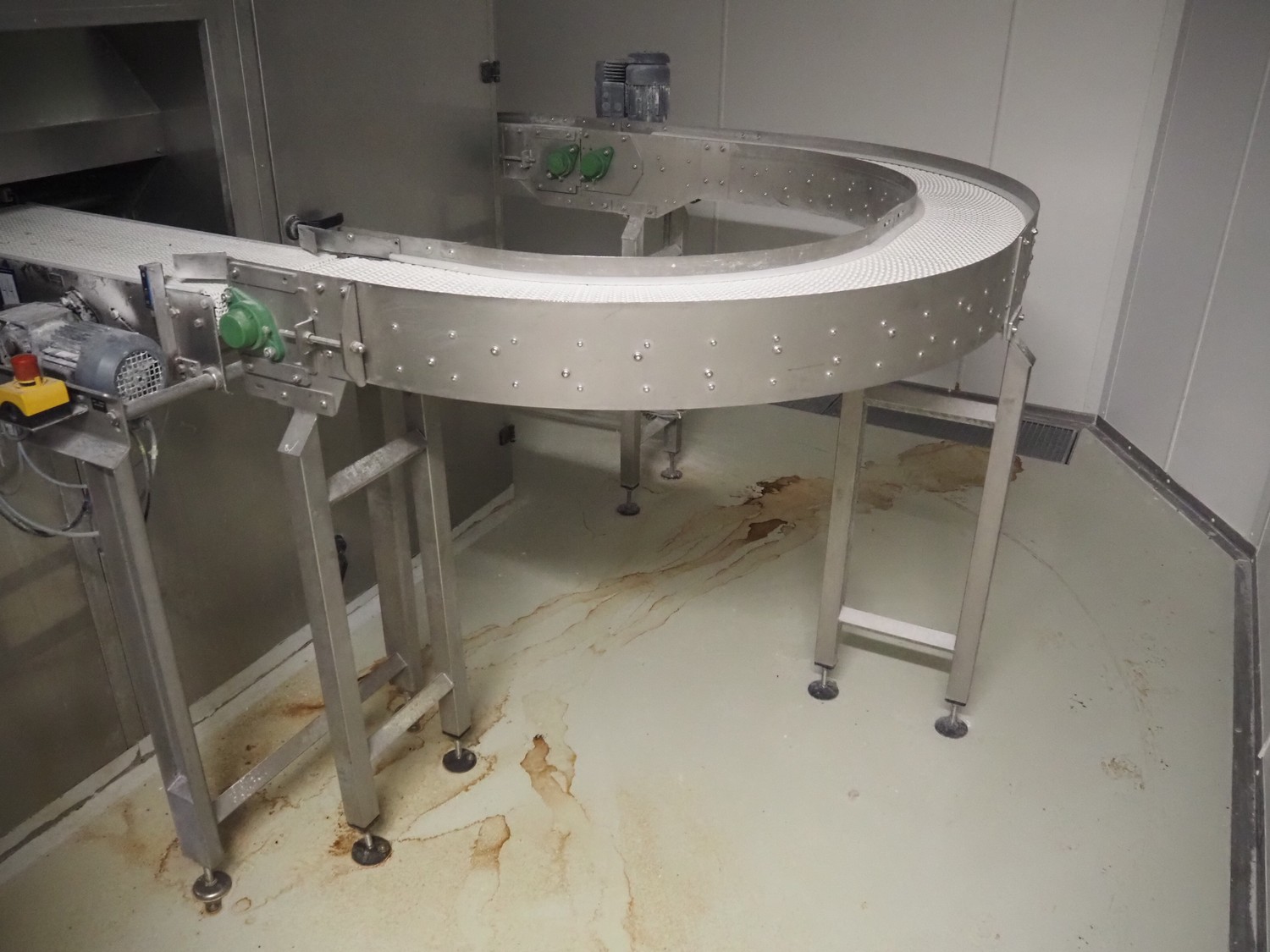 180° curve conveyor, plastic mesh belt, belt width: 240 mm, total dimensions: 2000 mm x 1150 mm x 1300 mm.