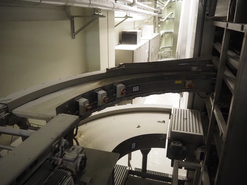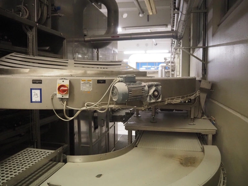 Max Dörr 90° curve conveyor, type: ST22 ES90°/400/1350R, machine number: 05-7103, year of construction: 2005, plastic belt, belt width: 400 mm, total dimensions: 1800 mm x 1600 mm x 650 mm.