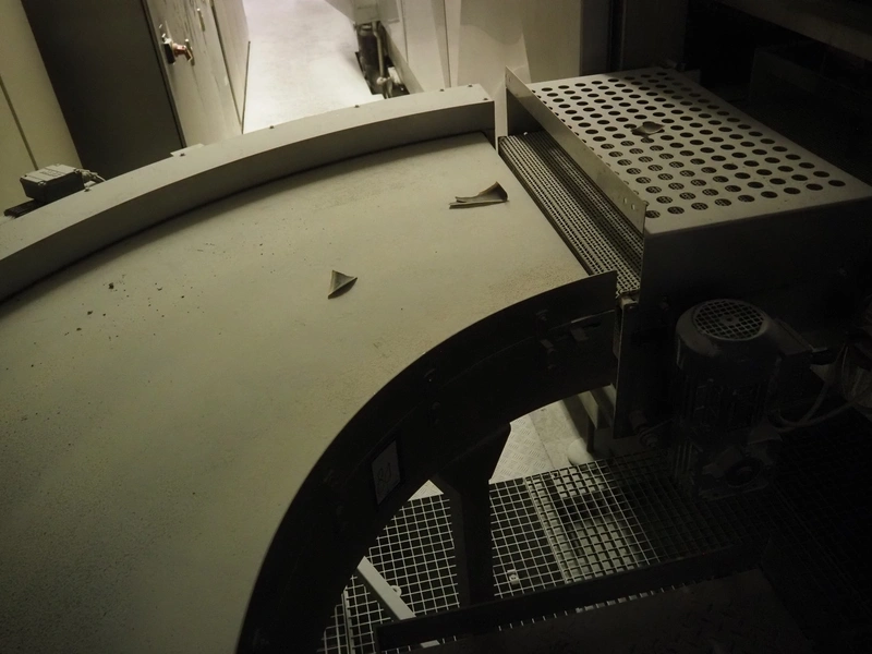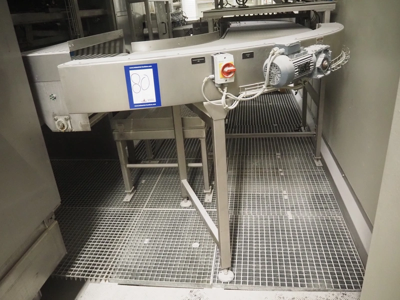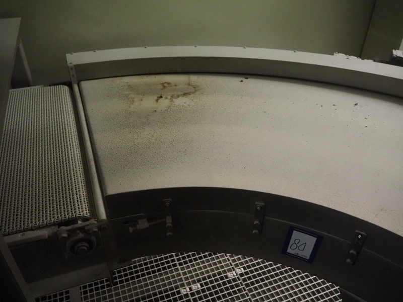 Max Dörr 90° curve conveyor, type: ST22 ES90°/790/600R, machine number: 05-7102, year of construction: 2005, plastic belt, belt width: 800 mm, total dimensions: 1600 mm x 1500 mm x 1400 mm.